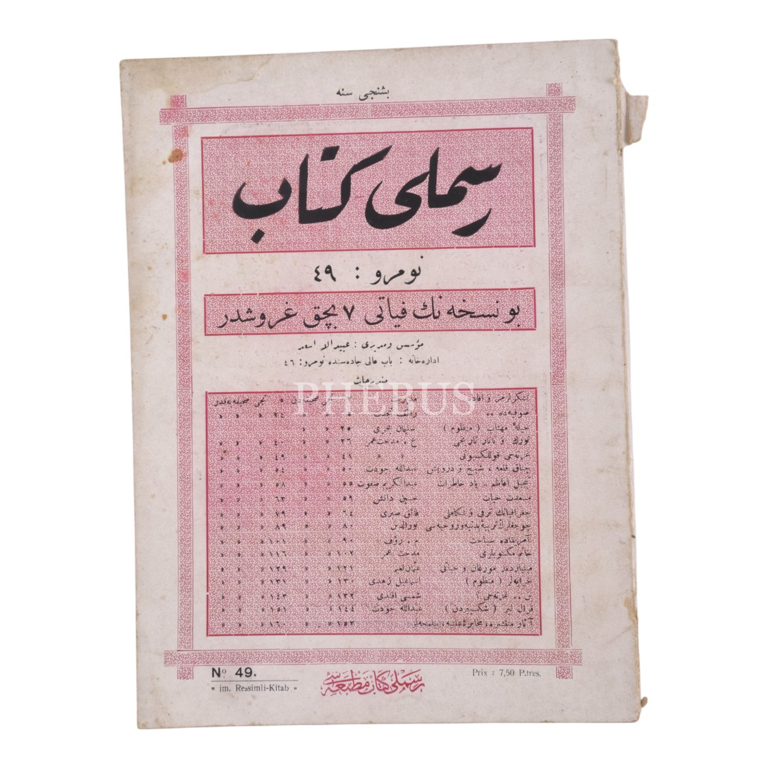 Osmanlı yayın hayatında önemli bir yeri olan, uzun soluklu yayınlardan Resimli Kitab´ın 49. sayısı.