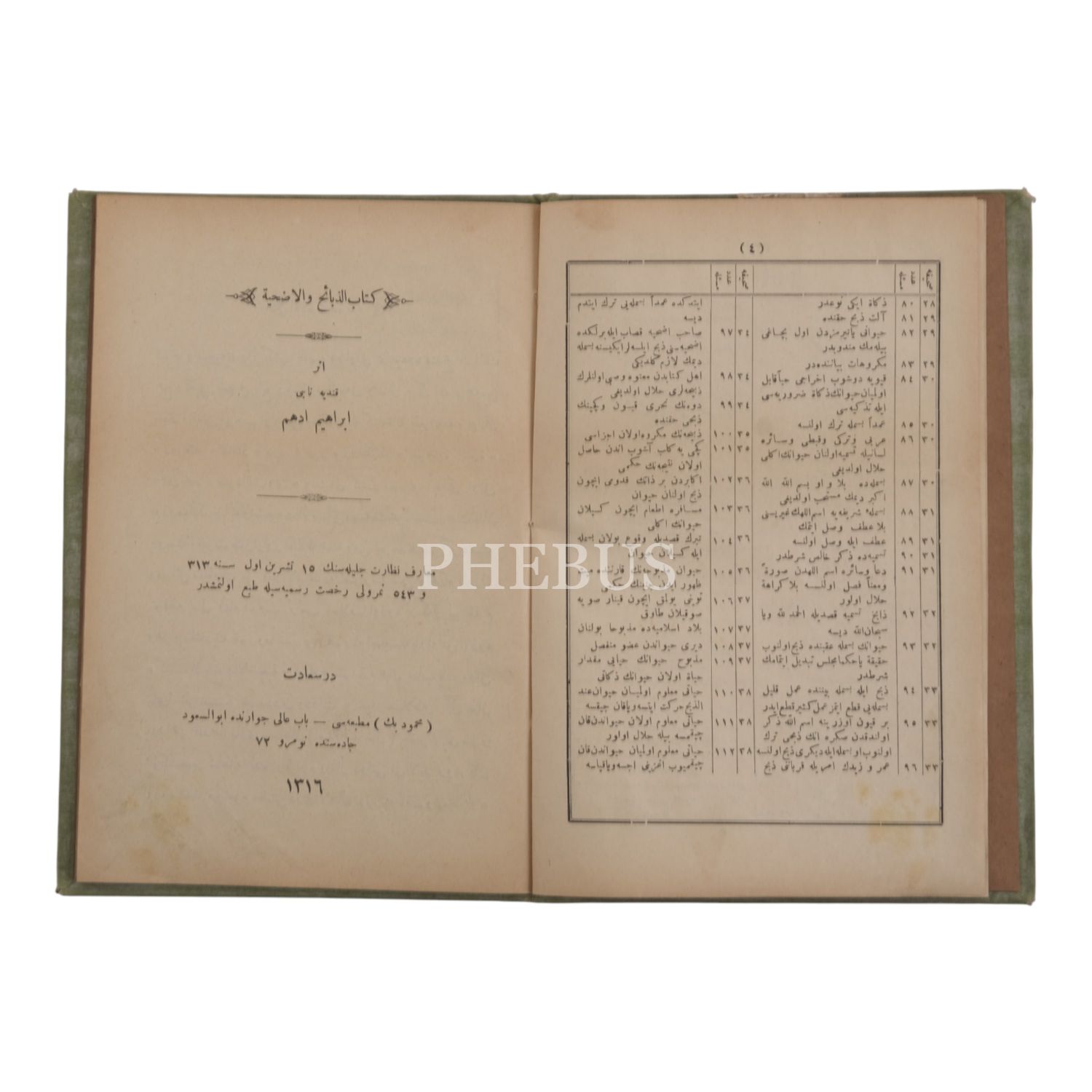 KİTÂBÜ´Z-ZEBÂİH ve´l-EDHİYE, İbrahim Edhem Bey, 1316, Mahmud Bey Matbaası, 39 sayfa, 15x22 cm...