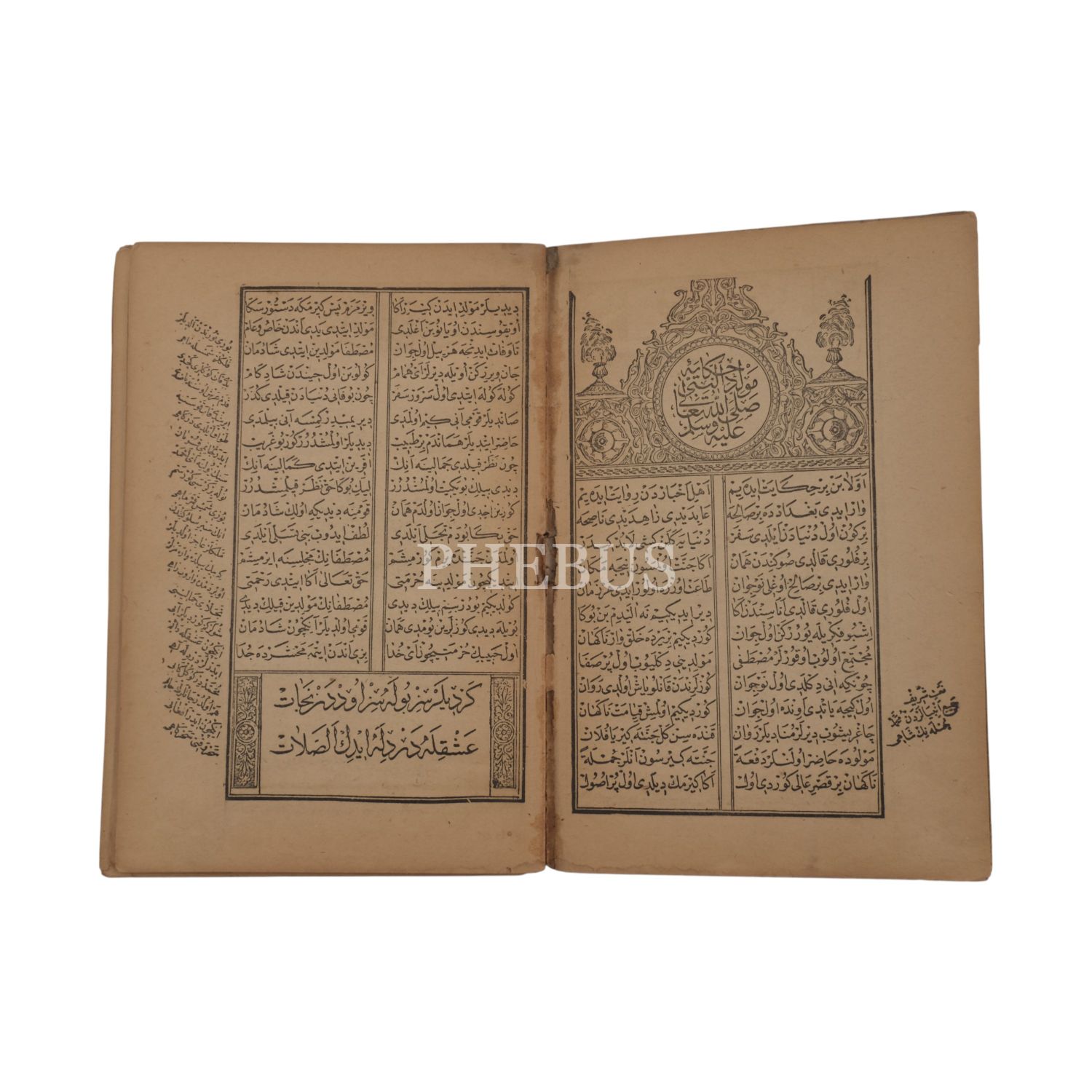 Hz. Muhammed´in (s.a.v) diğer peygamberlere üstünlüğünü tartışmaya açan bir şahsı dinleyerek onu öven bir şiir yazmaya karar veren Süleyman Çelebi, Türk edebiyatının en çok okunan manzum eserlerinden birine imza atmıştır. Anadolu ve Rumeli´de en ücra köşelere bile ulaşan mevlit, tüm İslam dünyasında tercüme ve nazirelerle bu geleneğin yayılmasına öncülük etmiştir. *İç sayfaların ağız tarafında yer yer küçük yırtıklar vardır. Kitabın ikinci yarısı ciltten ve ilk yarısından yekpâre şekilde ayrıktır.