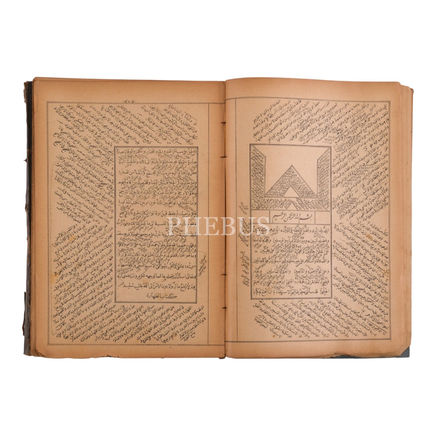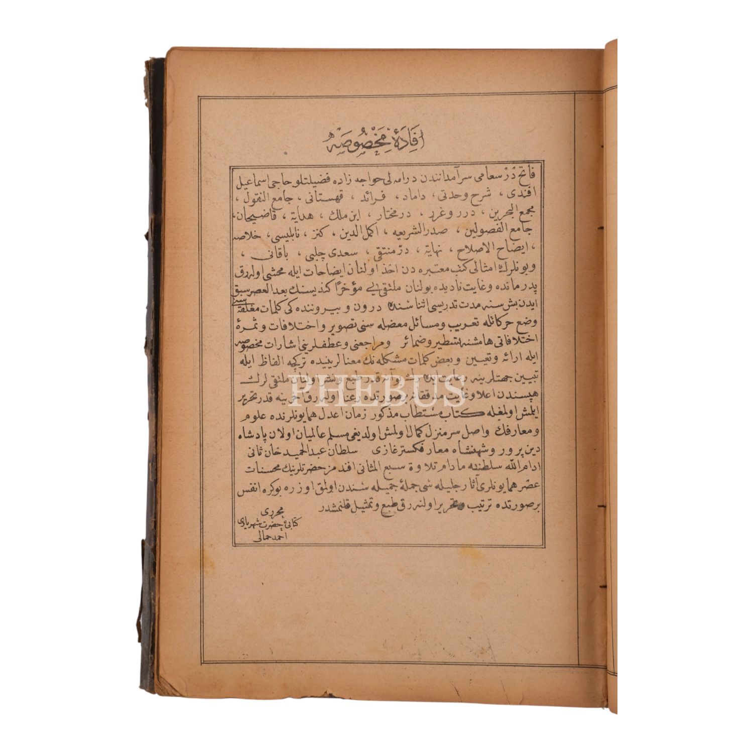 Hanefî fıkhının en bilinen temel eserlerinden Mülteka´l-Ebhur´un haşiyeli baskısı. *Cildi yorgundur ve sırtı ile kapakları arasında ayrılma vardır. Baştaki fihrist bölümü kopuk haldedir.