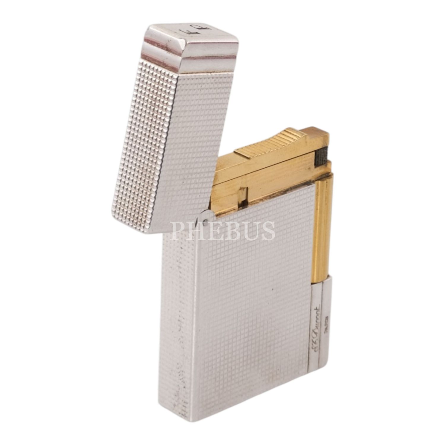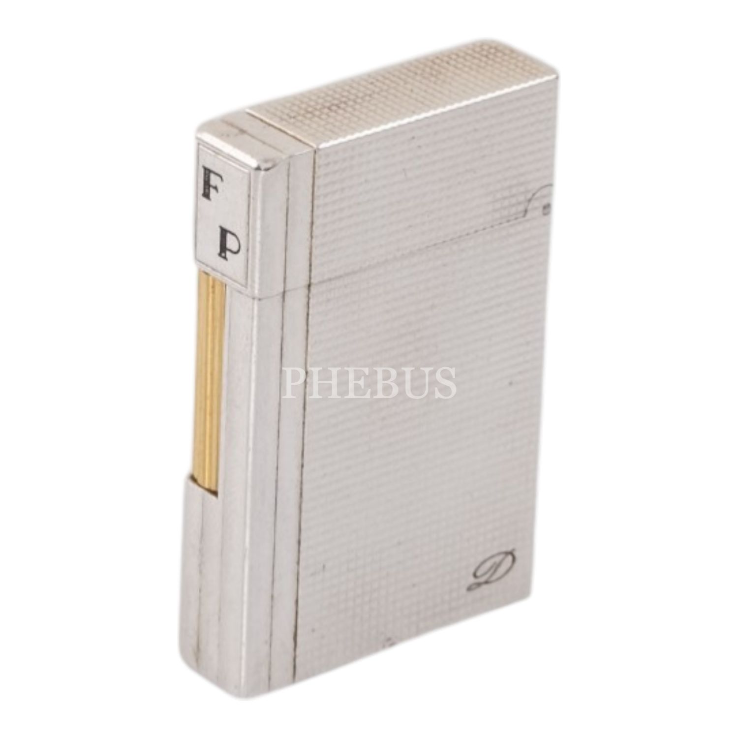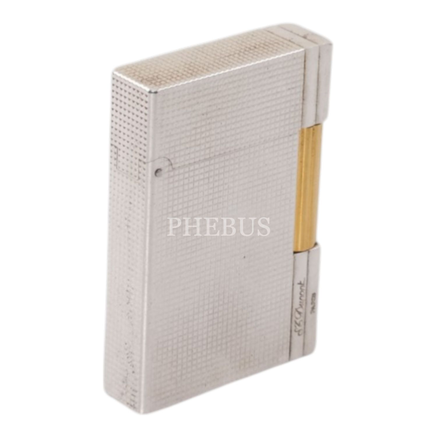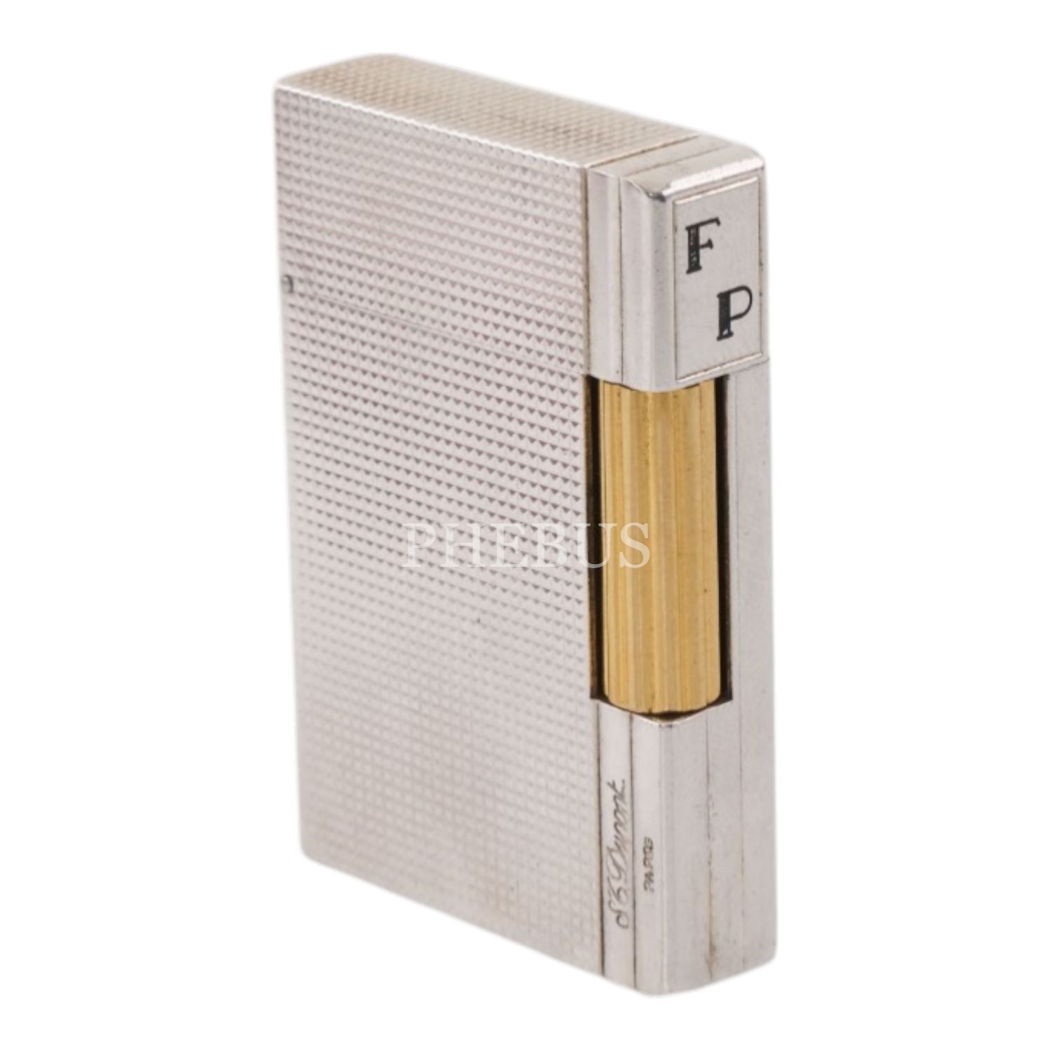 S.T. Dupont Gümüş ve Altın Kaplama Ligne 2 çakmak, 3.7 x 5.5 x 1.1 cm...