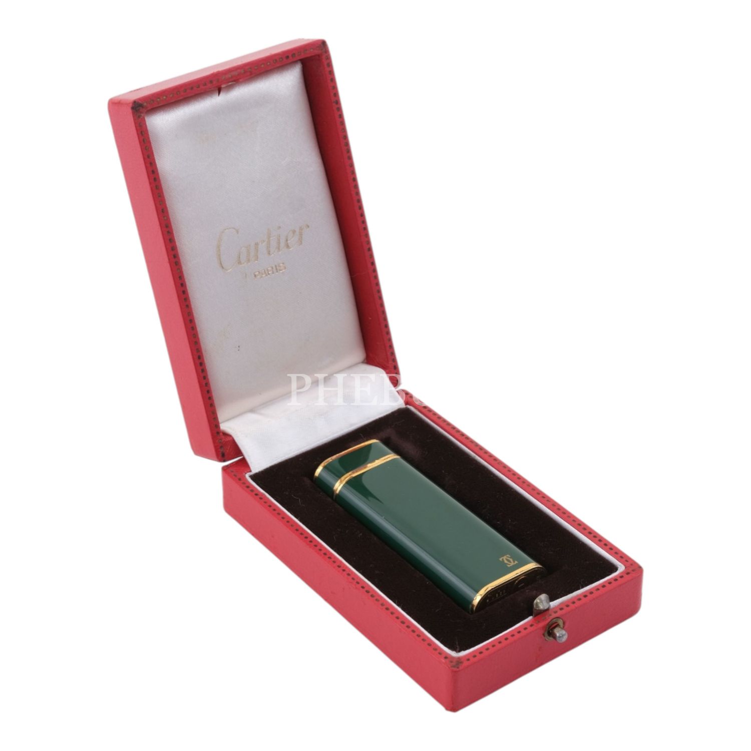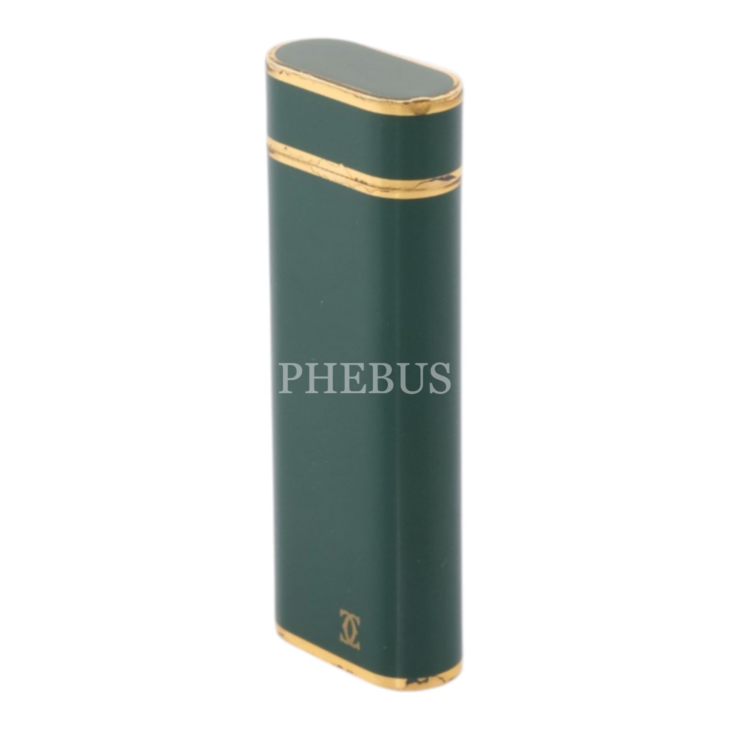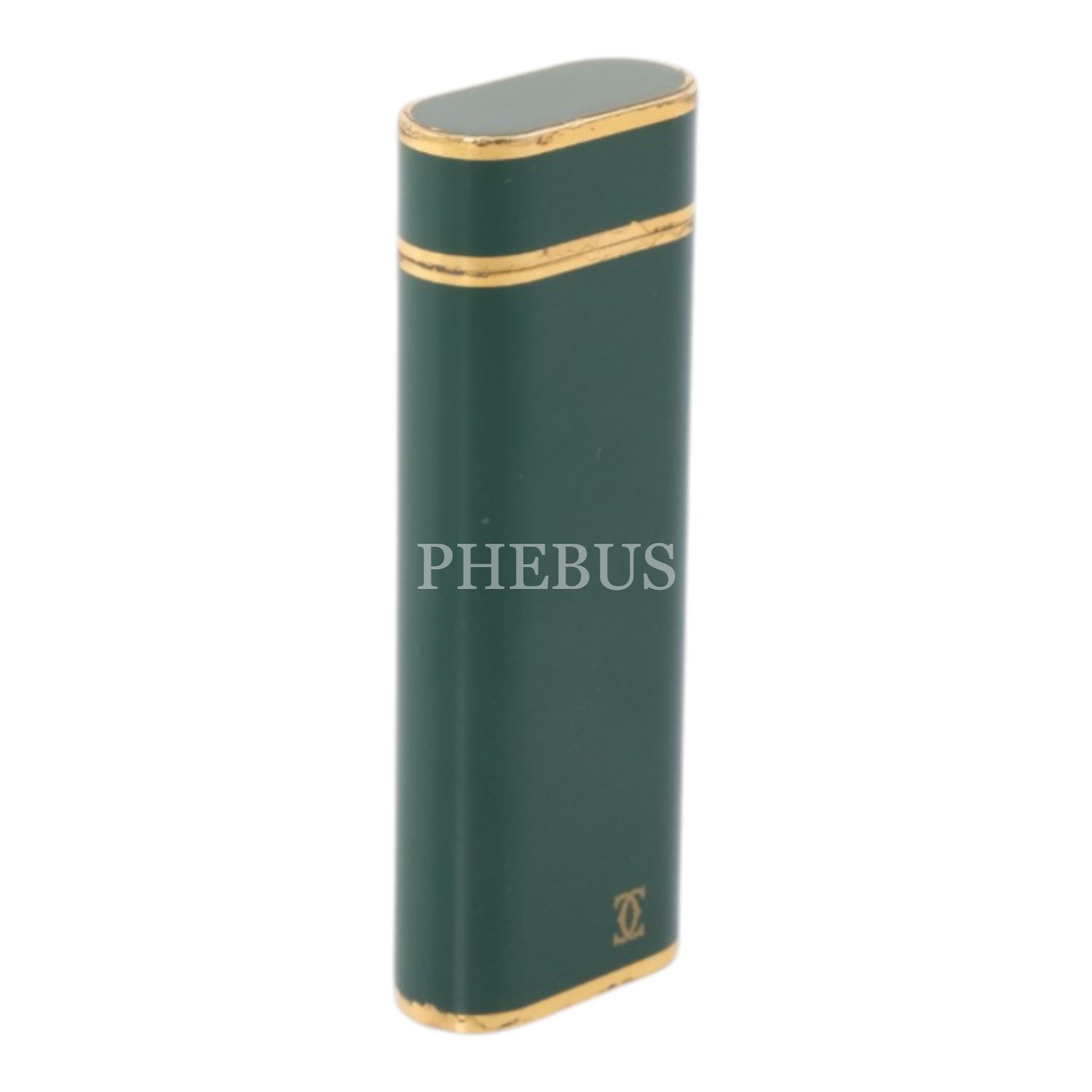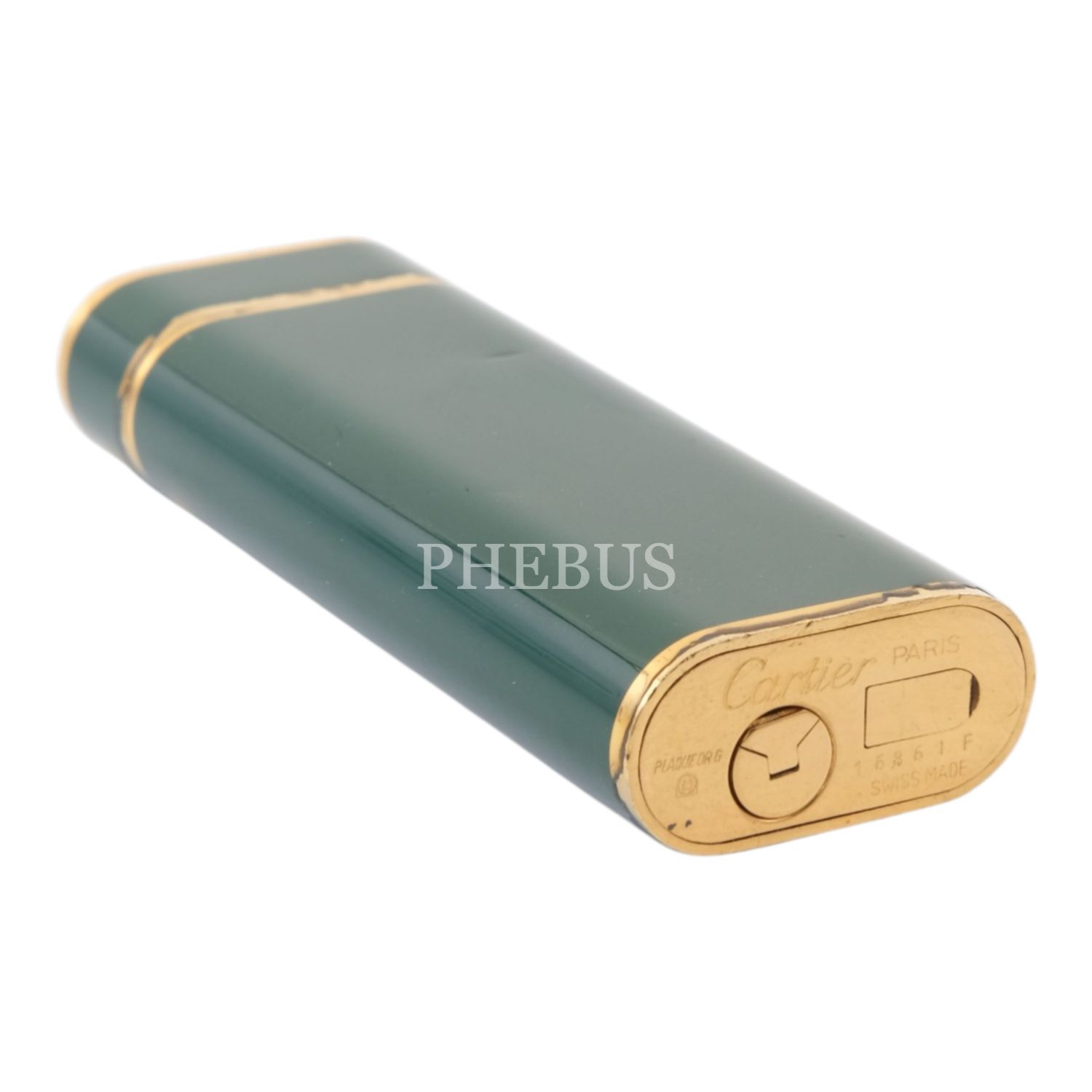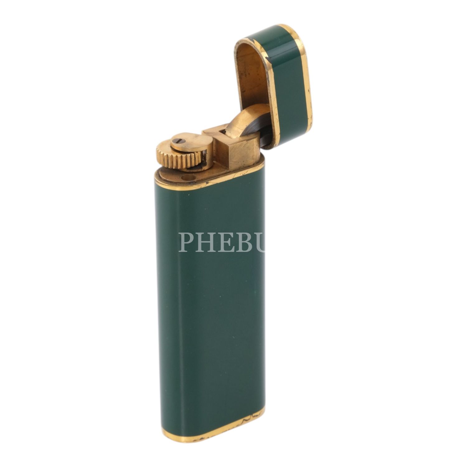 Cartier yeşil mineli, altın kaplama çakmak, 2.5 x 6.9 x 1.2 cm...
