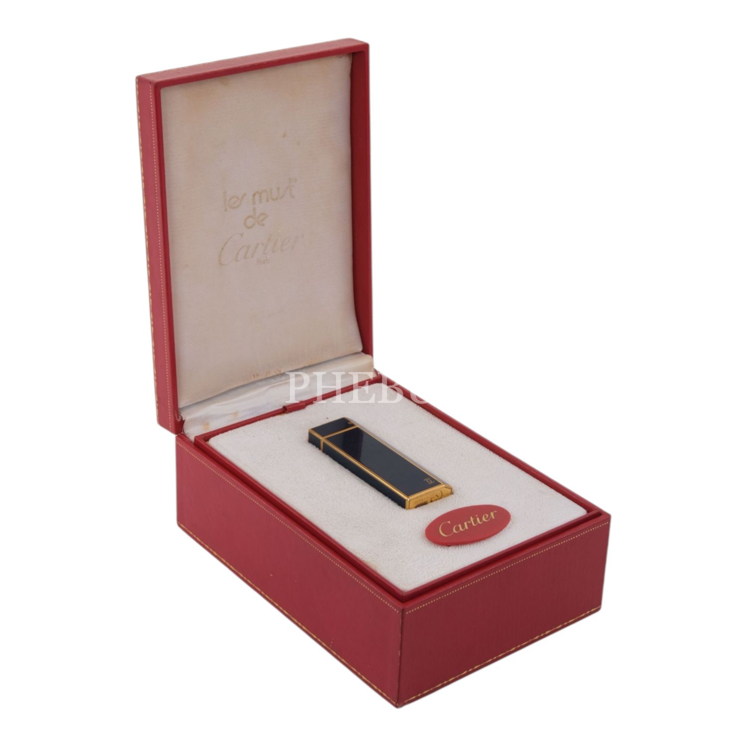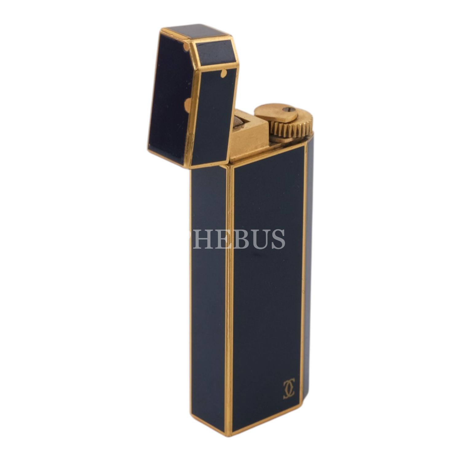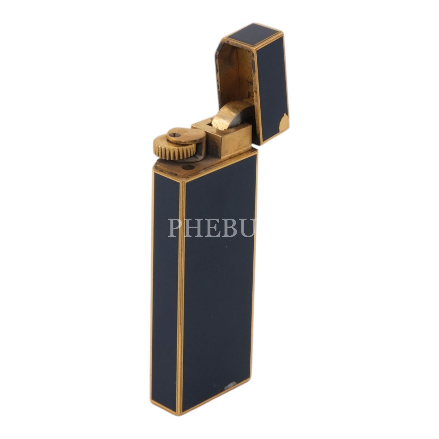 Cartier lacivert mineli, altın kaplama pentagon çakmak, 2.5 x 7.1 x 1.3 cm...