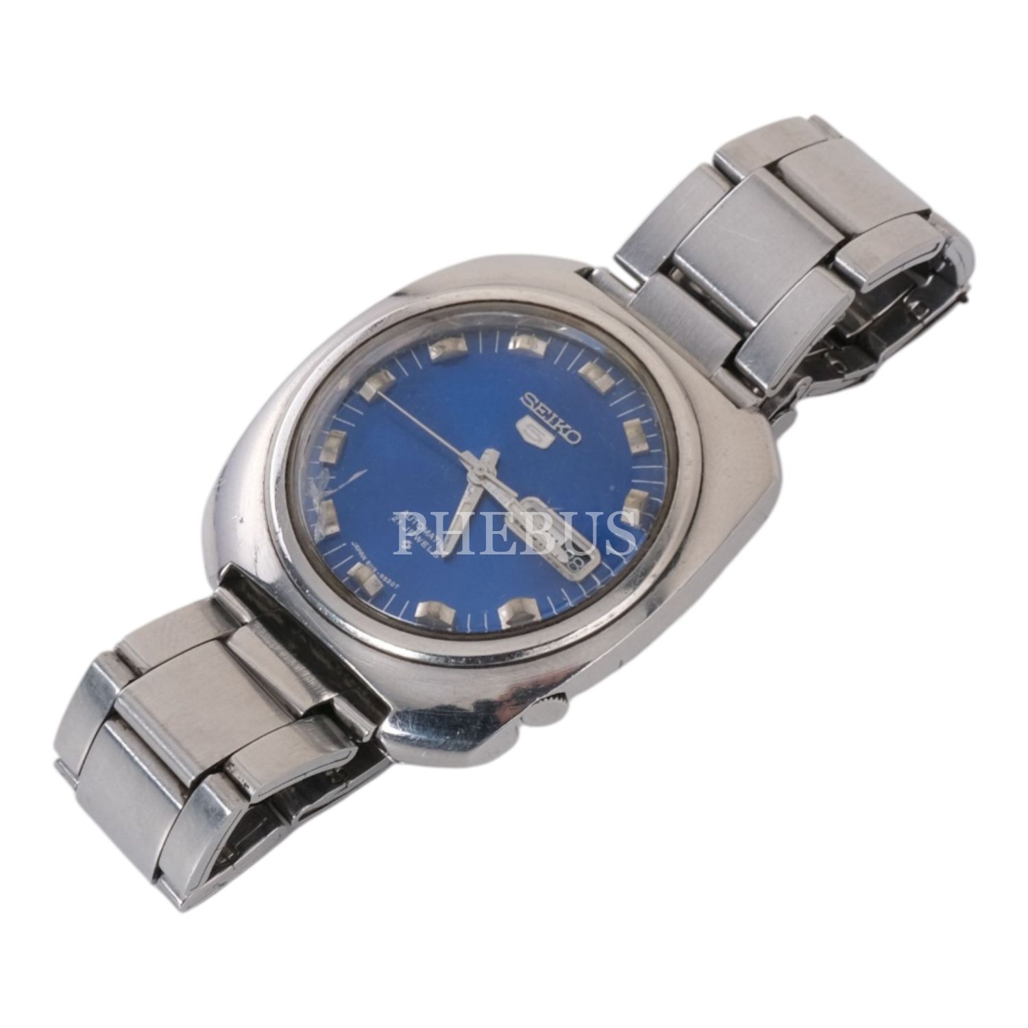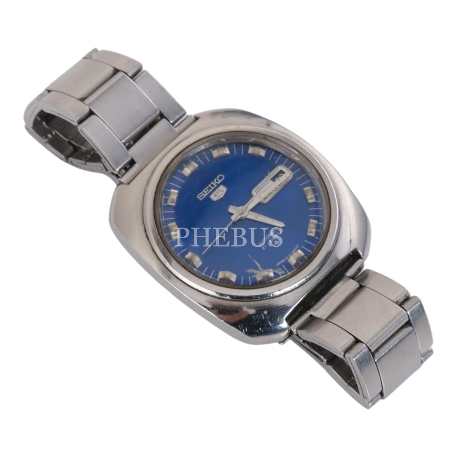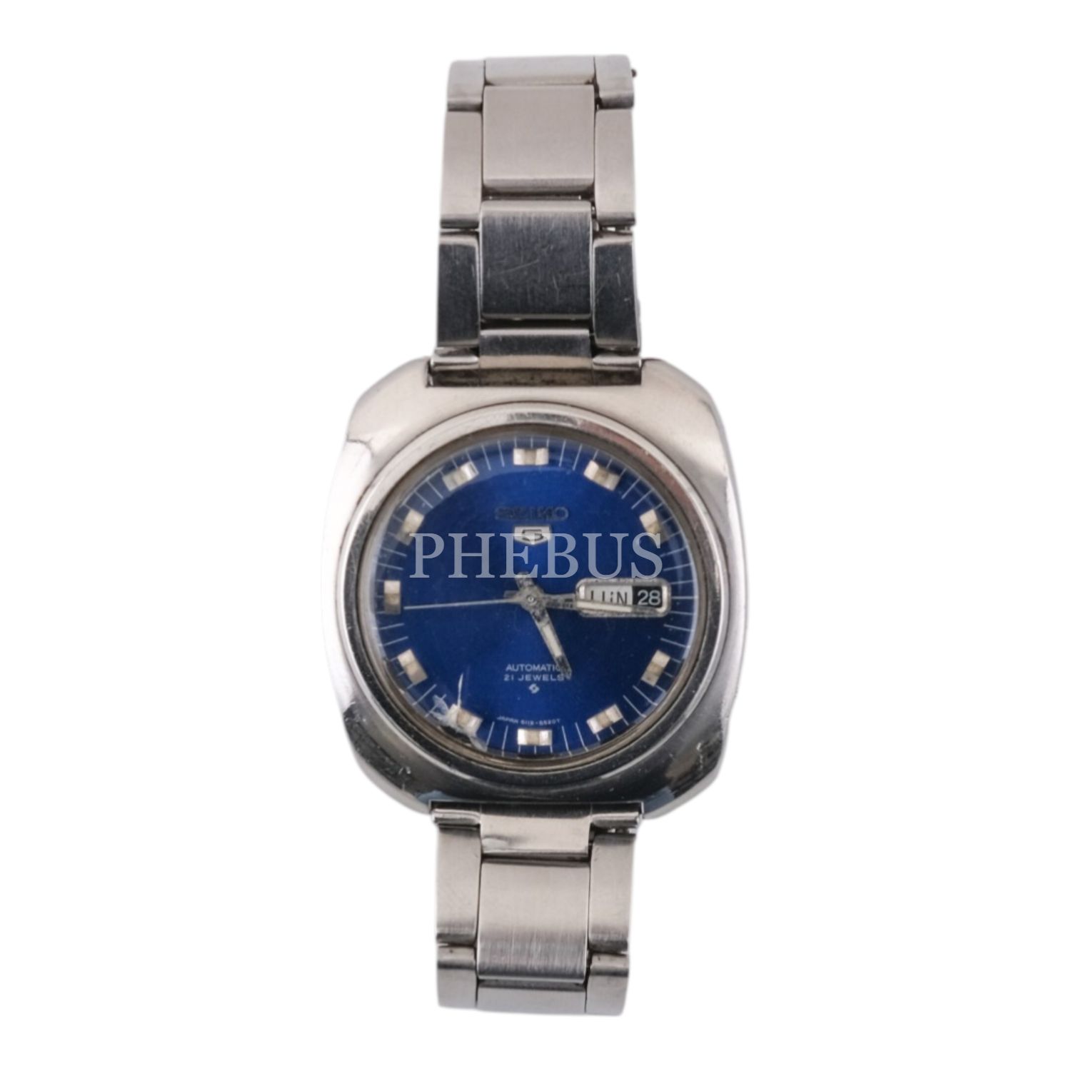 Seiko 5, jumbo kasa, metal kordonlu, çift dil (ispanyolca-ingilizce) takvimli, vintage kol saati...