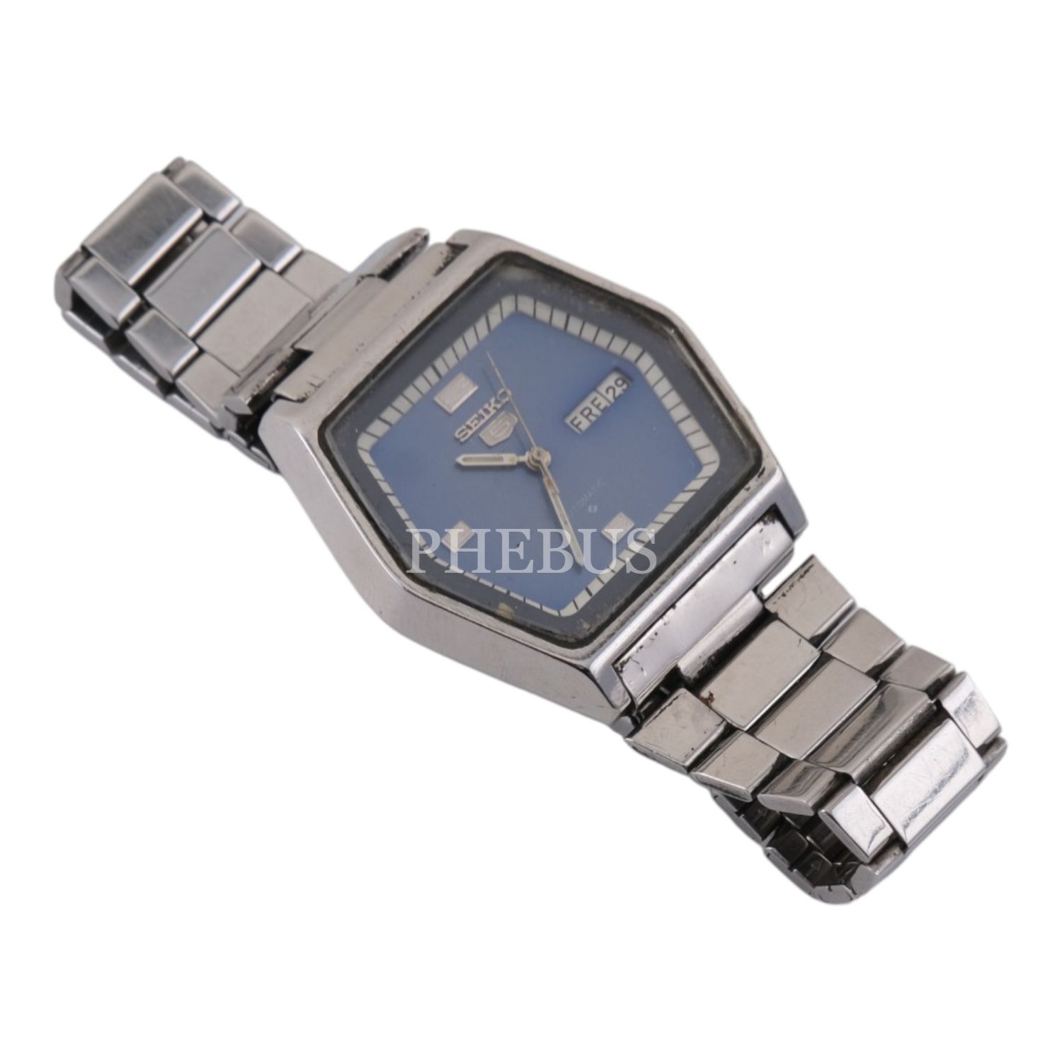 Seiko 5, nadir TV kasa, metal kordonlu, çift dil (almanca-ingilizce) takvimli vintage kol saati...