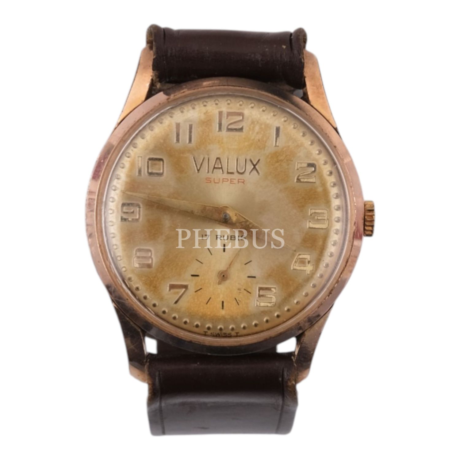 Vialux, Swiss Made, small second, deri kordonlu vintage erkek kol saati...
