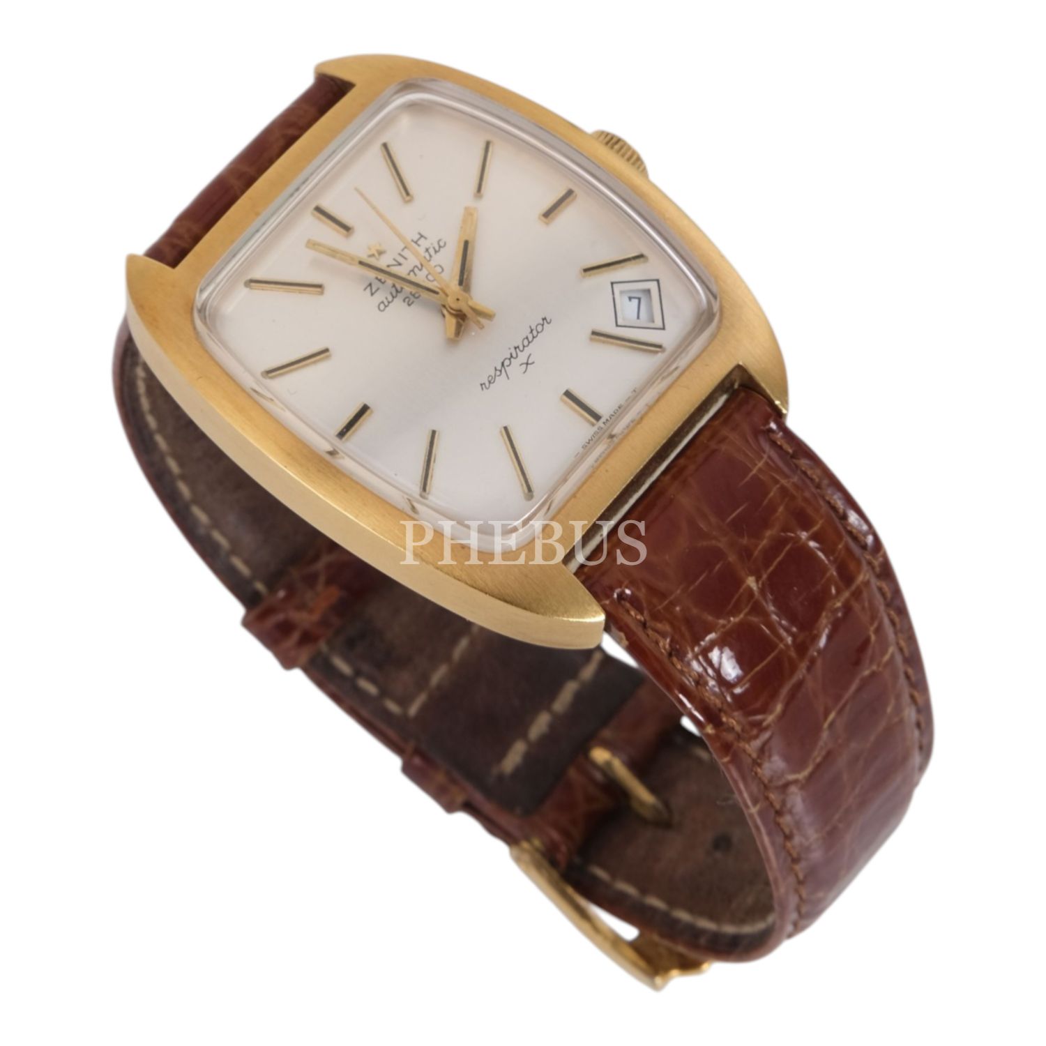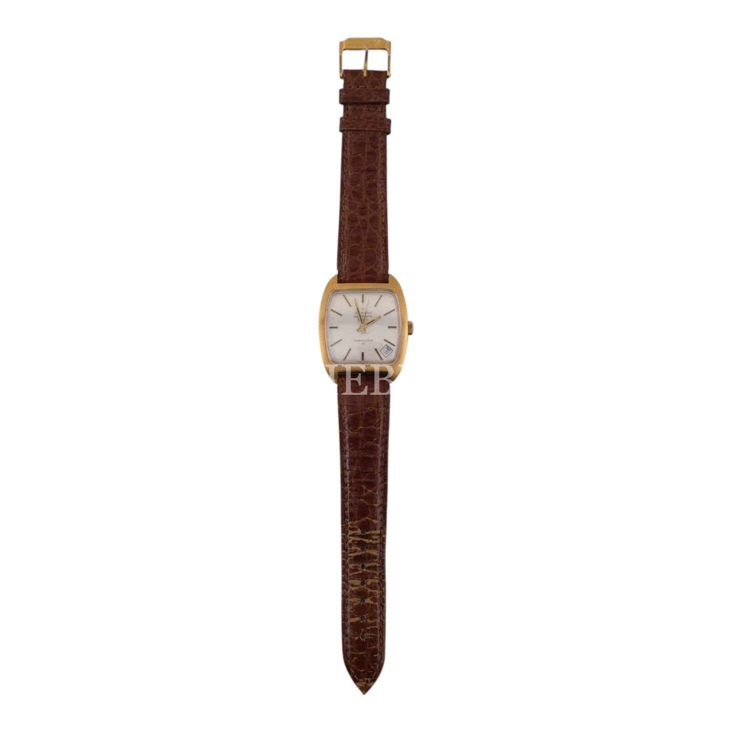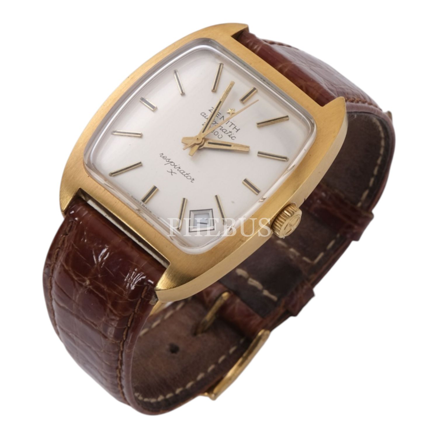 Zenith Respirator, Swiss Made, takvimli, deri kordonlu vintage erkek kol saati...