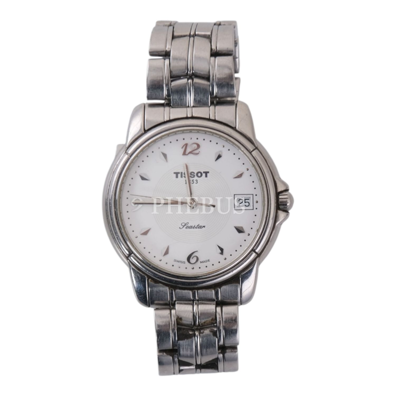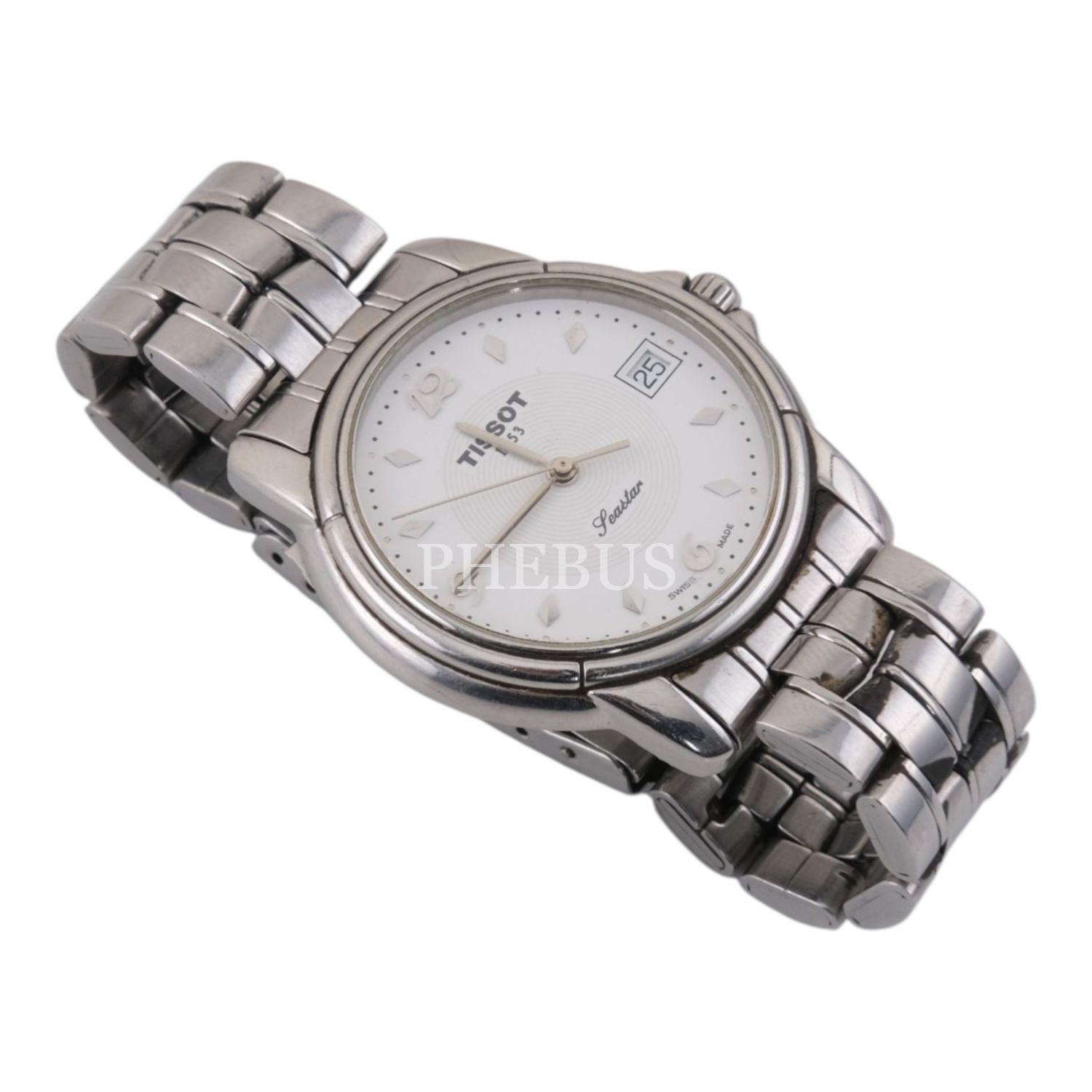 Tissot Seastar, Swiss Made, takvimli, metal kordonlu vintage erkek kol saati...