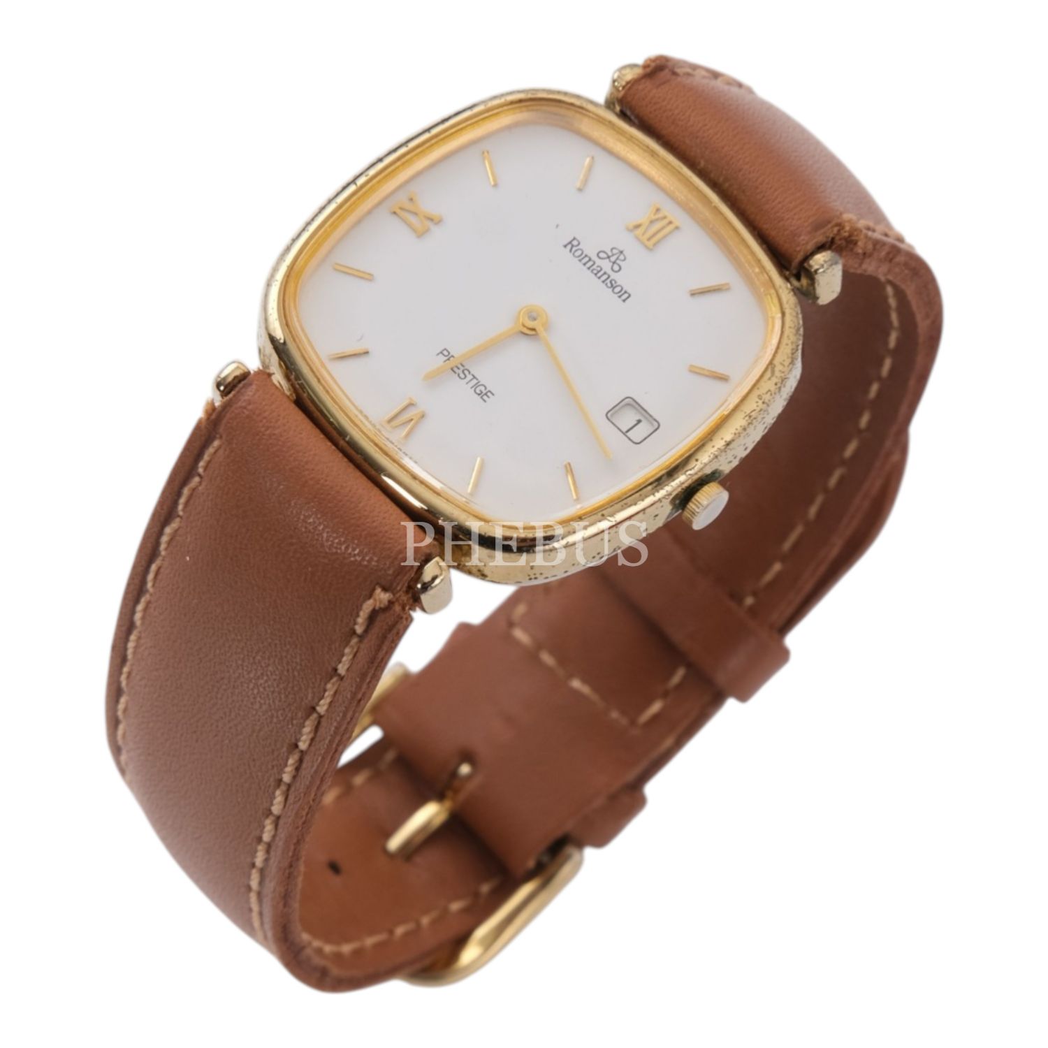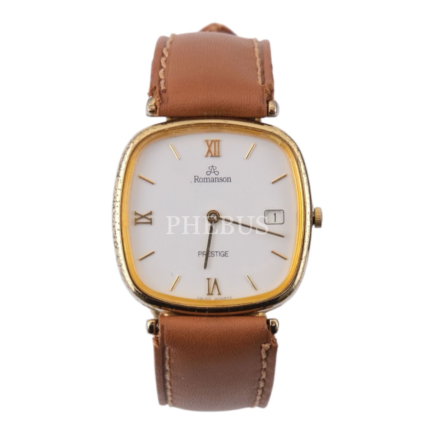 Romanson, Swiss Made, takvimli, deri kordonlu vintage erkek kol saati...