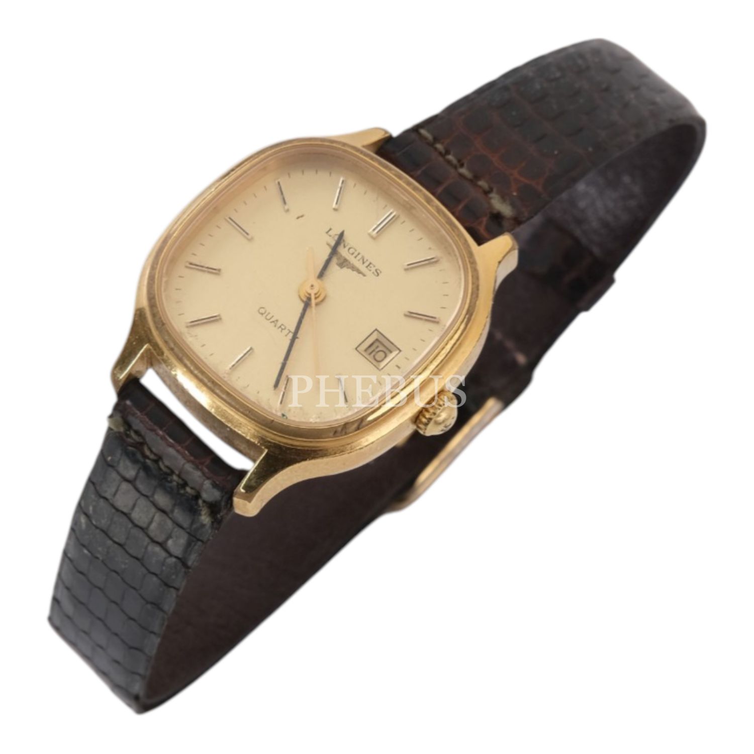 Longines, Swiss Made, takvimli, deri kordonlu, vintage kadın kol saati...