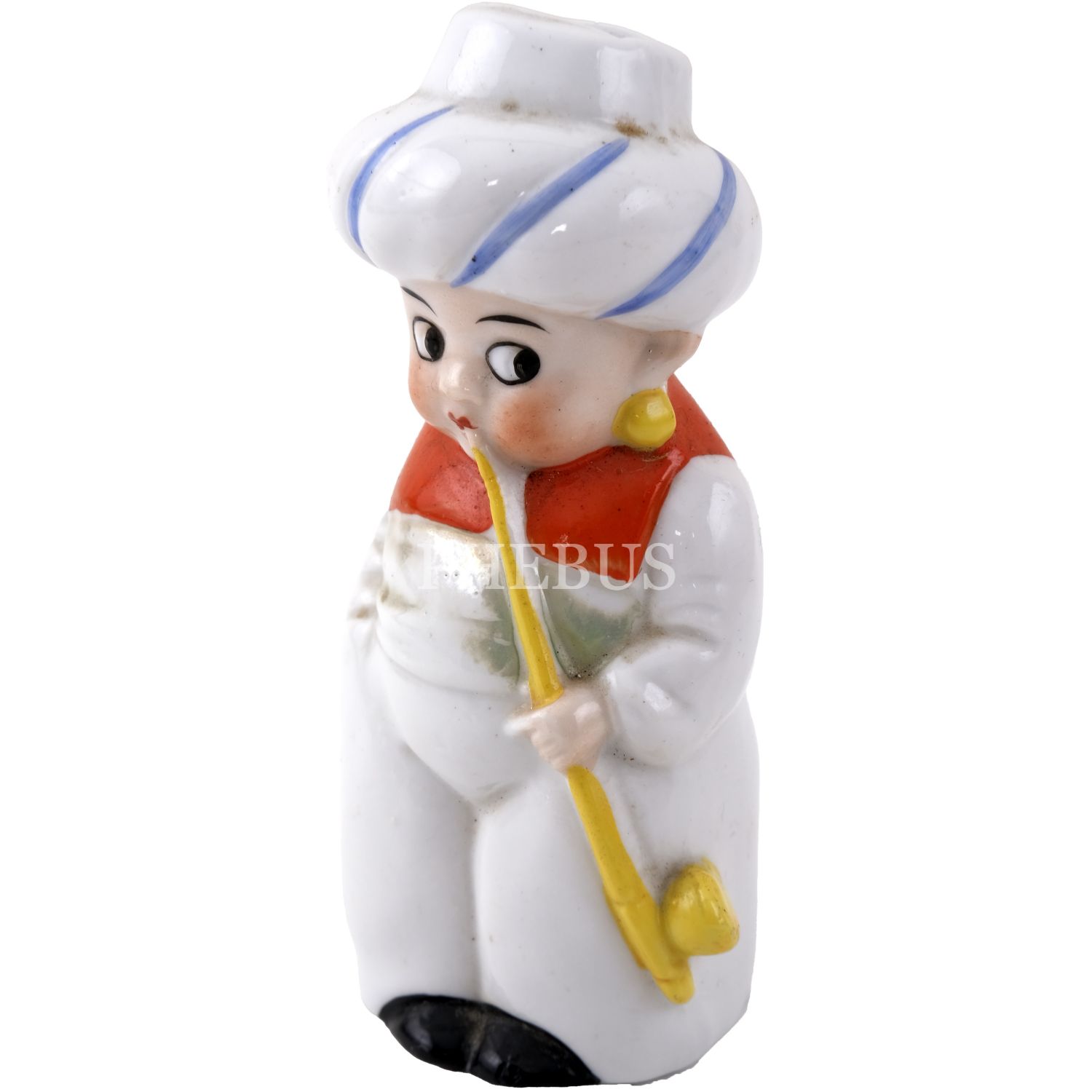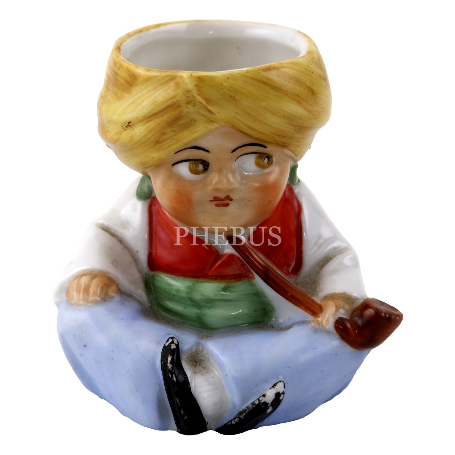 Sarıklı ve tütün çubuklu oryantal figürler formunda, iki adet el boyama porselen kürdanlık, ayakta duran 10,5x4,5x3,5 cm, bağdaş kurup oturan 6x5x4,5 cm...