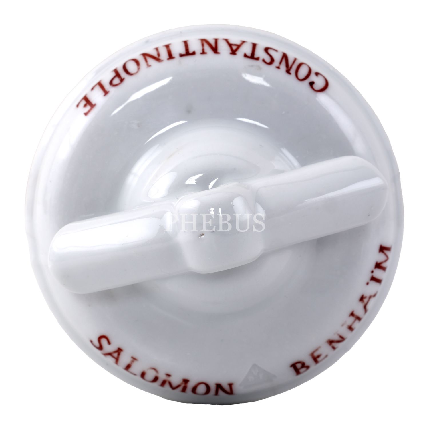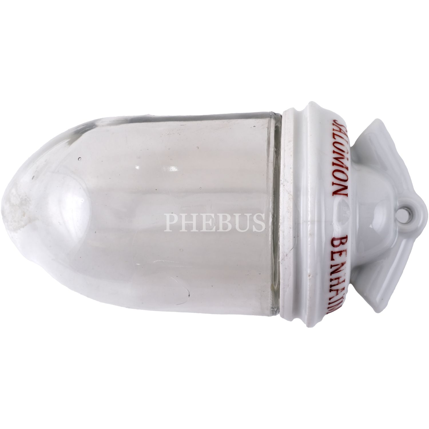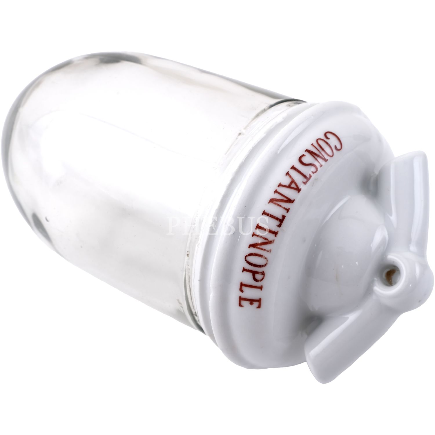 "Salomon Benhaim / Constantinople" yazılı porselen kapaklı cam lamba, 10x21 cm...