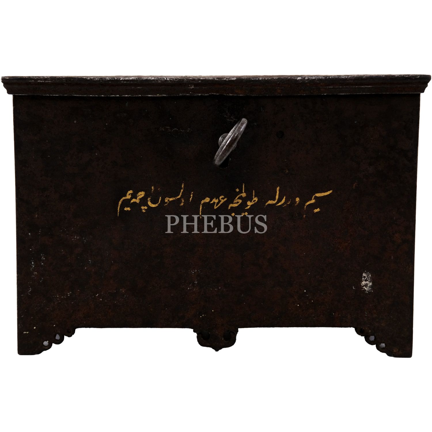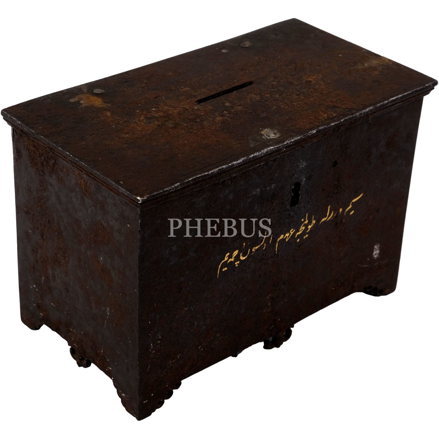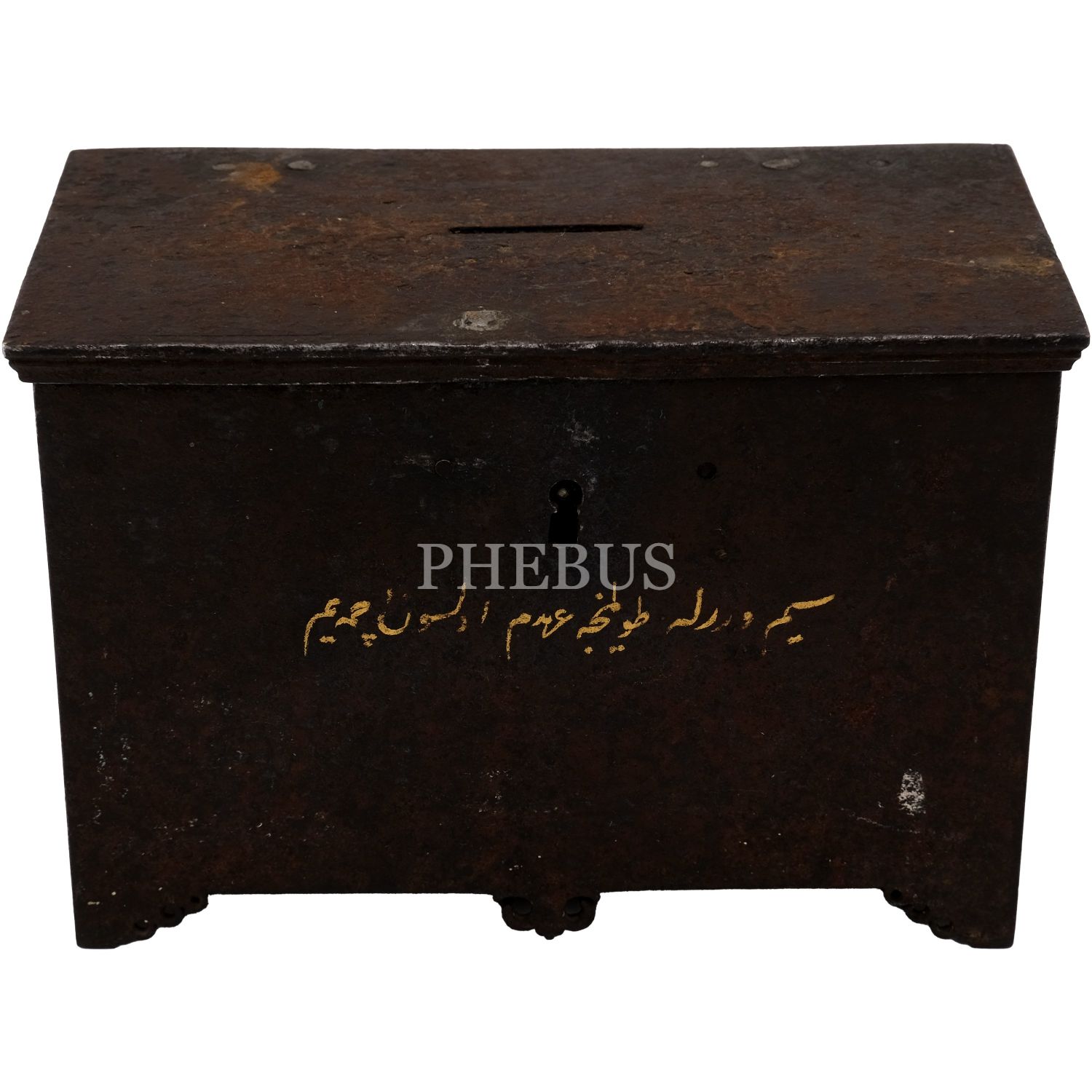 Anahtarı üzerinde, ayakları işlemeli diktörtgen formda Osmanlı dönemi kumbara.