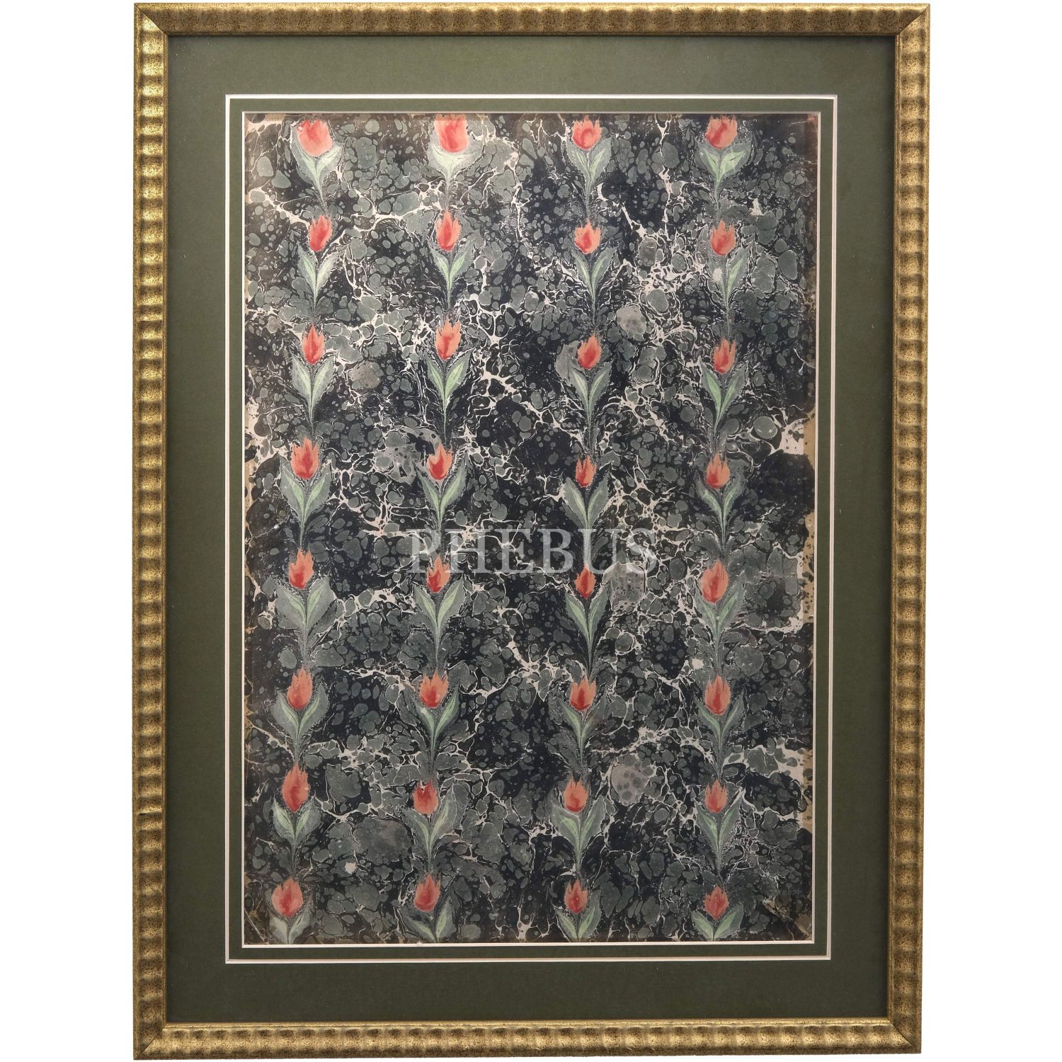 Necmeddin Okyay laleli yol ebrusu, imzasız, ebru ölçü: 33x48 cm, çerçeve içi ölçü: 42x57 cm...