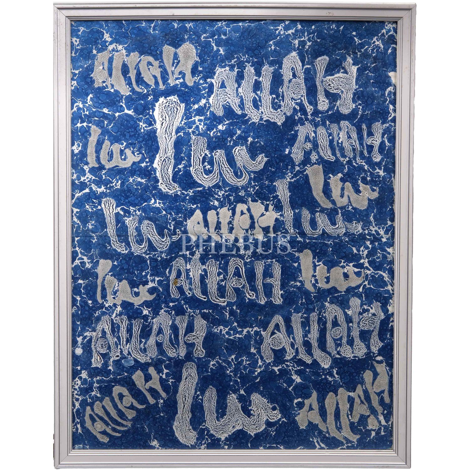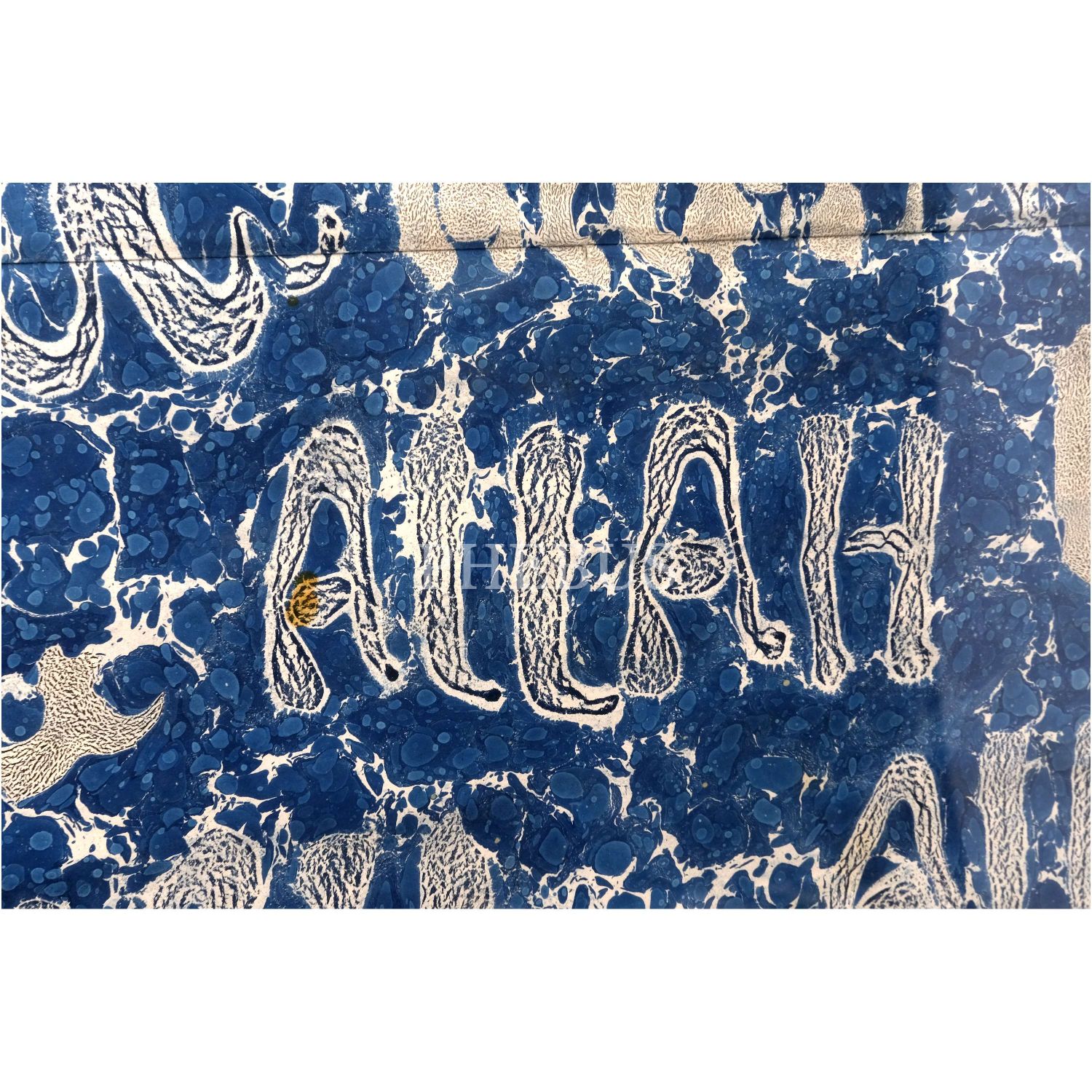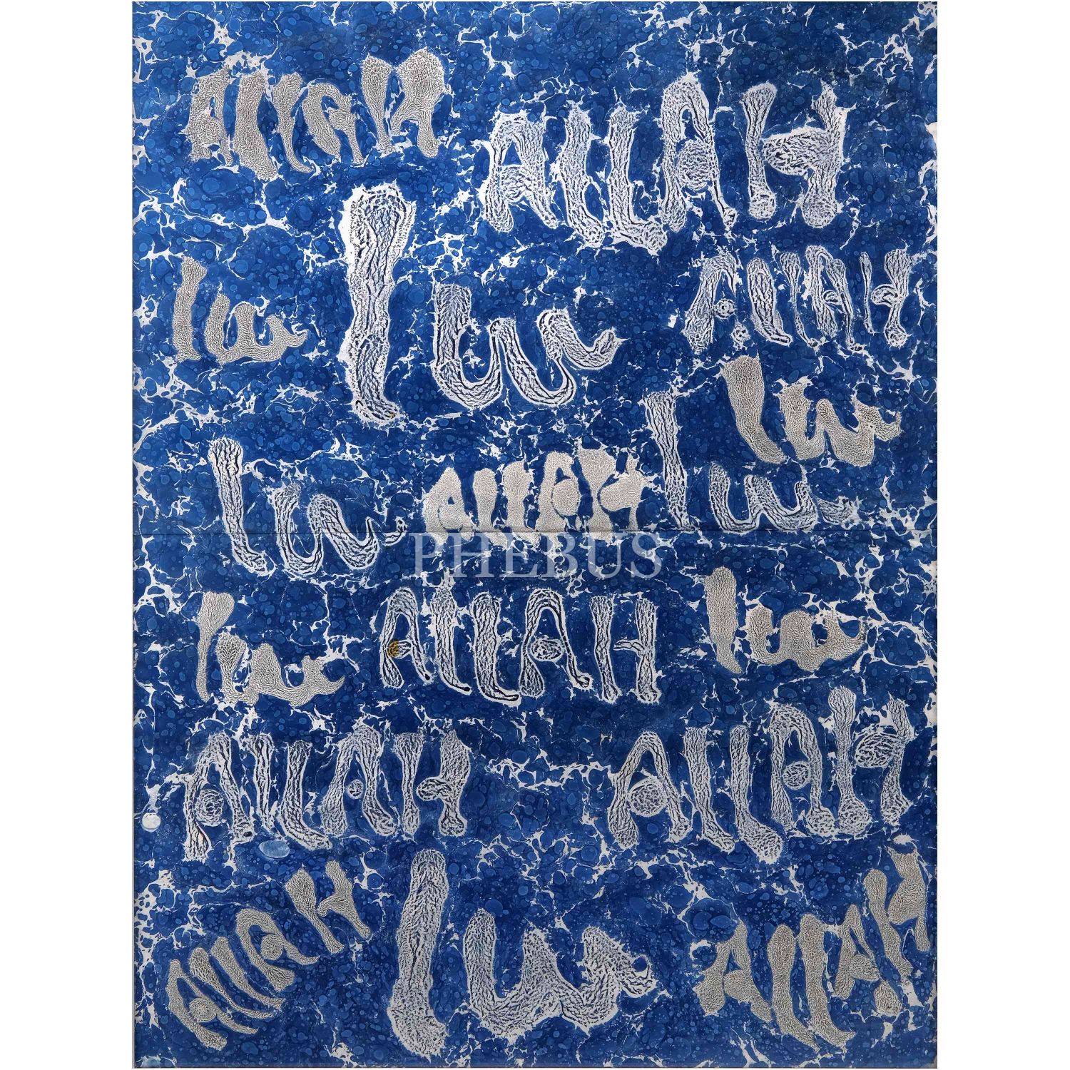 Latin ve Arap alfabeleriye "Allah" yazılı kumlu ebru.