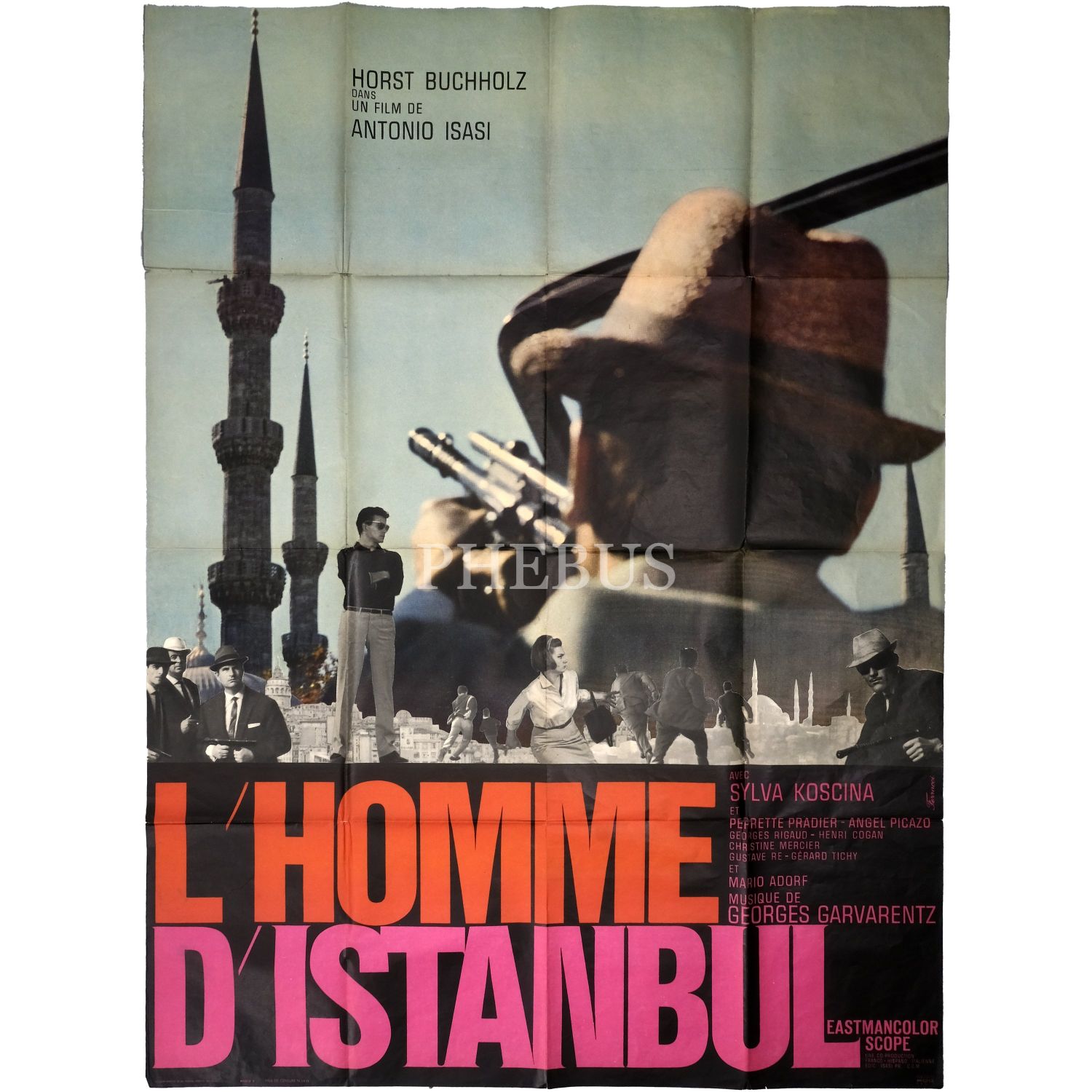 İspanyol yönetmen Antonio Isasi-Isasmendi´nin yönettiği, başrolünde Horst Buchholz´un oynadığı 1965 yapımı macera filmi "That Man in Istanbul"un büyük boy Fransızca afişi, "L´Homme d´Istanbul", 115x156 cm...
