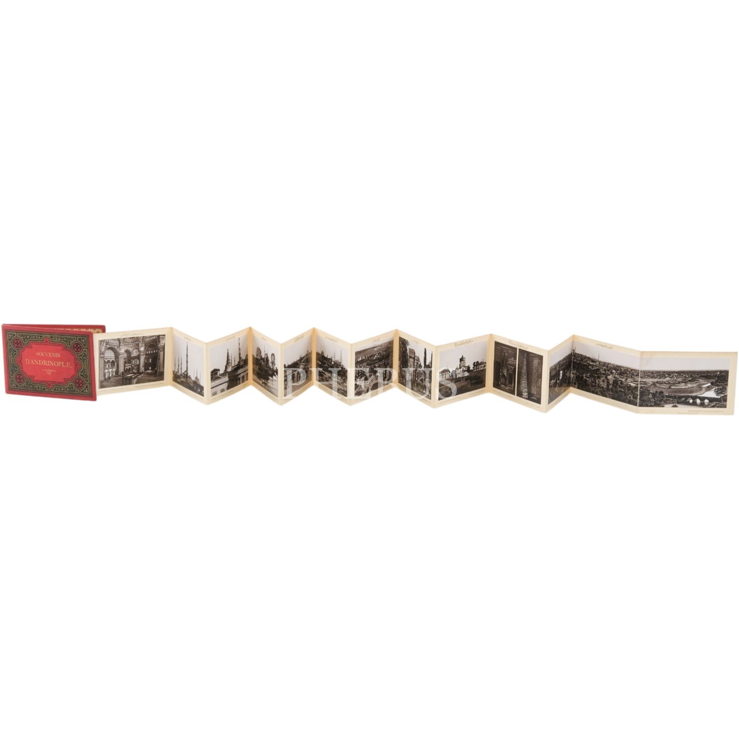 "Souvenir d'Andrinople" başlıklı, Edirne'de faaliyet gösteren fotoğrafçı D. Michailides tarafından hazırlanmış 15 parçalık -katlanır- Edirne fotoğraf albümü, albümde; Selimiye Camii, Eski Saray gibi önemli mimari yapıların fotoğraflarının yanı sıra 3 parçalık bir Edirne panoraması da yer almaktadır, fotoğraflar (açık halde) 205x9 cm, cilt 15x10,5 cm...