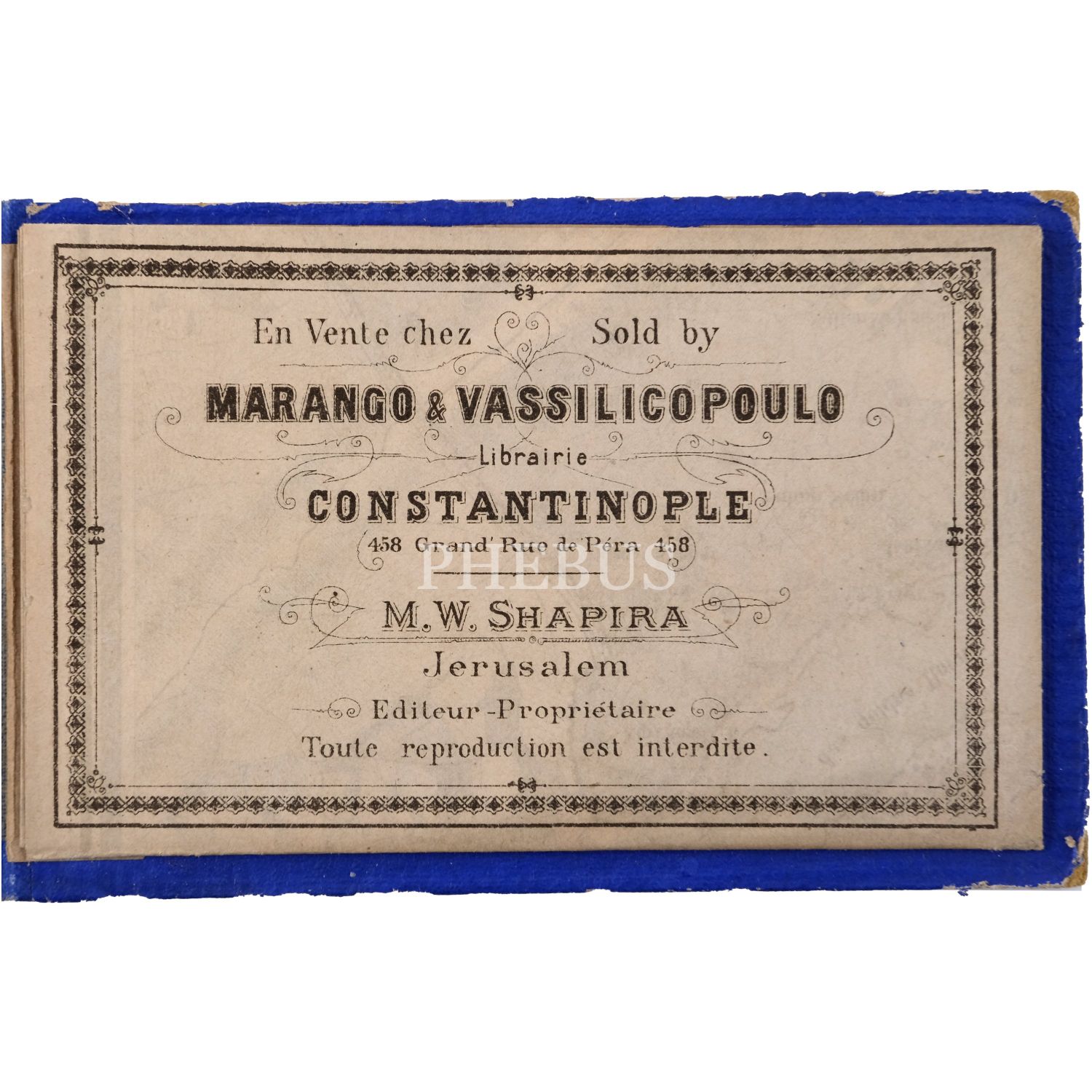 İki numaralı albümün sonunda yer alan İstanbul haritasının başında, editör ve satış yeri belirtilmiştir: Editör: M. W. Shapira - Jerusalem (Kudüs) / Satış yeri: Marango & Vassilicopoulo Librairie - Constantinople.
