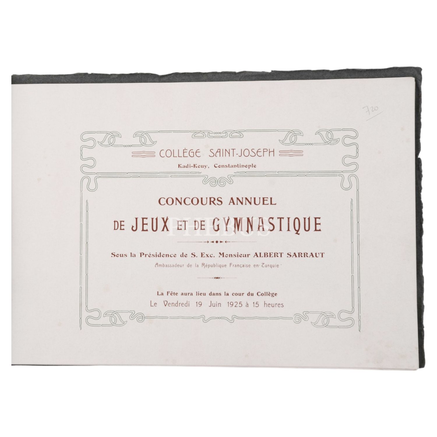 Saint-Joseph Fransız Lisesi (Kadıköy) Spor Festivali hatıra albümü, 1925, Imprimerie Tsitouris Freres - Constantinople, 26 sayfa, 25x16,5 cm...