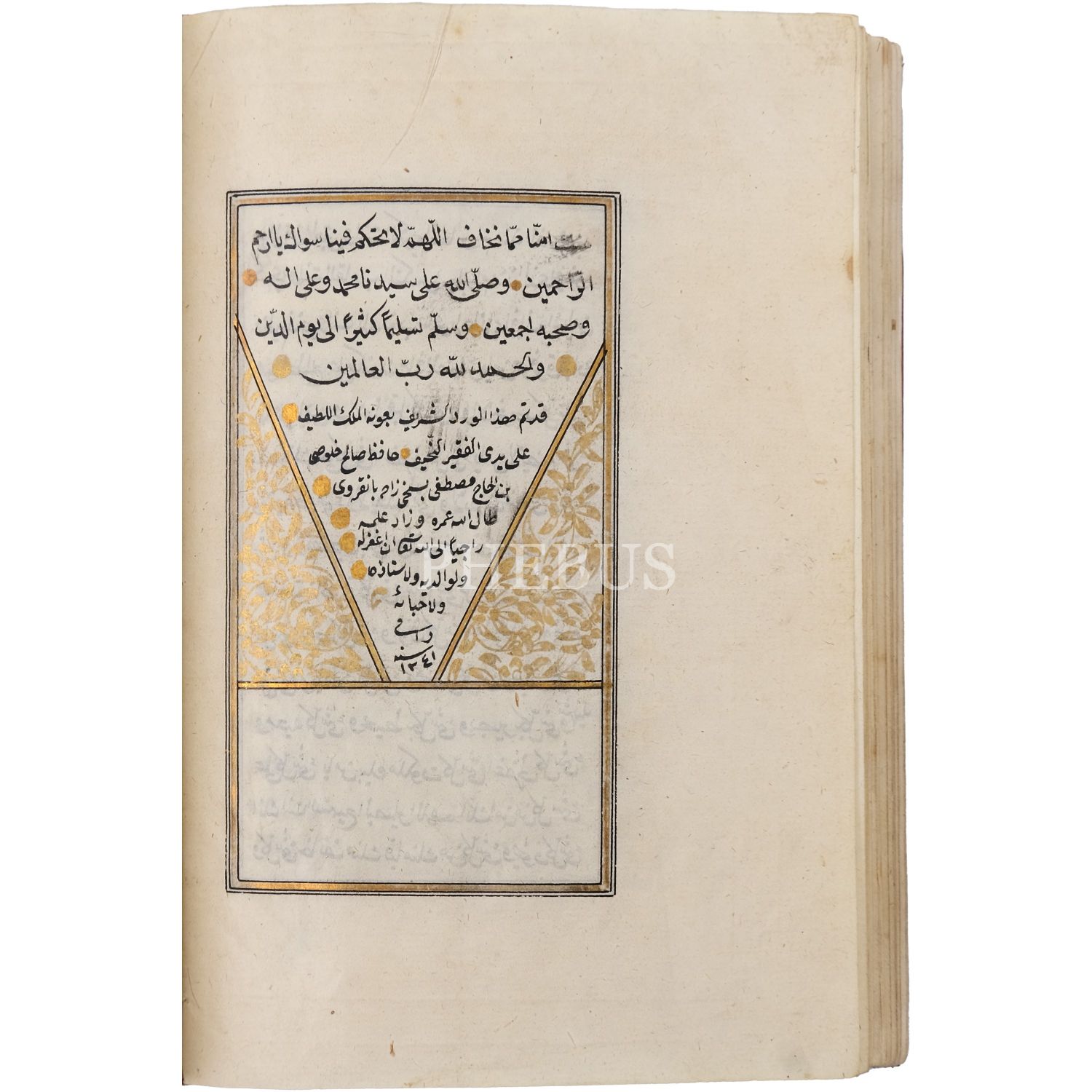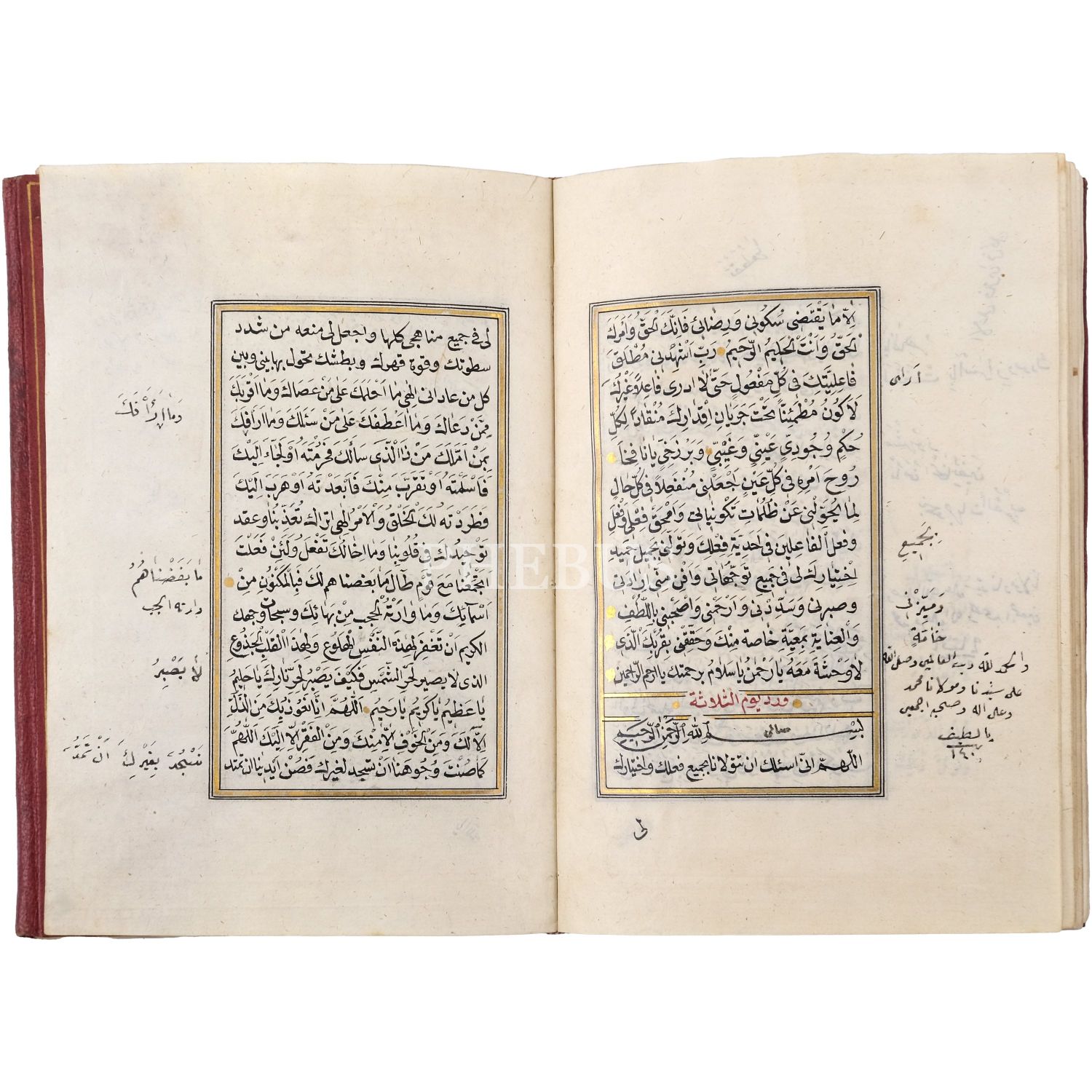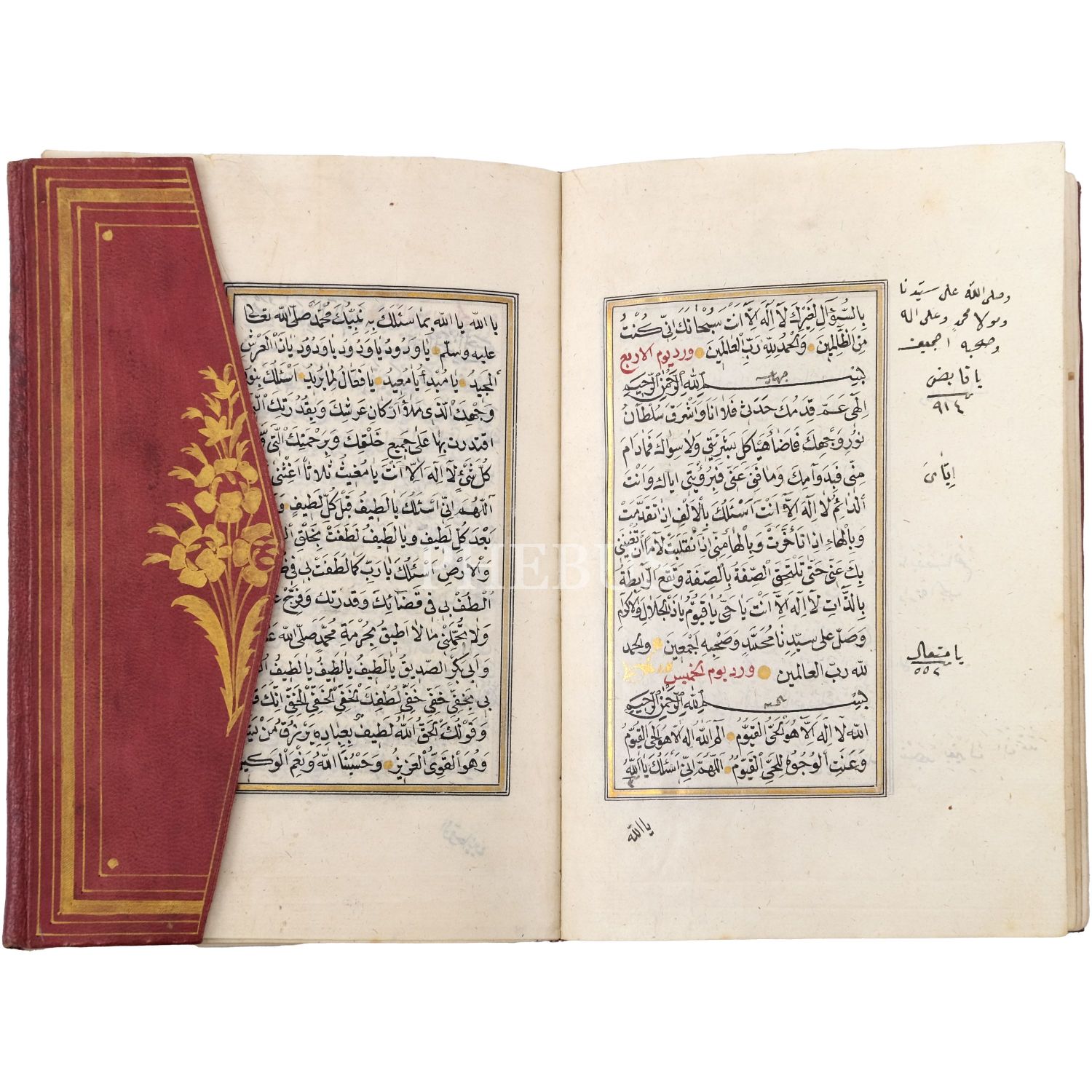Mıklebli kırmızı deri dönem cildinde. Serlevhalı, altın cetvelli, altın duraklı ve tahrirli. Kırmızı ve siyah nesih yazı ile...