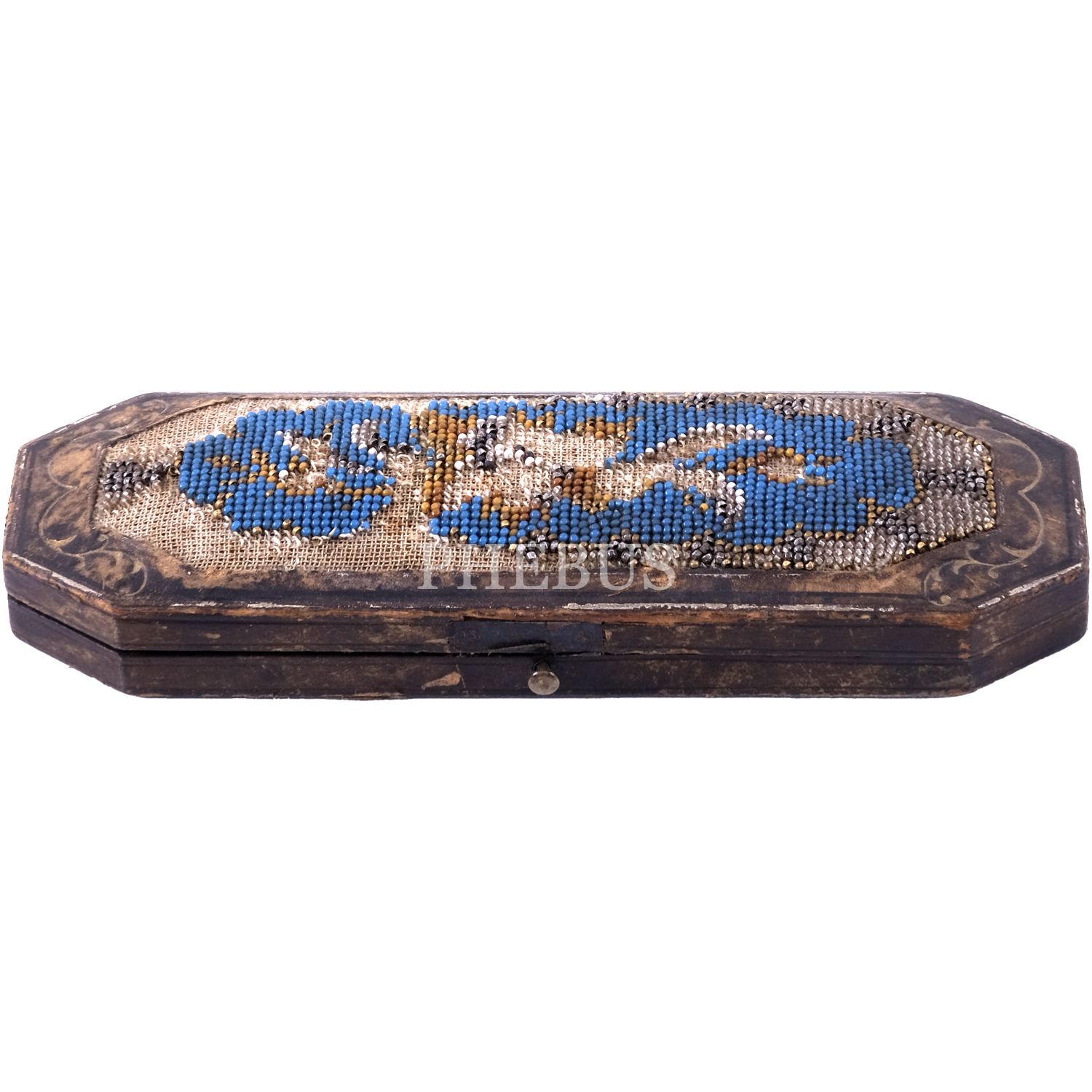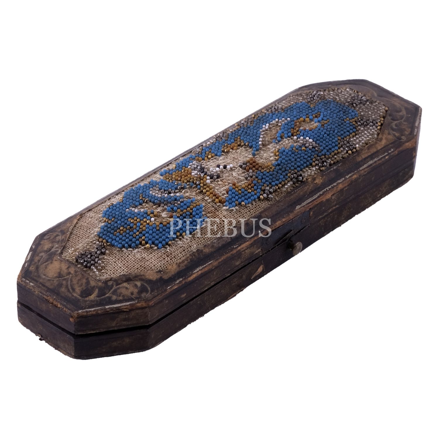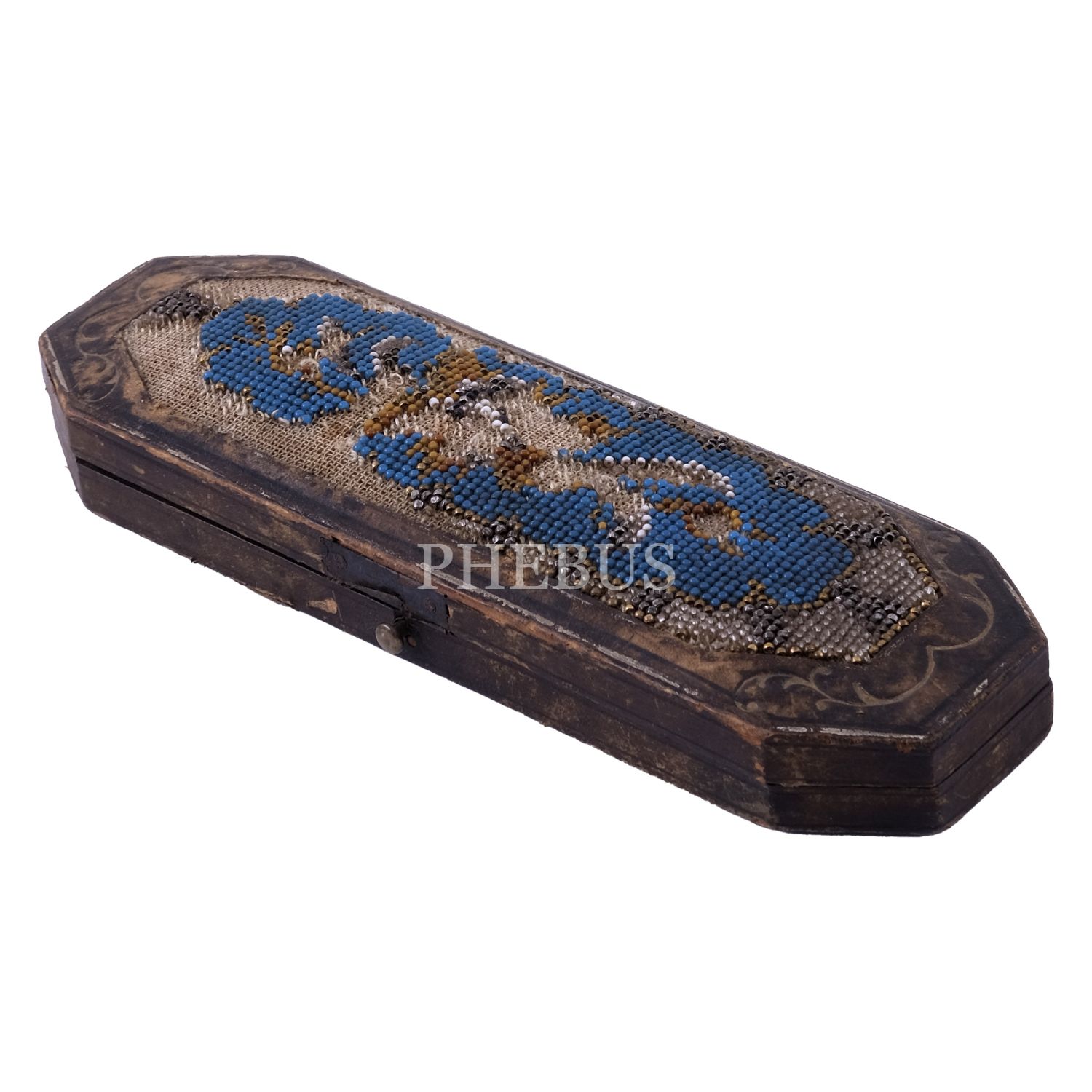 Kapağı boncuk işlemeli kutuda küçük boyutlu kalem ve mühre.