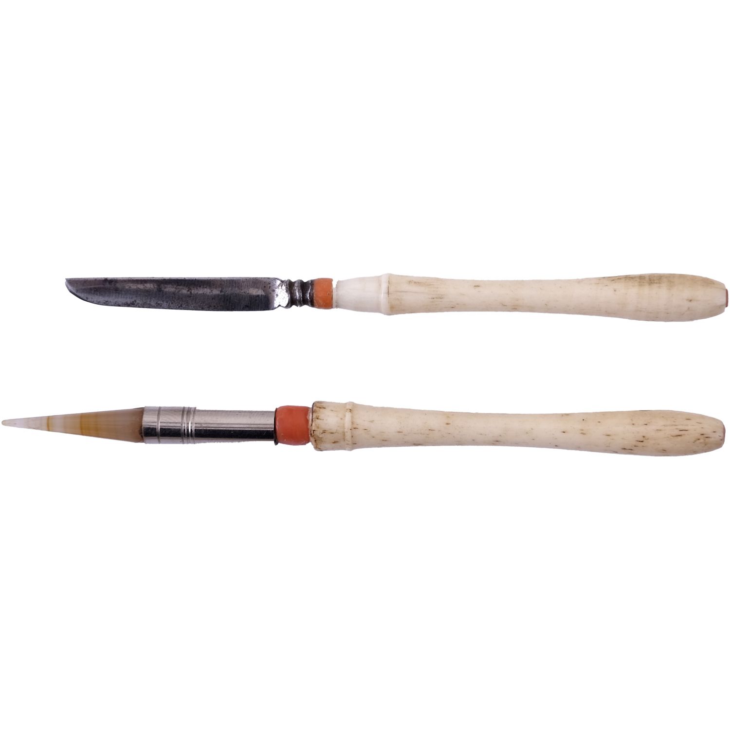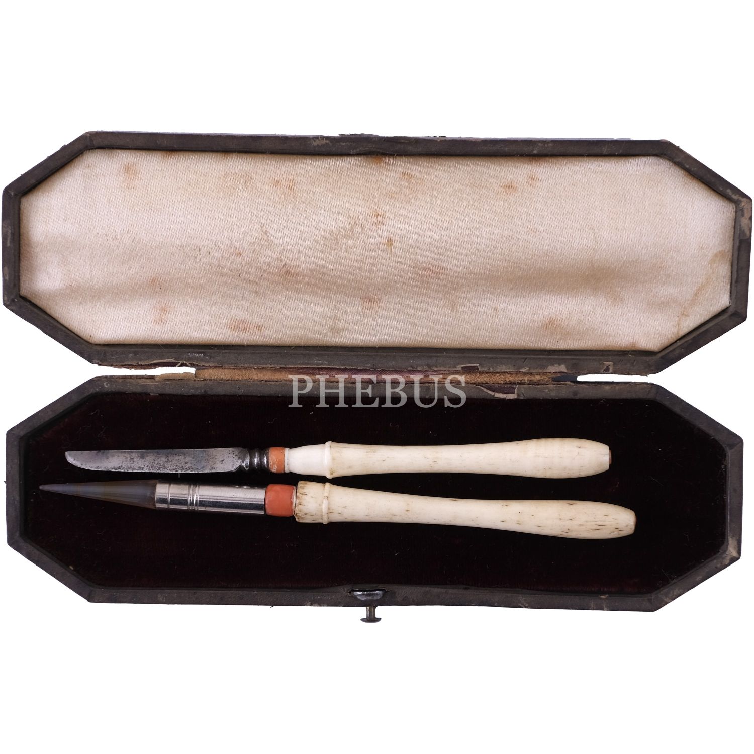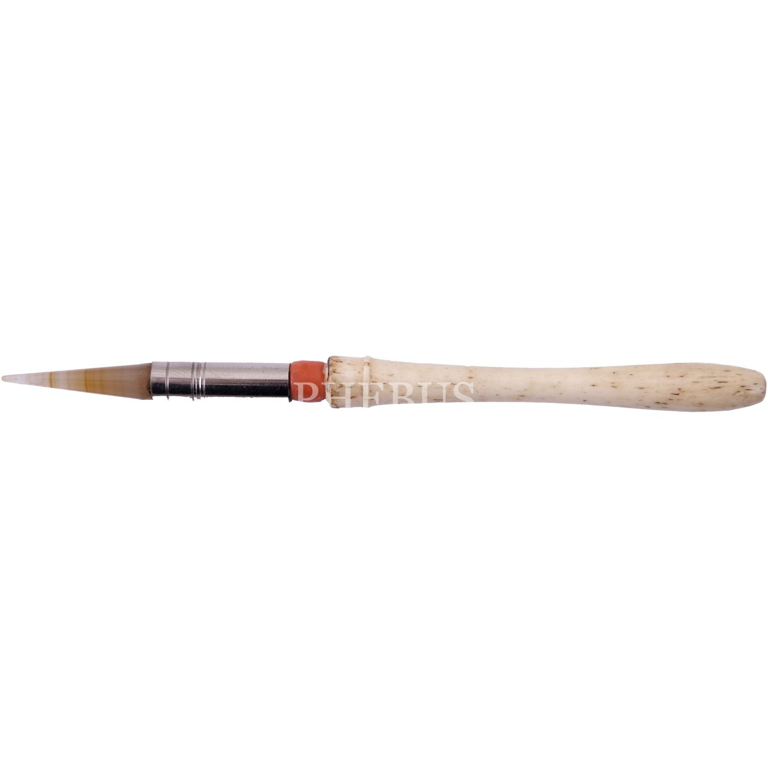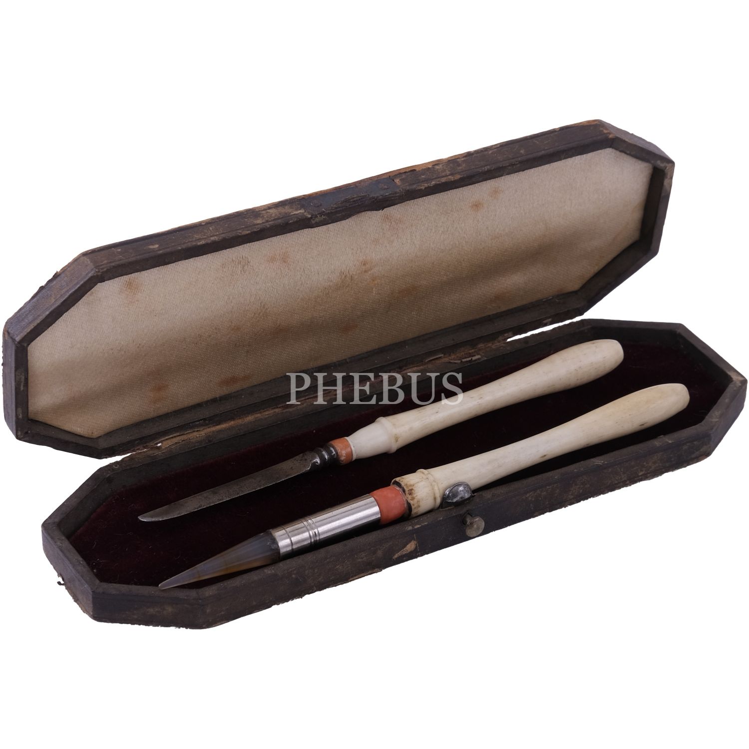Kapağı boncuk işlemeli kutuda küçük boyutlu kalem ve mühre.