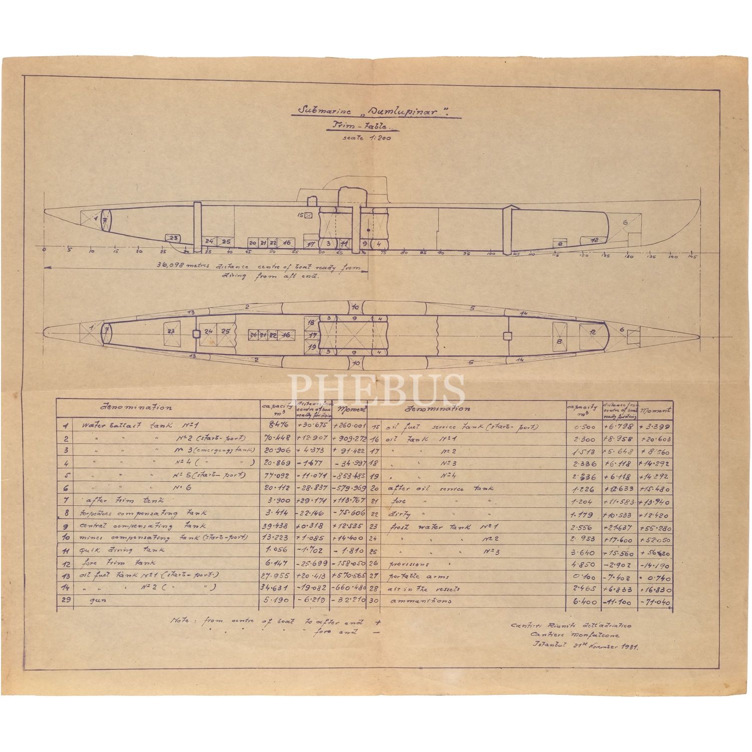 Her ikisi de İtalyan´dan satın alınan ilk "Dumlupınar" (Mayın Denizaltı Gemisi) ve "Sakarya" (Hücum Denizaltı Gemisi) denizaltılarının, Monfalcone Tersanesi´ndeki (İtalya) inşa (konstrüksiyon) ve denize indirilme süreçlerini belgeleyen iki adet fotoğraf albümü, Dumlupınar denizaltısı albümünde 76 fotoğraf (+El çizimi ´Trim tablosu´ [1:200]), Sakarya denizaltısı albümünde ise 87 fotoğraf yer almaktadır, albümler 25x19 cm...