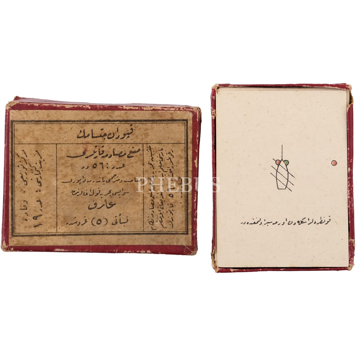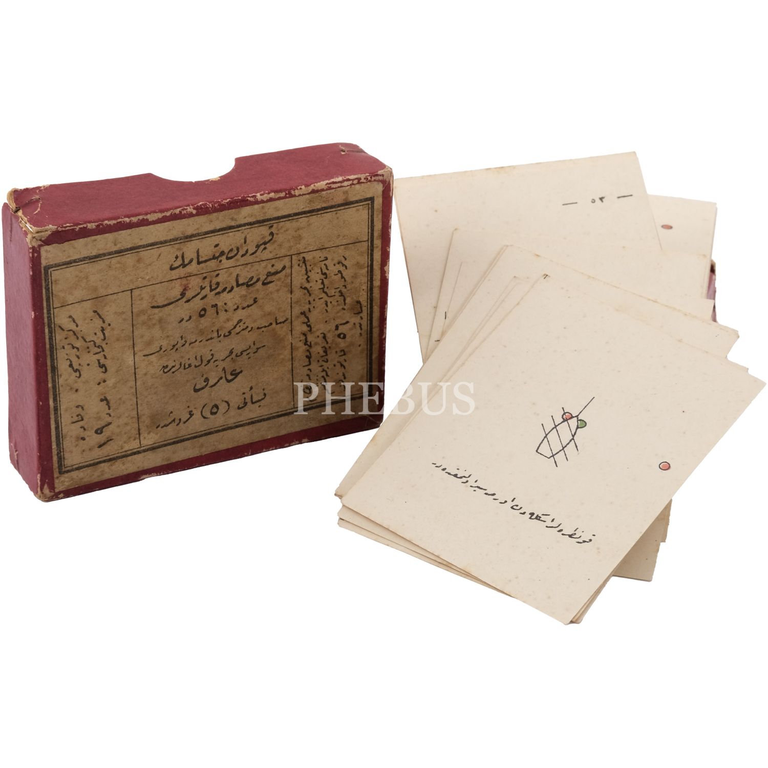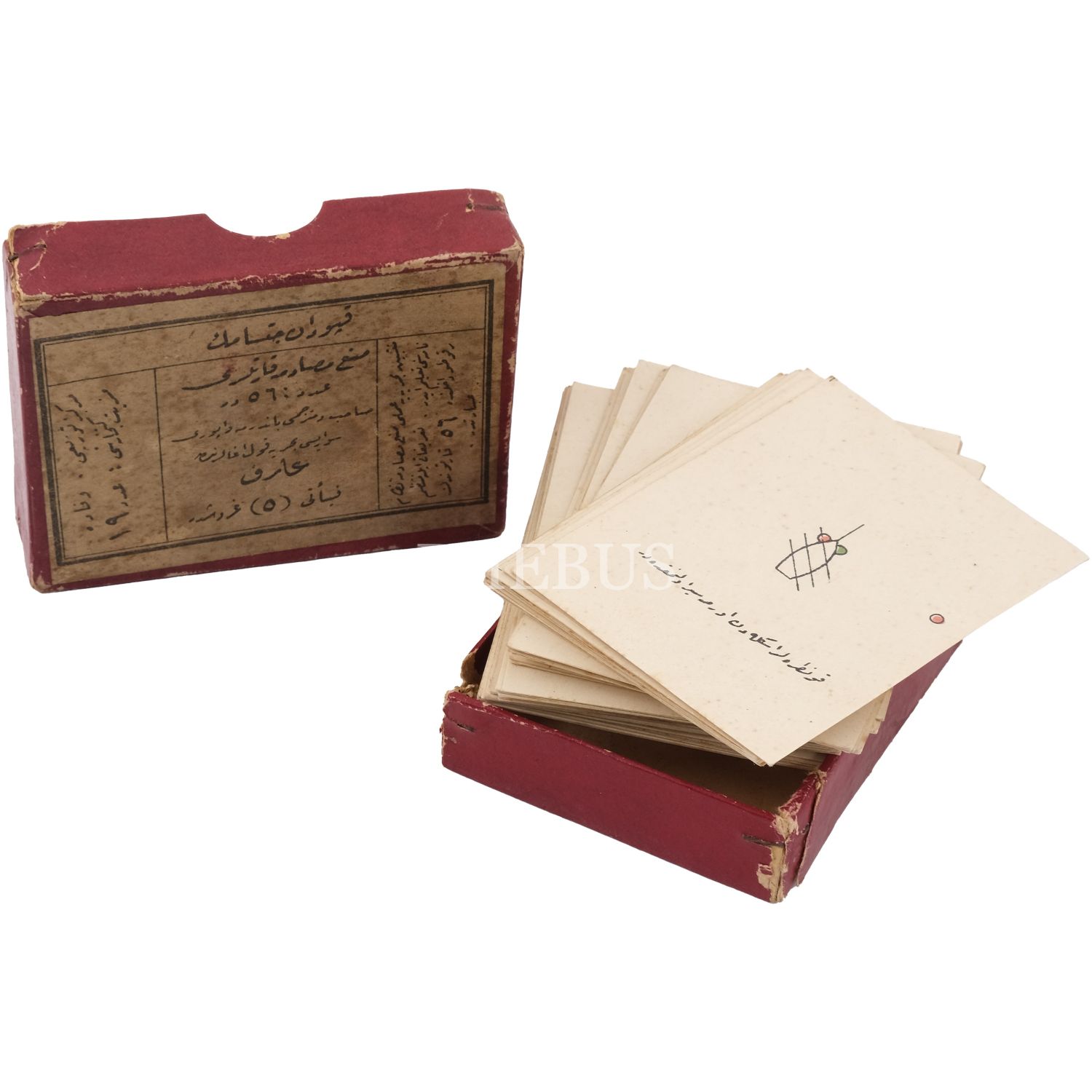 Bandırma Vapuru´nun kaptanı Arif Efendi tarafından tercüme edilerek hazırlanan "MEN´-İ MÜSADEME KARTLARI", kutu 9x7x2 cm, kartlar 6x8 cm...