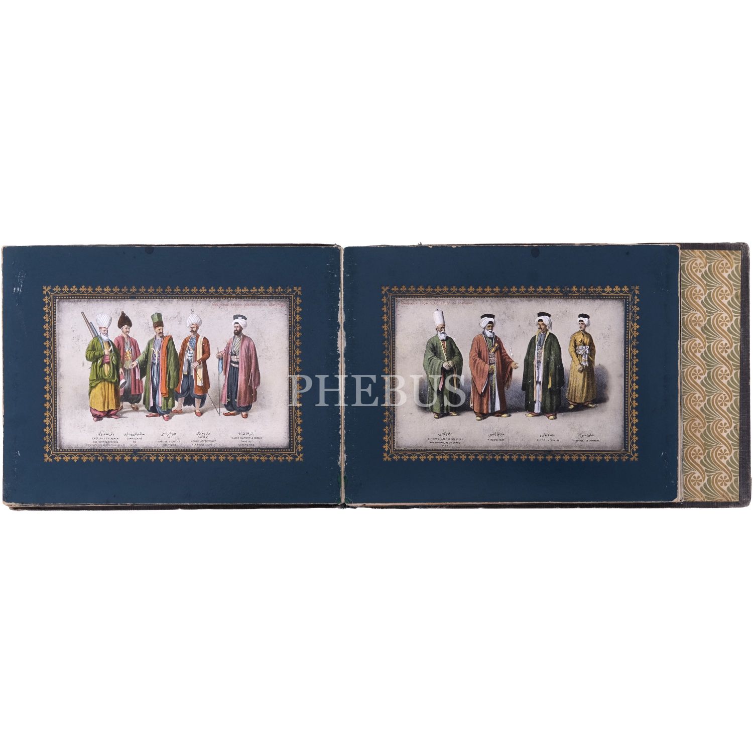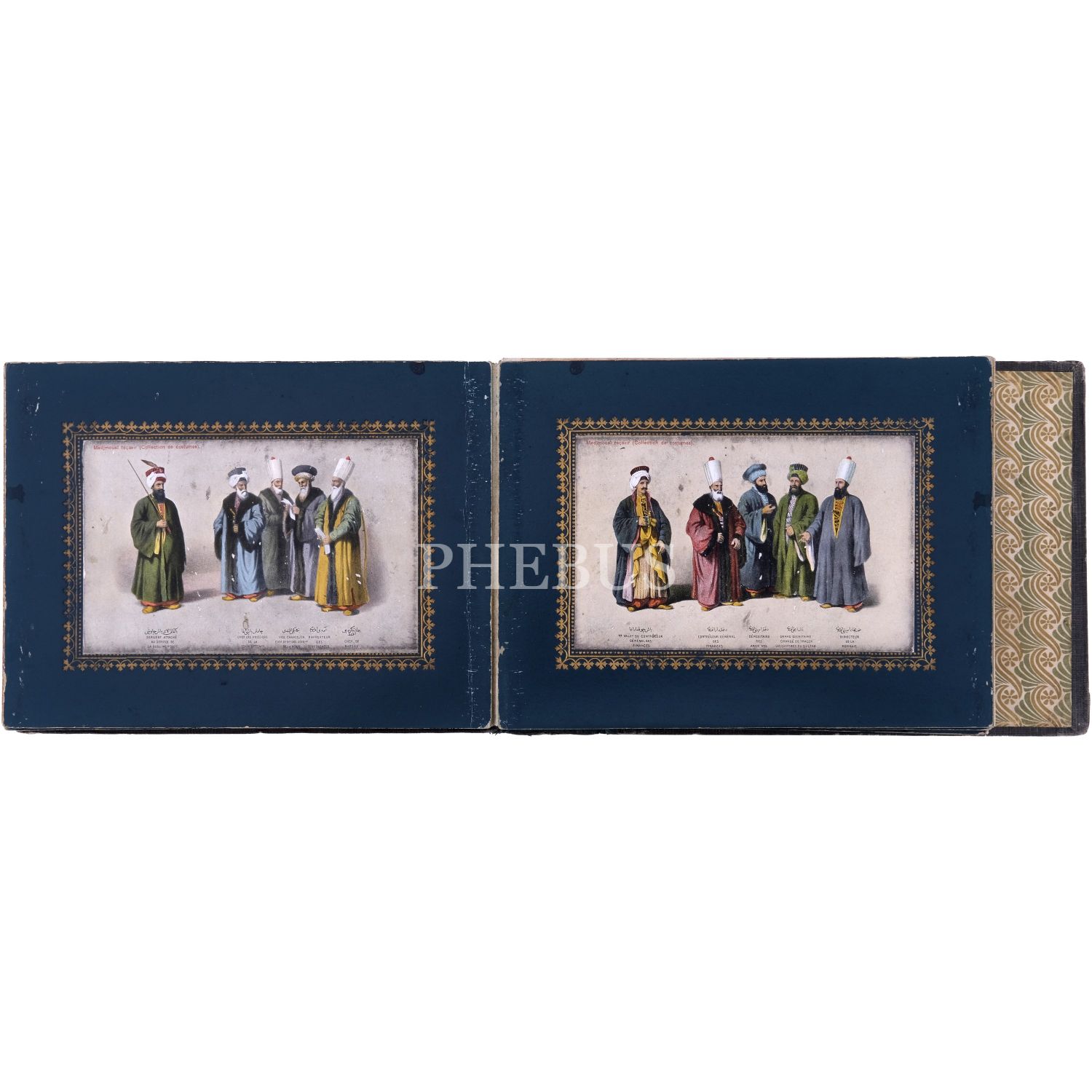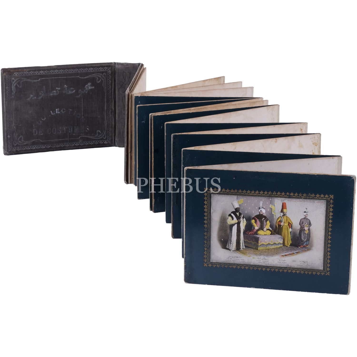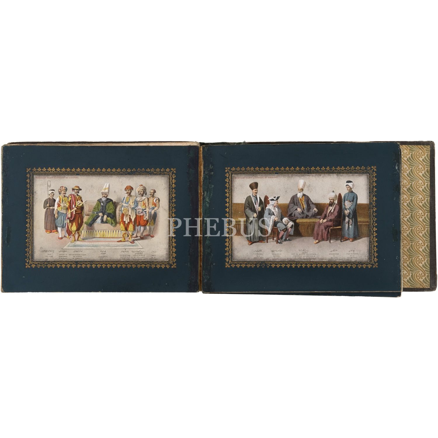 Türkiye’de Batı tarzı resim sanatının öncülerinden Ârif Mehmed Paşa´nın, kırk yıllık bir çalışma sonrası yayımladığı; Osmanlı devlet adamlarının kostümlerini tasvir ettiği, Türk resminde bir çığır açan harika resimleri baz alınarak hazırlanmış kartpostallardan meydana gelen koleksiyon albümü; albüm içinde, panoramik olarak açılabilen, altın yaldız motifli paspartulara yerleştirilmiş 26 adet kartpostal mevcuttur, kartpostallar 9x14 cm, albüm 20,5x16 cm...