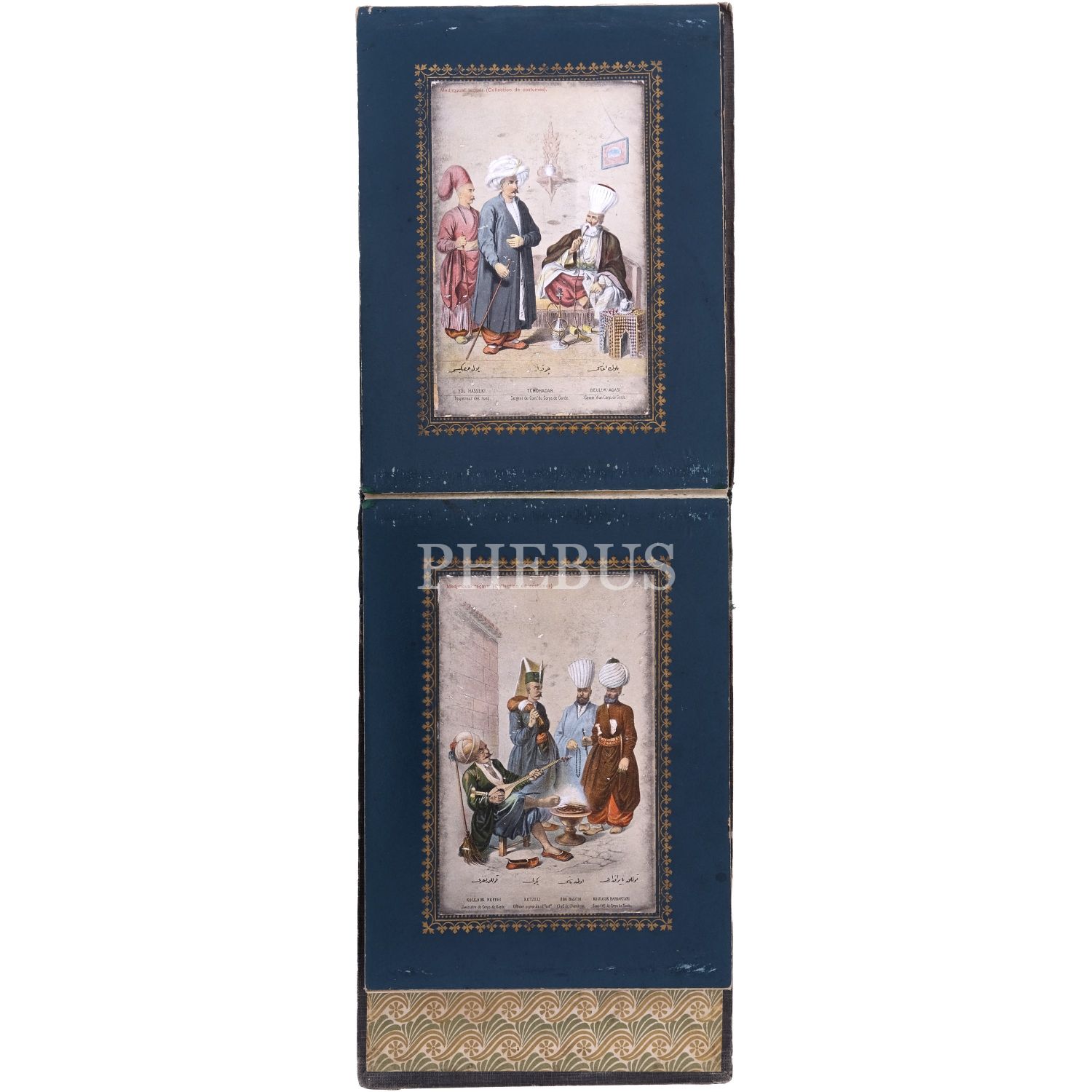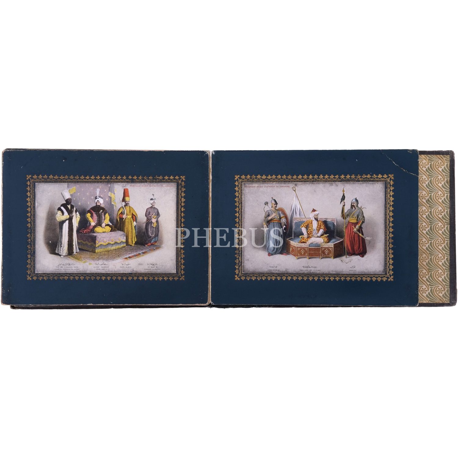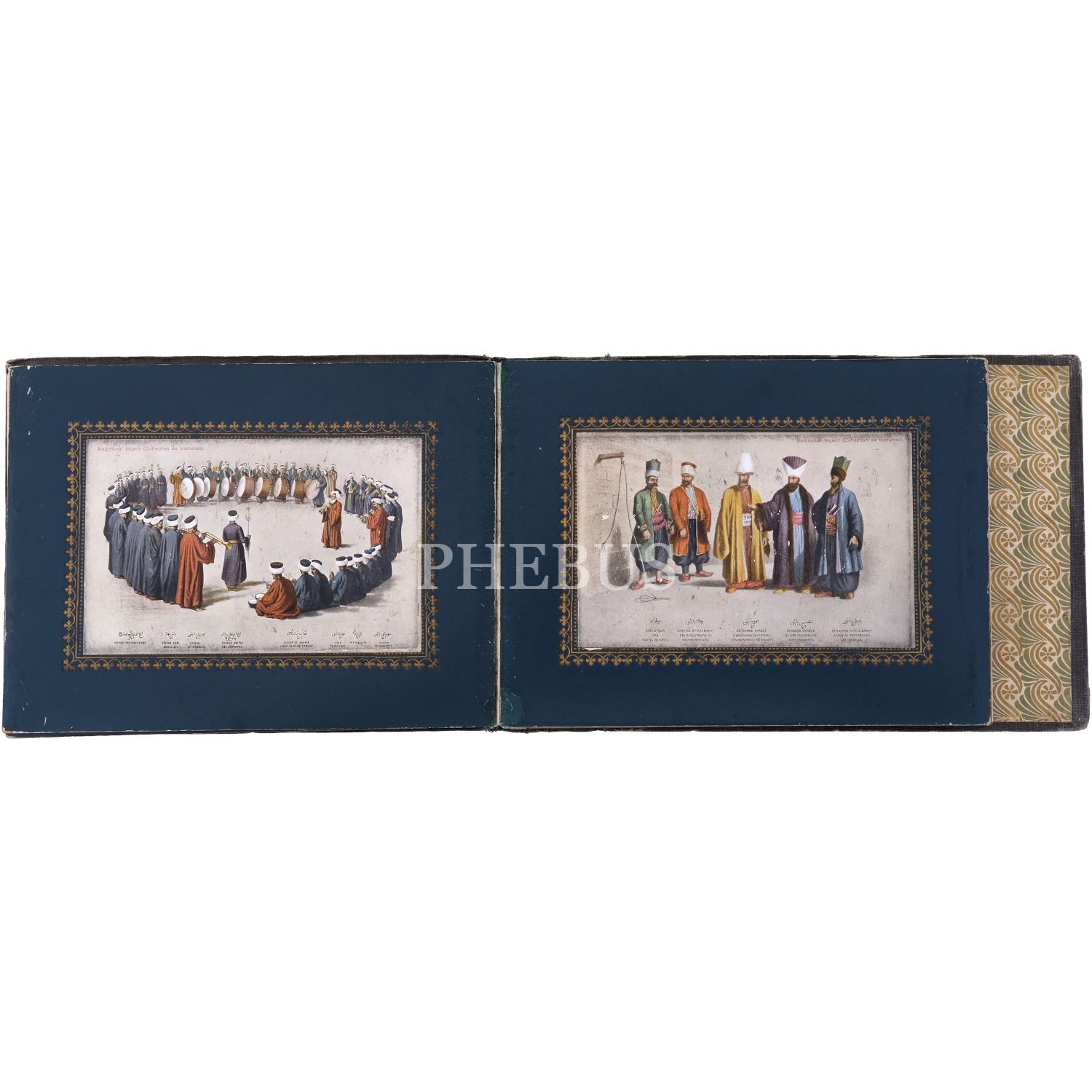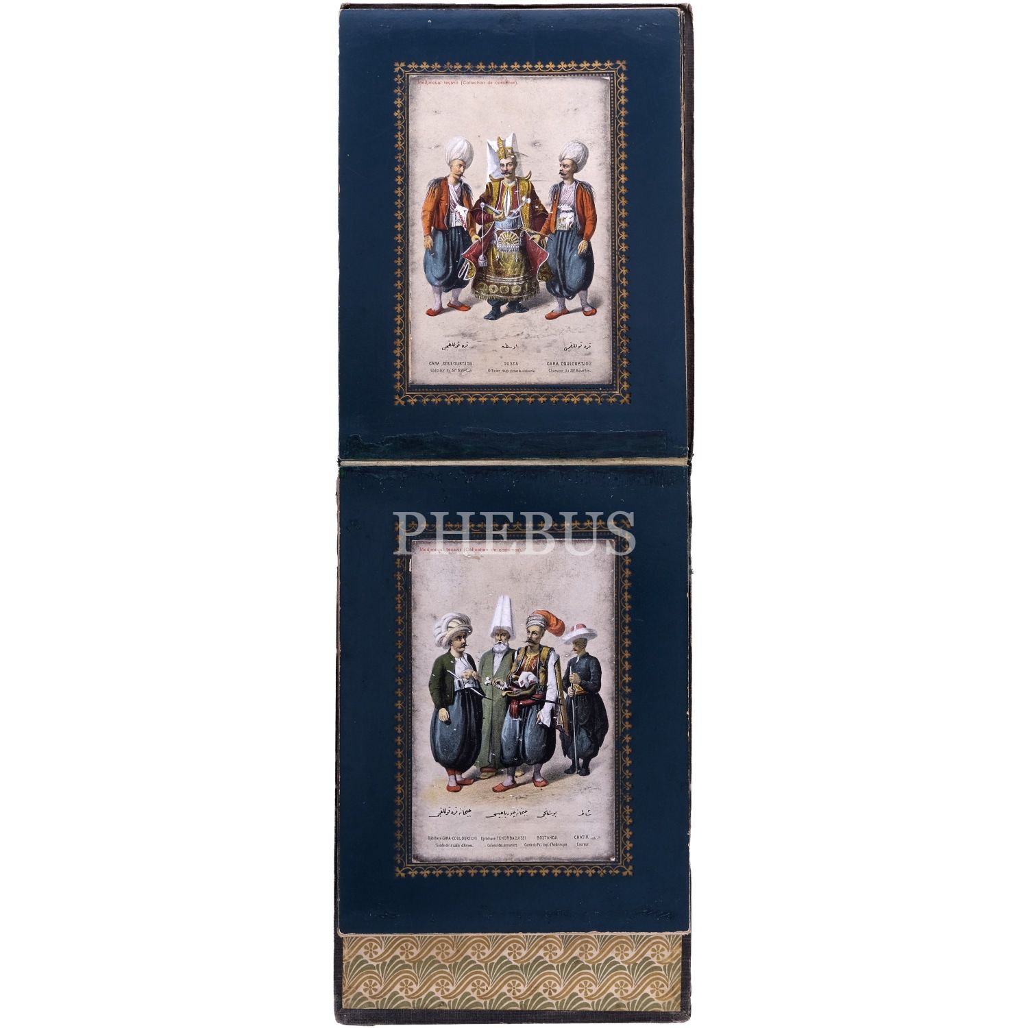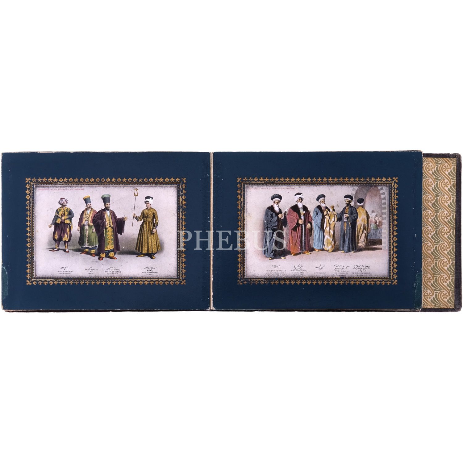 Türkiye’de Batı tarzı resim sanatının öncülerinden Ârif Mehmed Paşa´nın, kırk yıllık bir çalışma sonrası yayımladığı; Osmanlı devlet adamlarının kostümlerini tasvir ettiği, Türk resminde bir çığır açan harika resimleri baz alınarak hazırlanmış kartpostallardan meydana gelen koleksiyon albümü; albüm içinde, panoramik olarak açılabilen, altın yaldız motifli paspartulara yerleştirilmiş 26 adet kartpostal mevcuttur, kartpostallar 9x14 cm, albüm 20,5x16 cm...