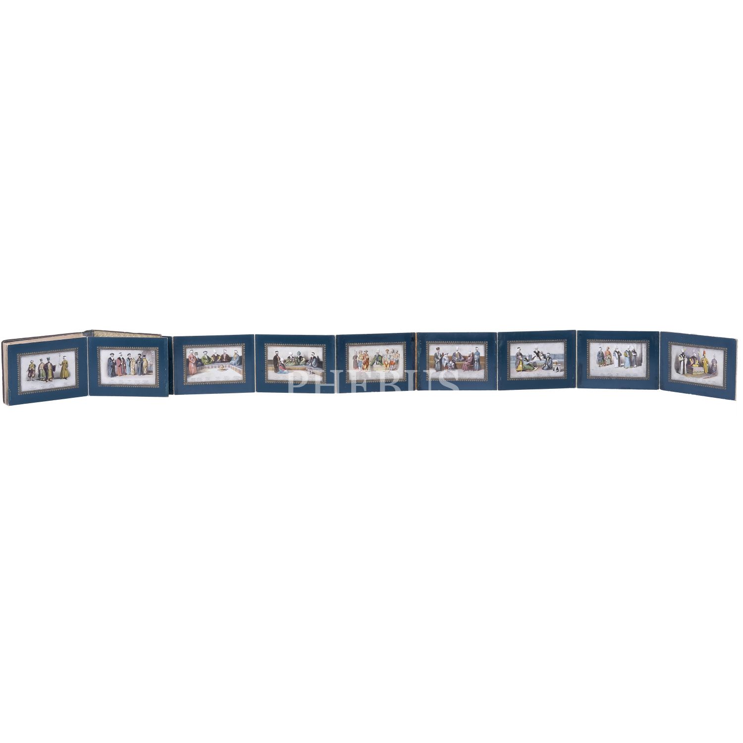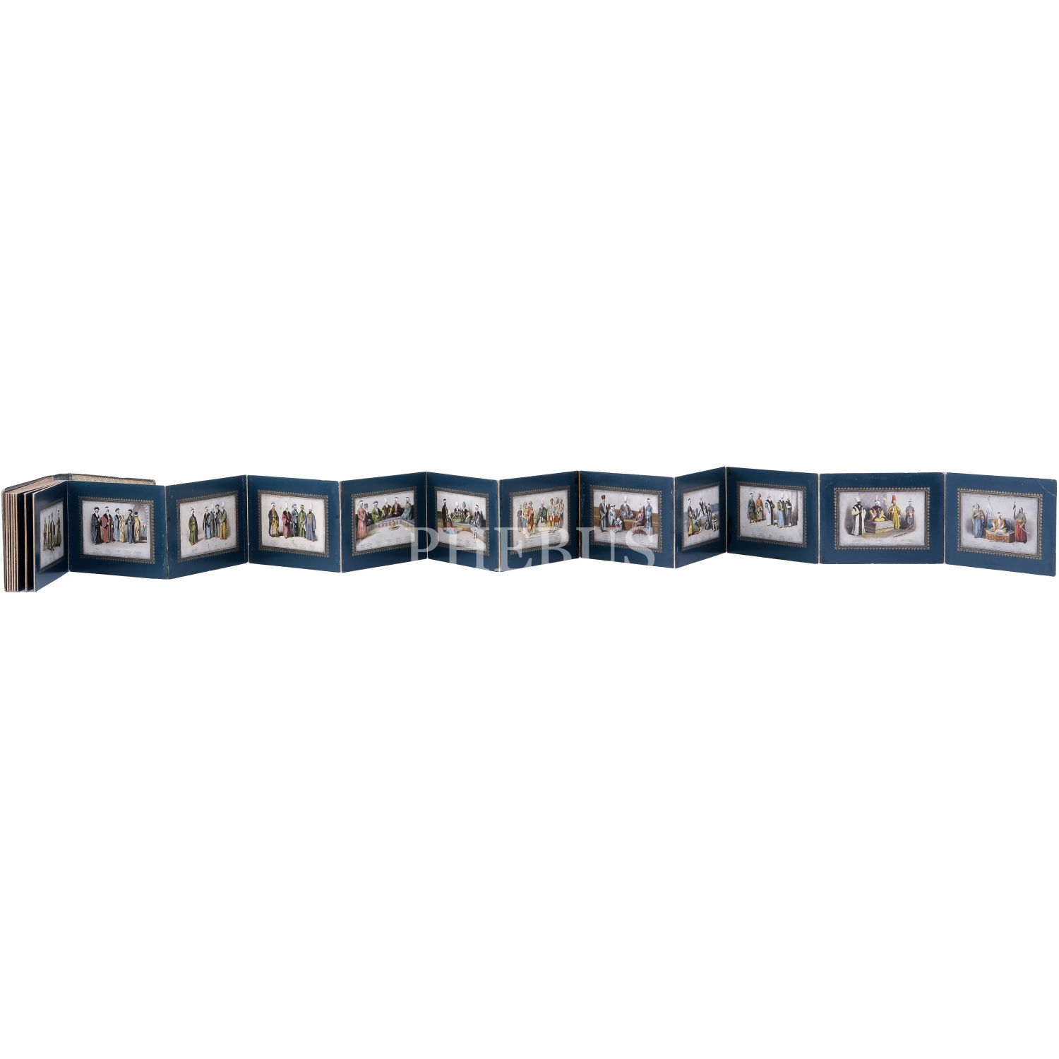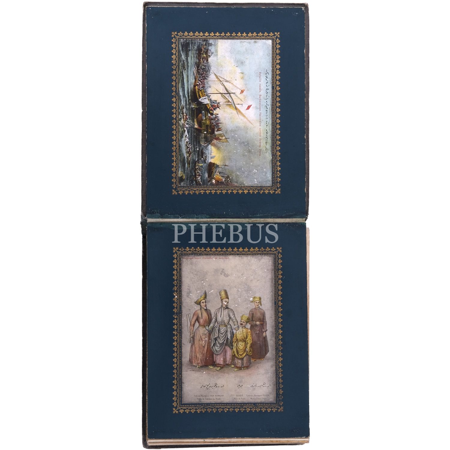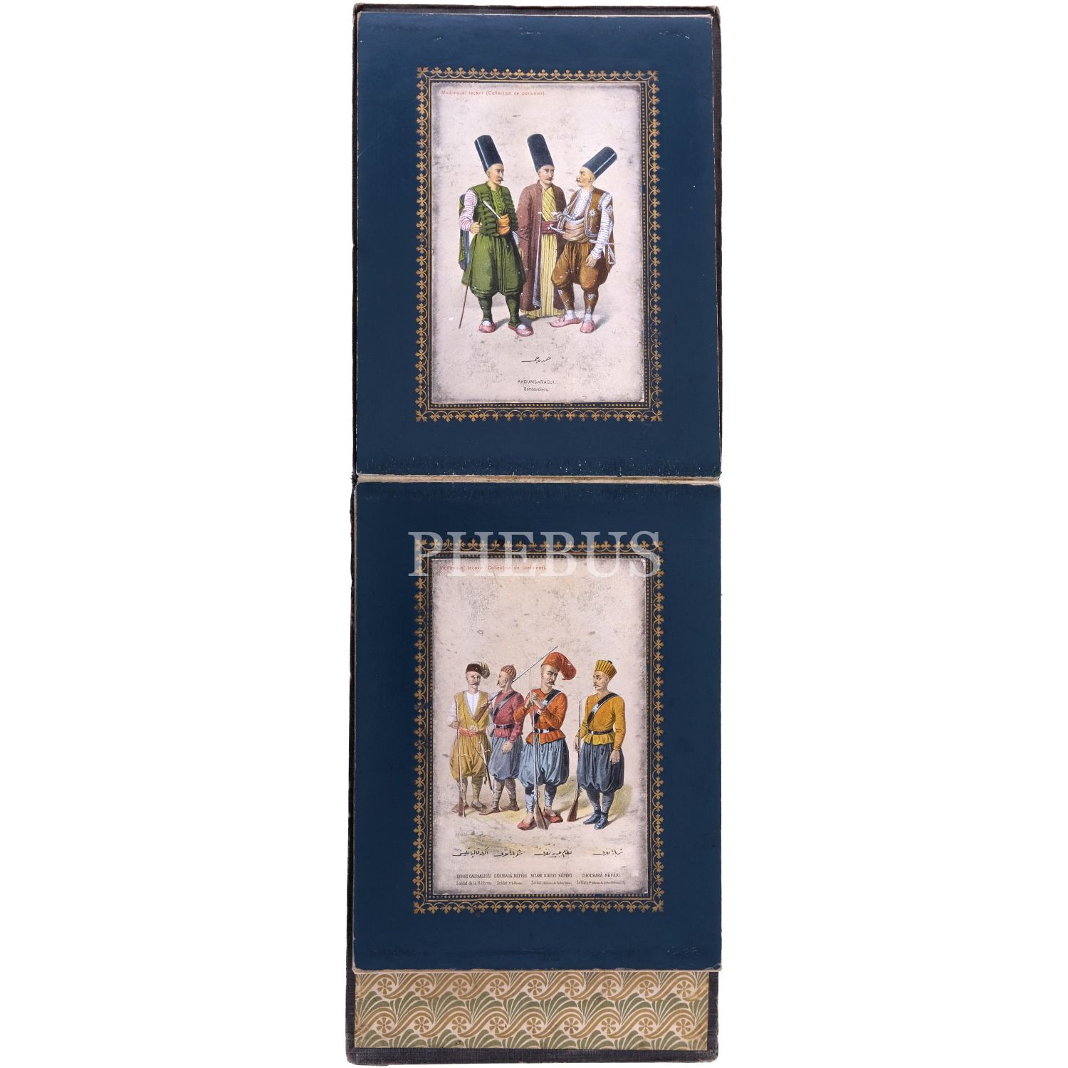 Türkiye’de Batı tarzı resim sanatının öncülerinden Ârif Mehmed Paşa´nın, kırk yıllık bir çalışma sonrası yayımladığı; Osmanlı devlet adamlarının kostümlerini tasvir ettiği, Türk resminde bir çığır açan harika resimleri baz alınarak hazırlanmış kartpostallardan meydana gelen koleksiyon albümü; albüm içinde, panoramik olarak açılabilen, altın yaldız motifli paspartulara yerleştirilmiş 26 adet kartpostal mevcuttur, kartpostallar 9x14 cm, albüm 20,5x16 cm...