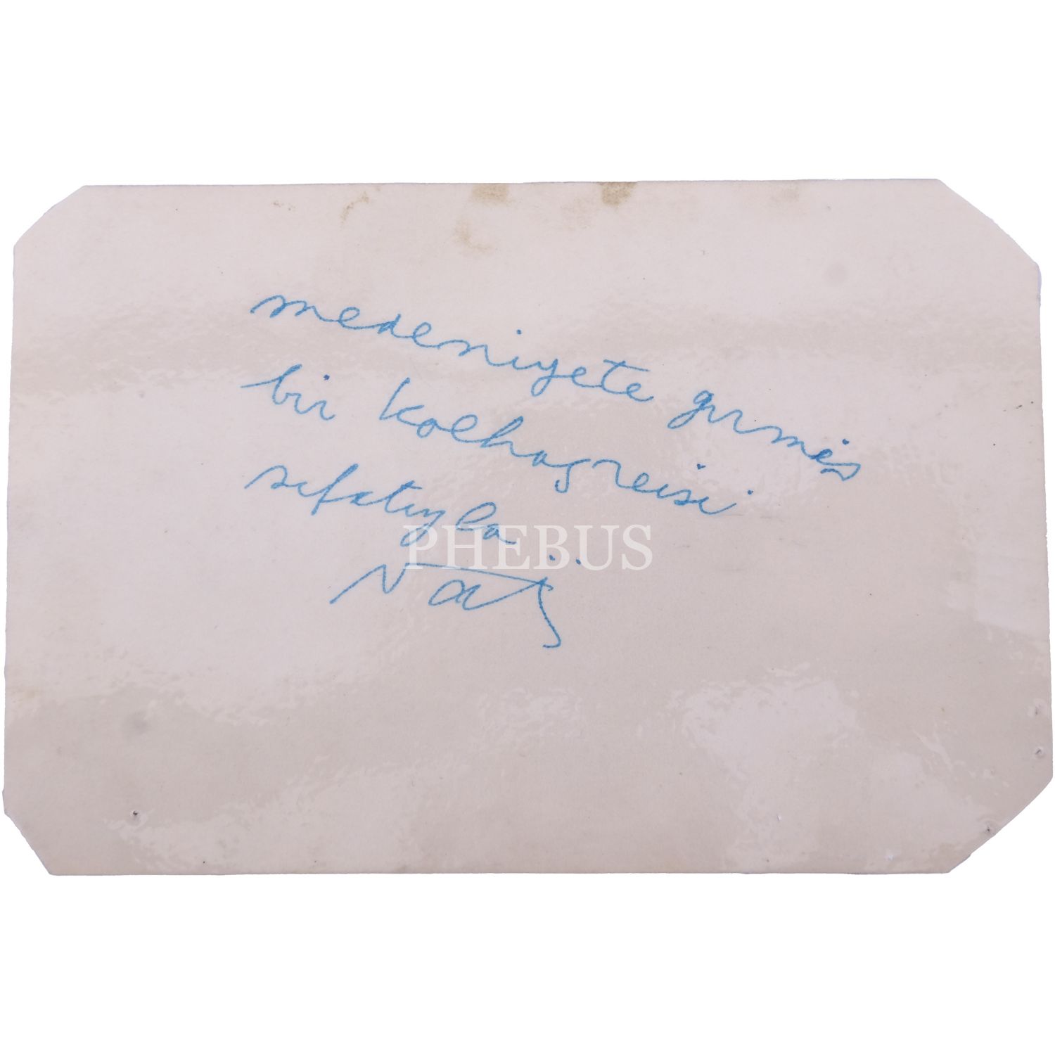 Nazım Hikmet´in, "Medeniyete girmiş bir kolhozreisi sıfatıyla." notunu düşerek imzaladığı bir portre fotoğrafı, 11,5x17 cm...