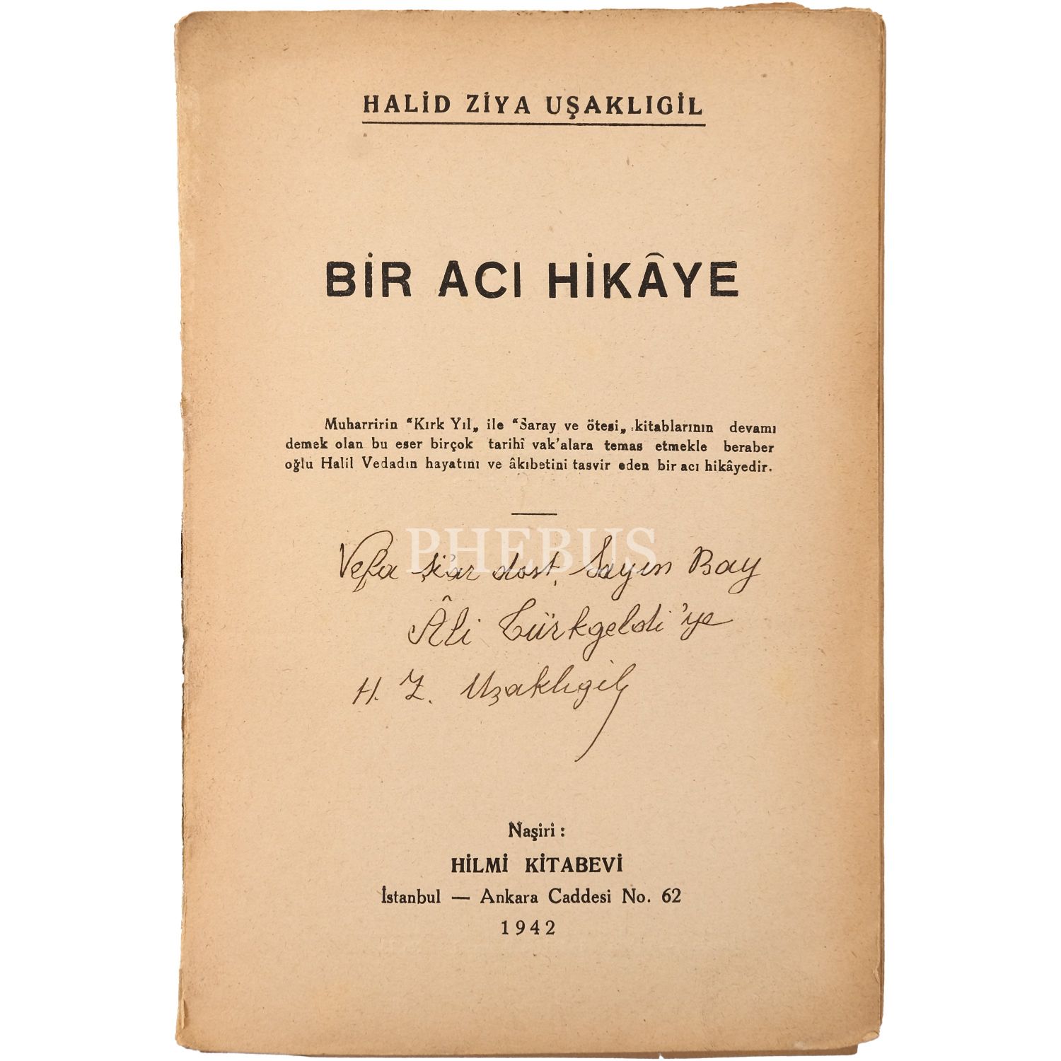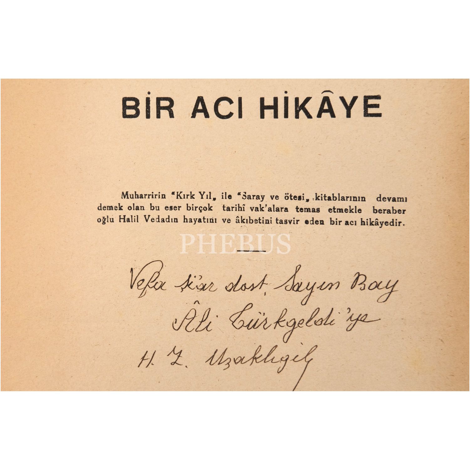 Halid Ziya´nın, oğlu Vedad´ın intiharı üzerine kaleme aldığı, Türk edebiyatının en acılı ve en hüzünlü eserlerinden biri... Halid Ziya tarafından, Başkâtip Vedad ile birlikte Tiran elçiliğine atanan hariciyeci Âli (Fuad) Türkgeldi´ye ithafen imzalanmıştır: "Vefakâr dost, Sayın Bay Âli Türkgeldi´ye. H. Z. Uşaklıgil."