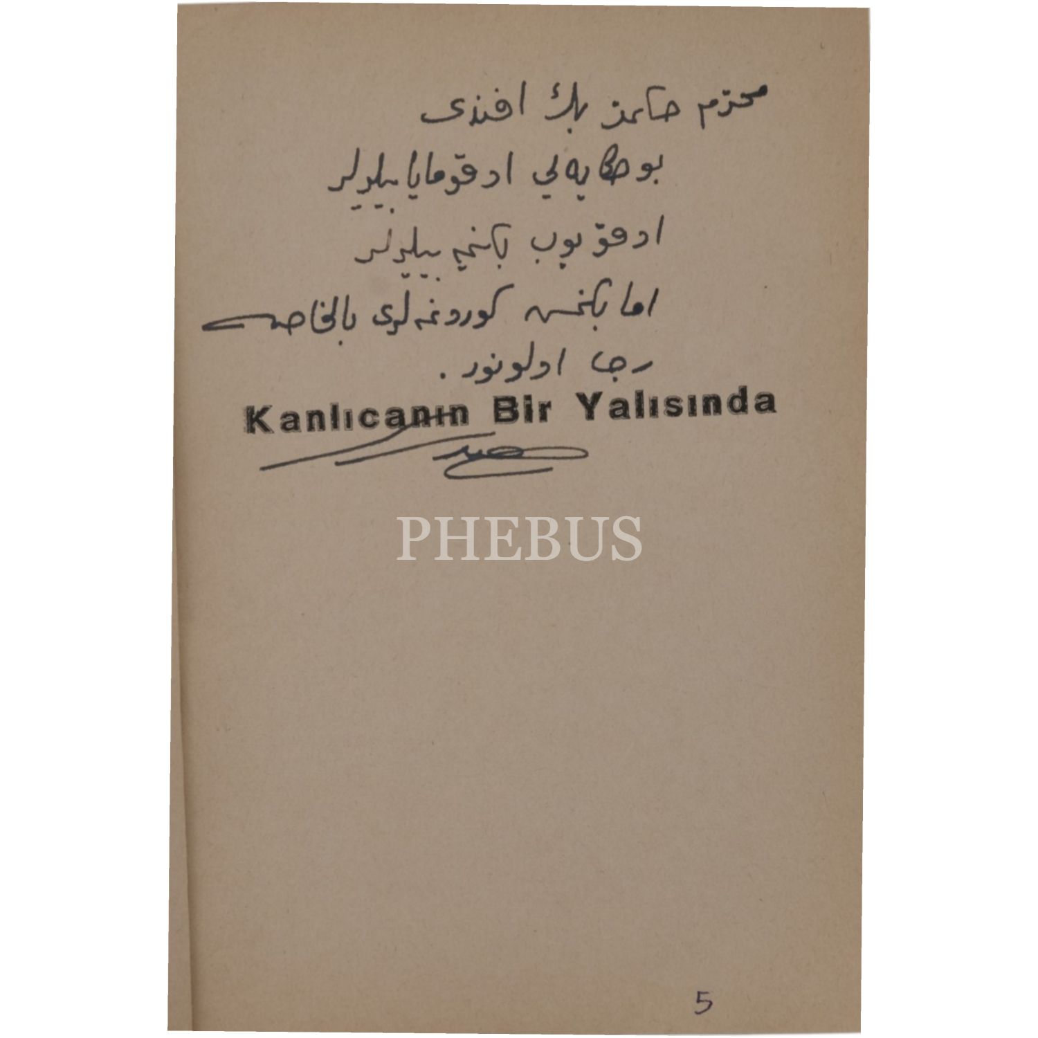 "Muhterem Hikmet Beyefendi, bu hikayeyi okumayabilirler, okuyup beğenmeyebilirler ama beğenmiş görünmeleri bilhassa rica olunur." ithafıyla imzalanmıştır.