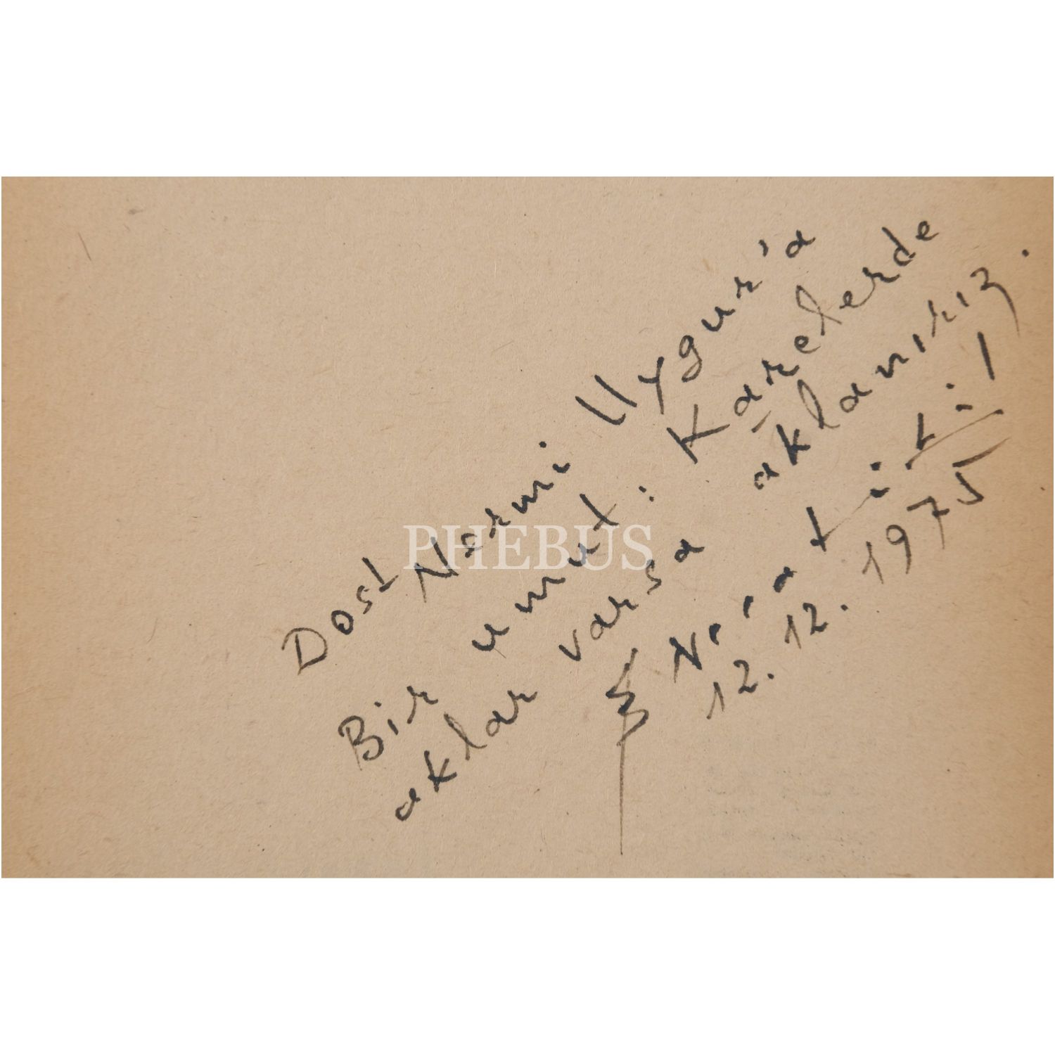 "Dost Nermi Uygur'a bir umut: Karelerde aklar varsa aklanırız." ithafıyla, 12 Aralık 1975 tarihinde imzalanmıştır.