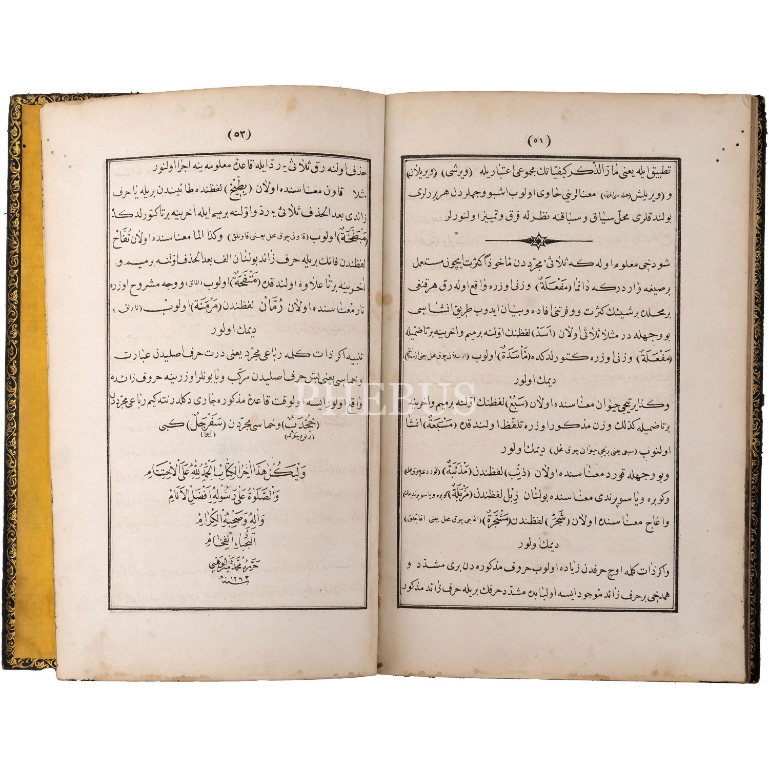 *Cildinin sırtında ve kenarlarındaki açılmalar için fotoğrafları inceleyiniz. sayfaların üst köşesindeki küçük yenik izi eser boyunca mevcuttur.
