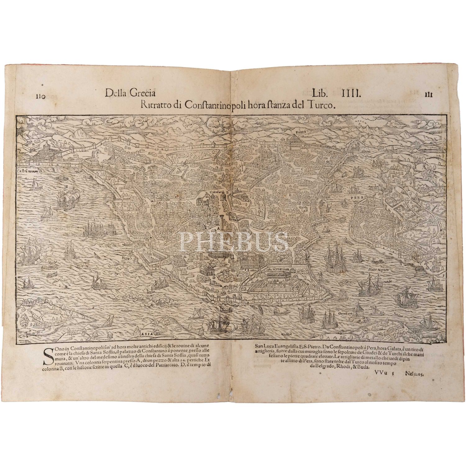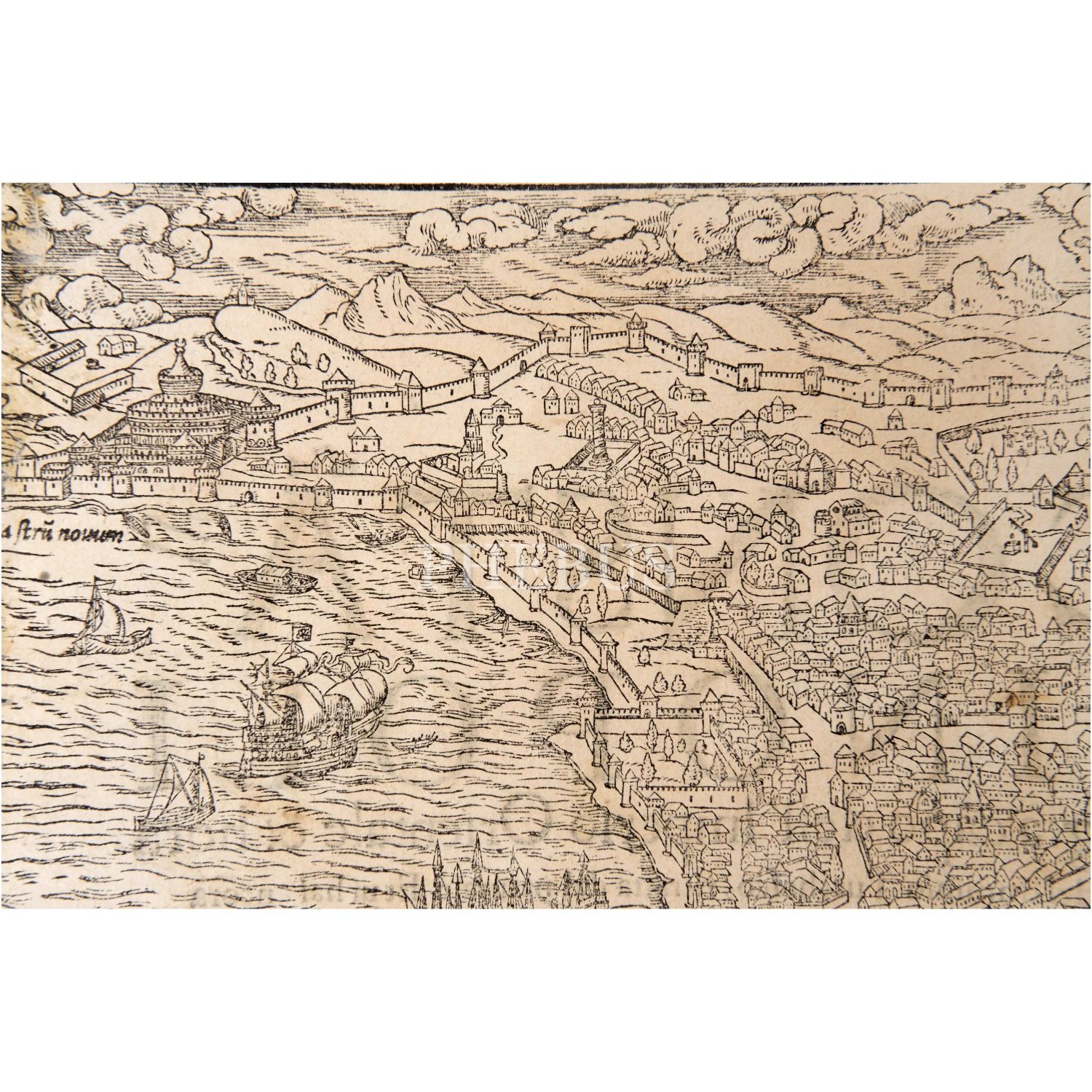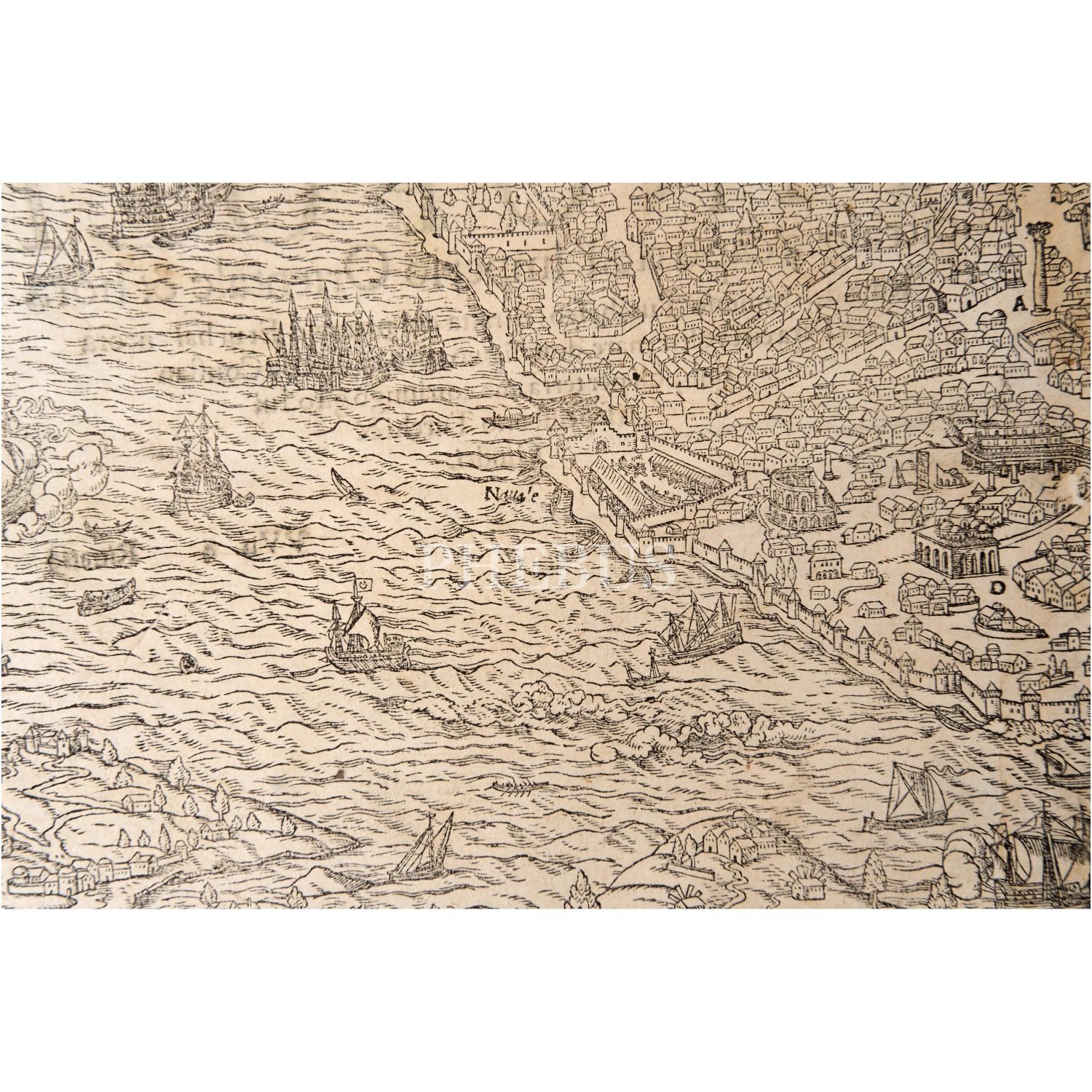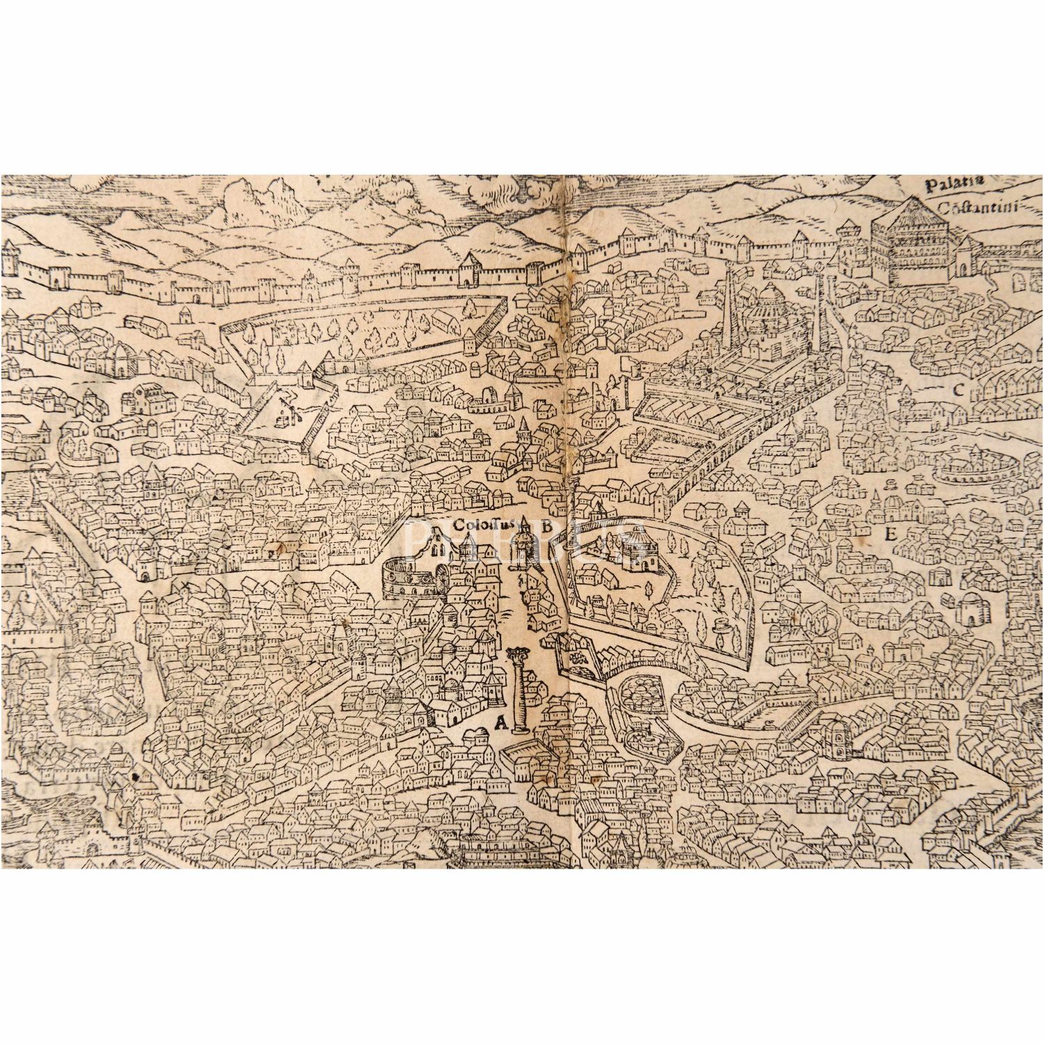 Sebastian Münster´in alanında bir efsane olan Cosmographia isimli eserinden, İstanbul´un kuşbakışı harita/panorama tasviri, 41x30 cm...