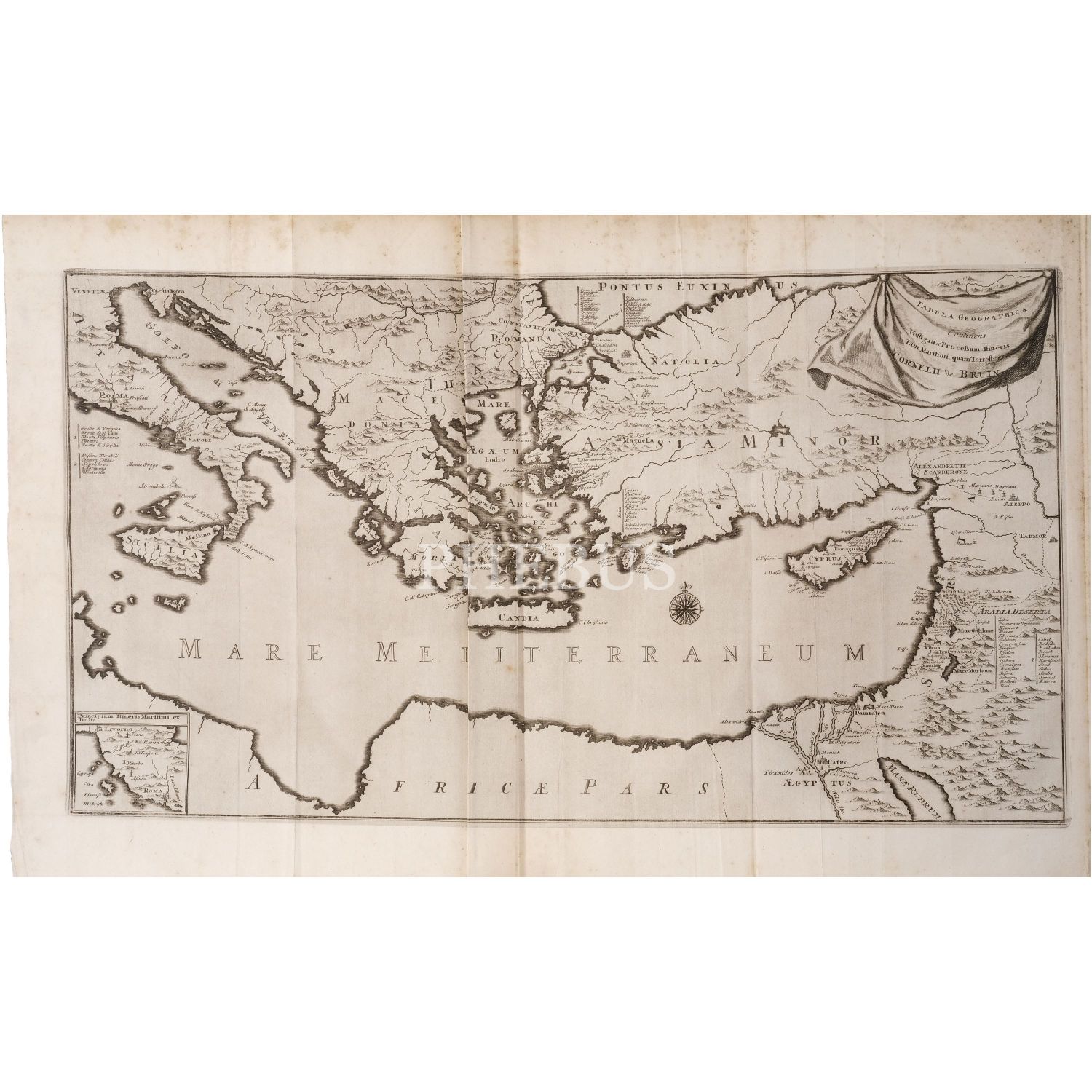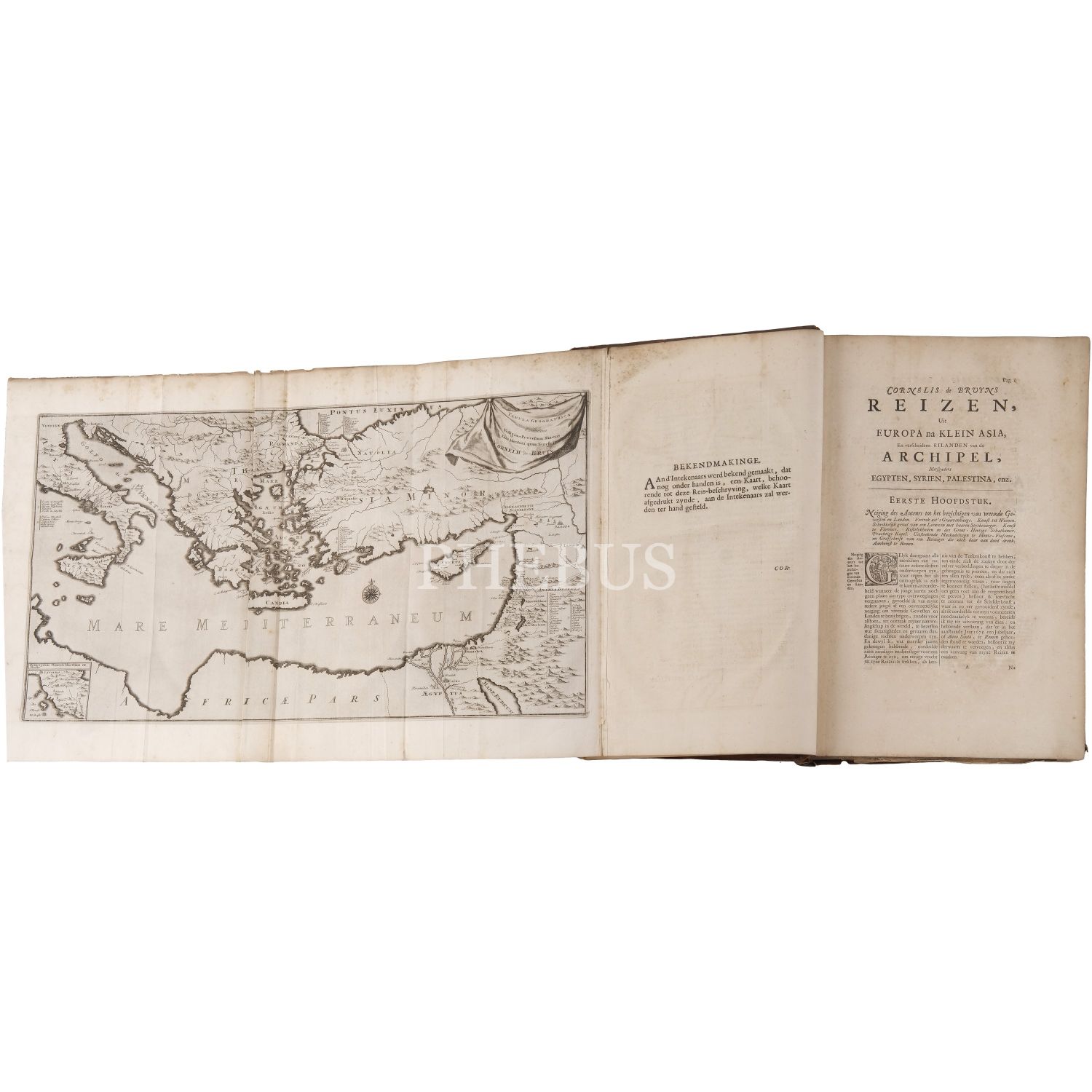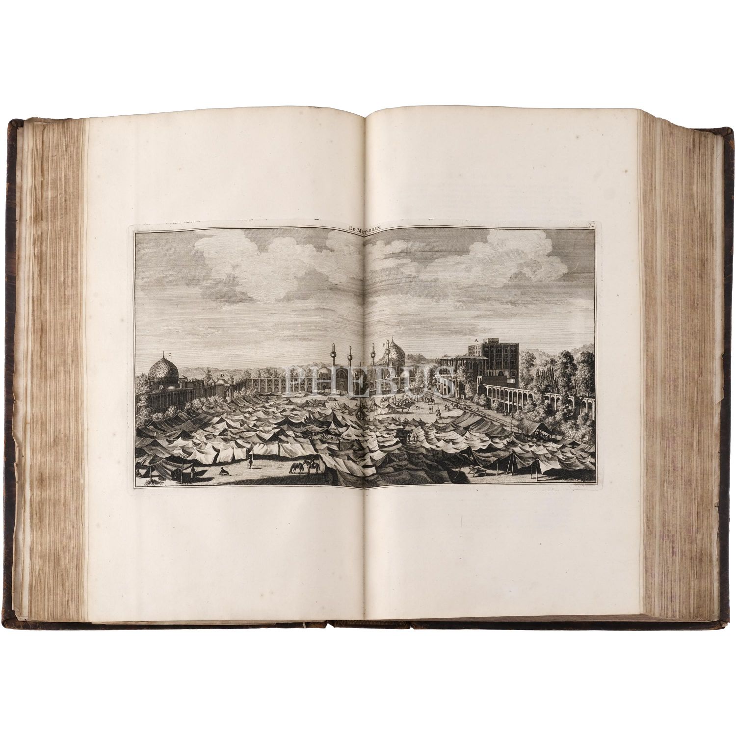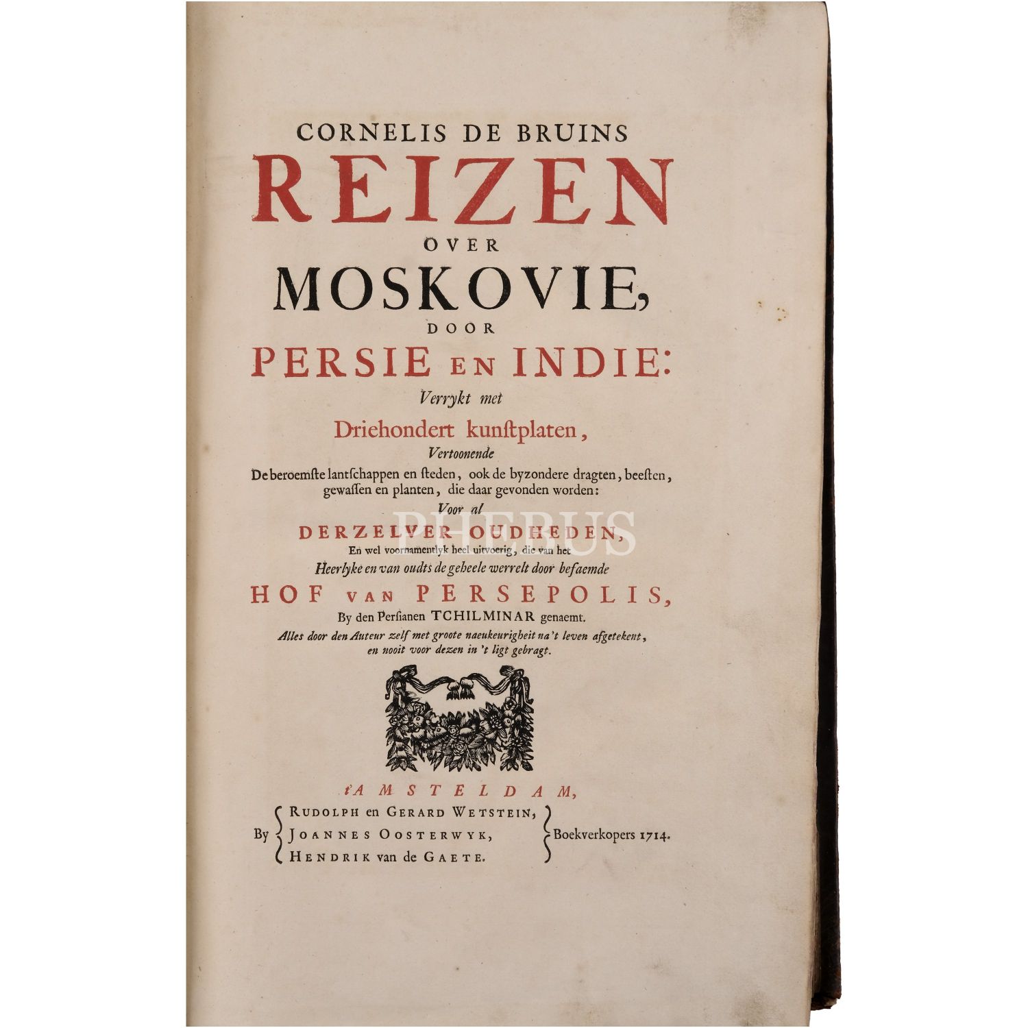 REIZEN Van Cornelis de Bruyn, Door de vermaardste Deelen van KLEIN ASIA de Eylanden Scio, Rhodus, Cyprus, Metelino, Stanchio, &c..., + over MOSKOVIE, door PERSIE en INDIE..., Cornelis de Bruyn, 1. kitap; 1698, Delft, Henrik van Krooneveld, 398 sayfa, 27x41 cm, 2. kitap; 1714, Amsterdam, 472 sayfa, 27x41 cm...