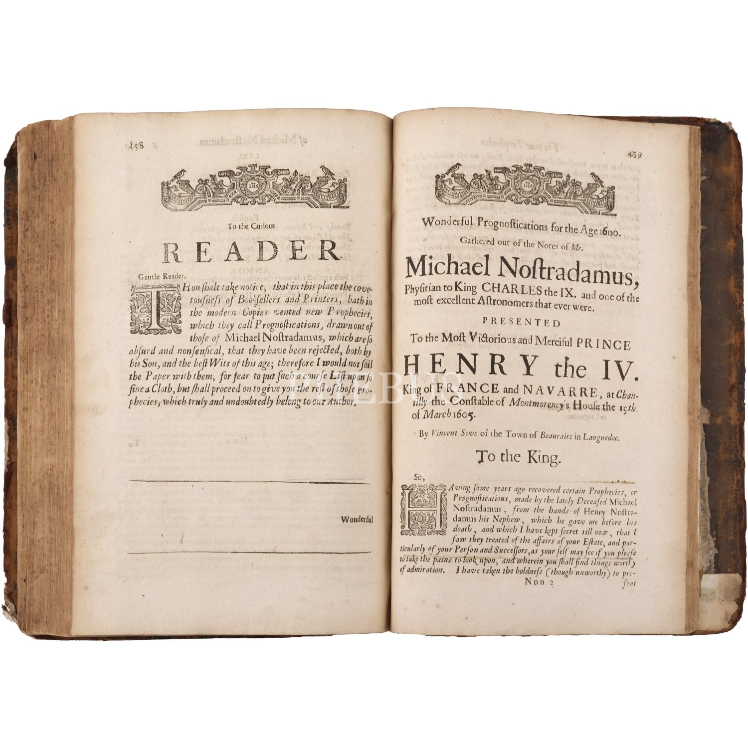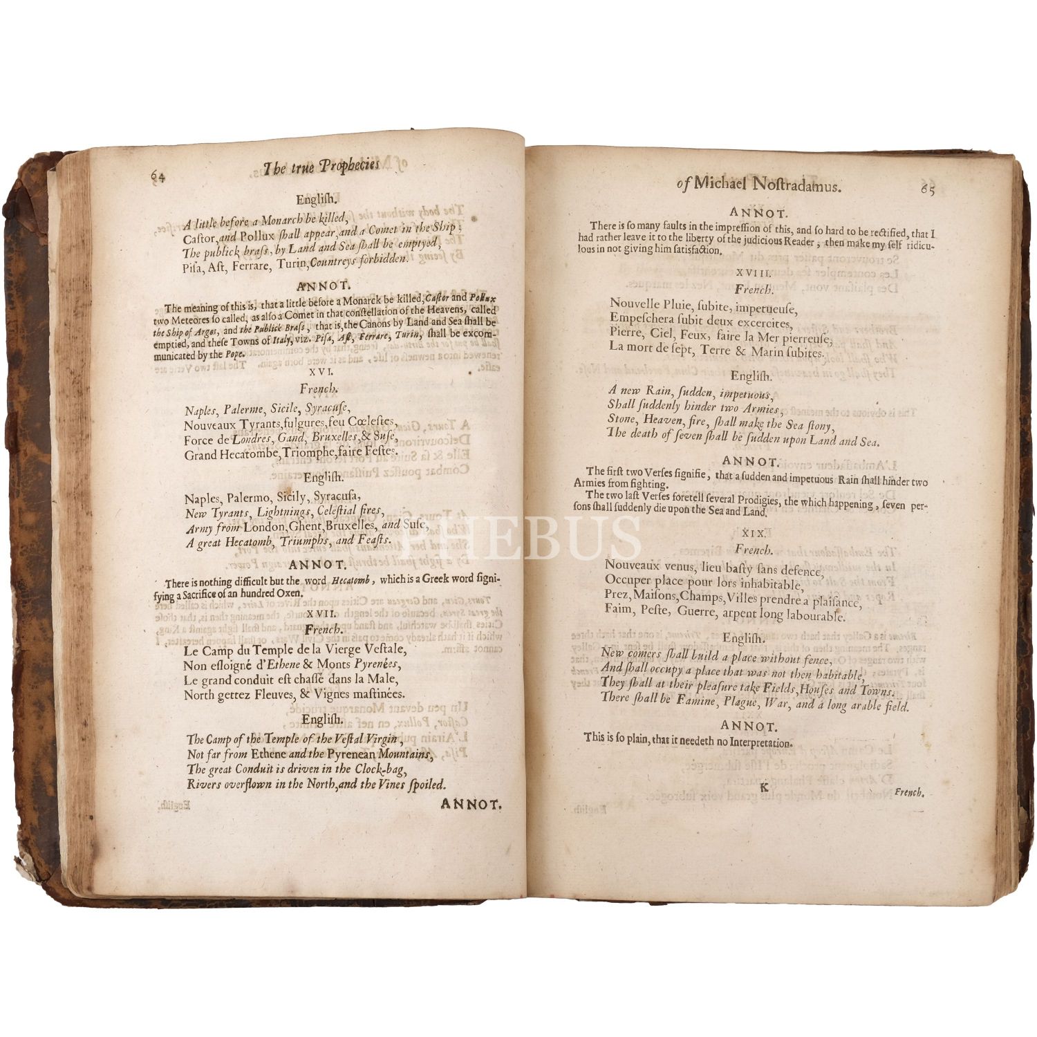 THE TRUE PROPHECIES OF MICHAEL NOSTRADAMUS, Physician to Henry II., Francis II. and Charles IX. Kings of France, and one of the best Astronomers that ever were. A Work full of Curiosity and Learning., (translated and commented by Theophilus de Garencieres), 1672, Printed by Thomas Ratcliffe and Nathaniel Thompson, 522 sayfa, 20,5x30,5 cm...