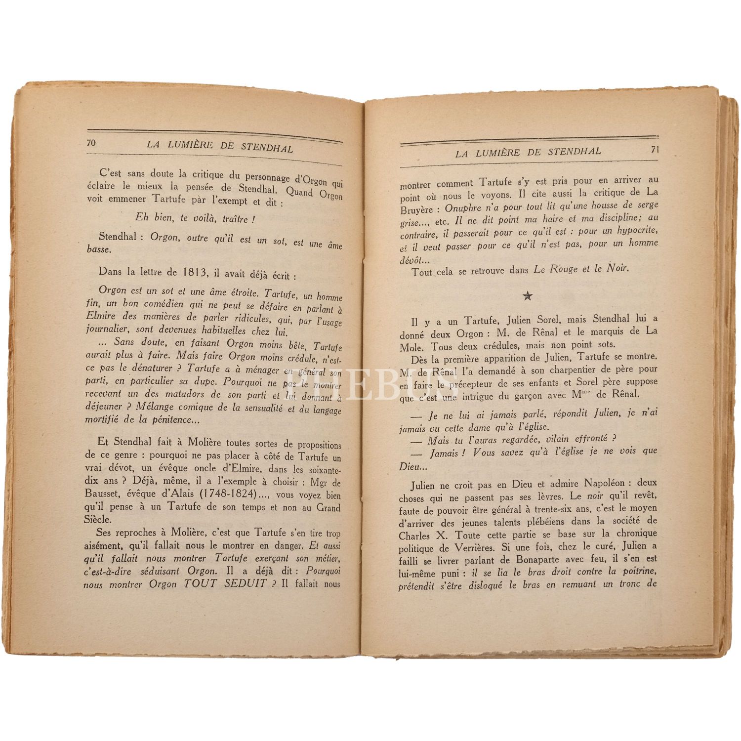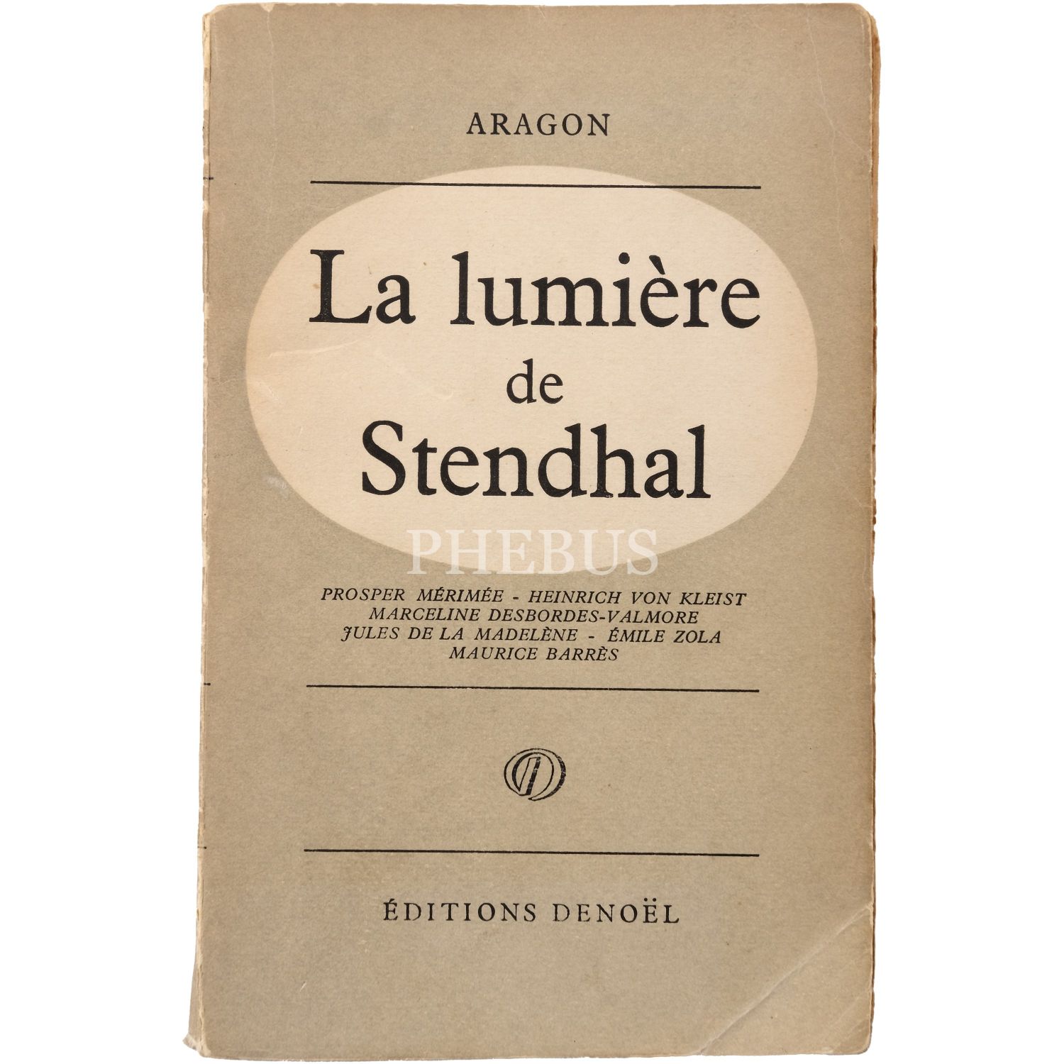 LA LUMIERE DE STENDHAL, Aragon, 1954, Editions Denoel, Paris, 269 sayfa, 12x19 cm...