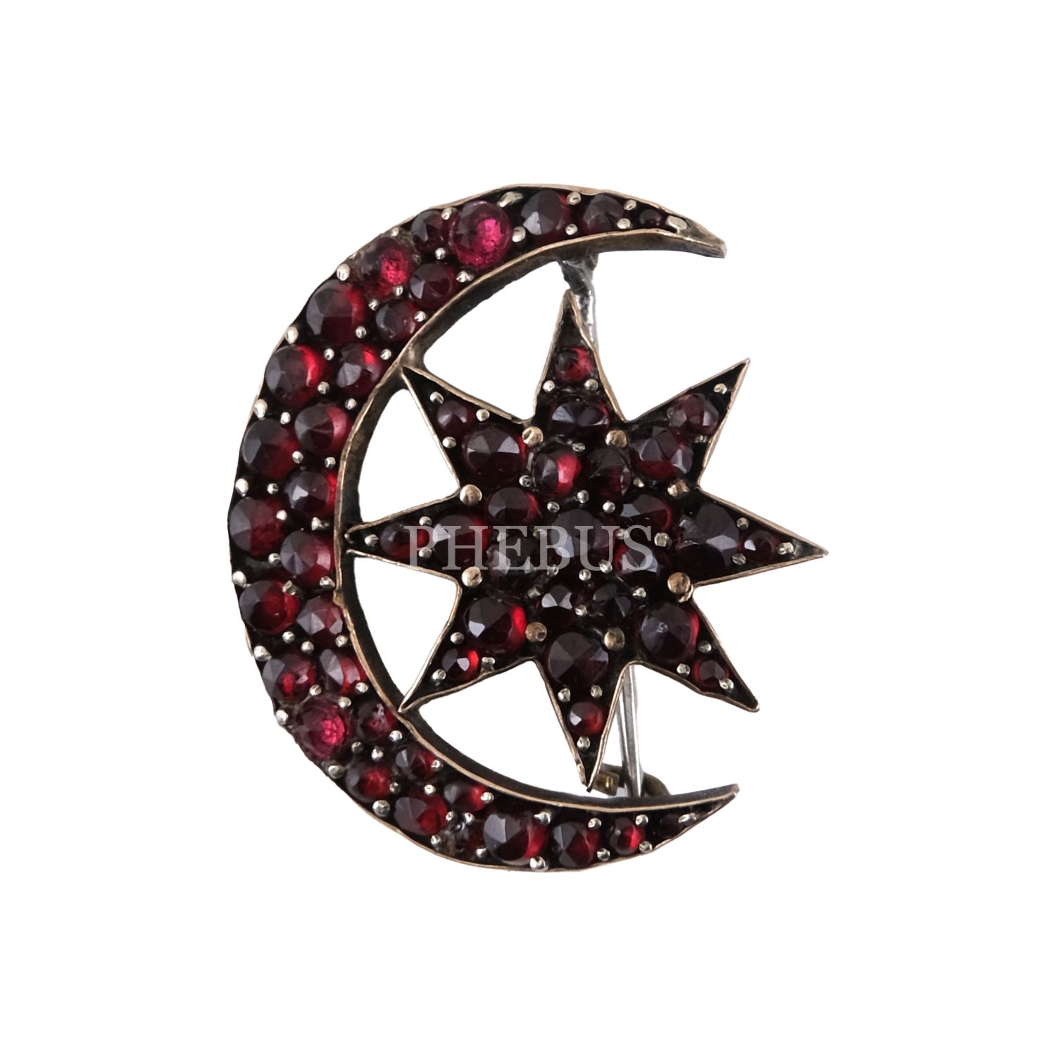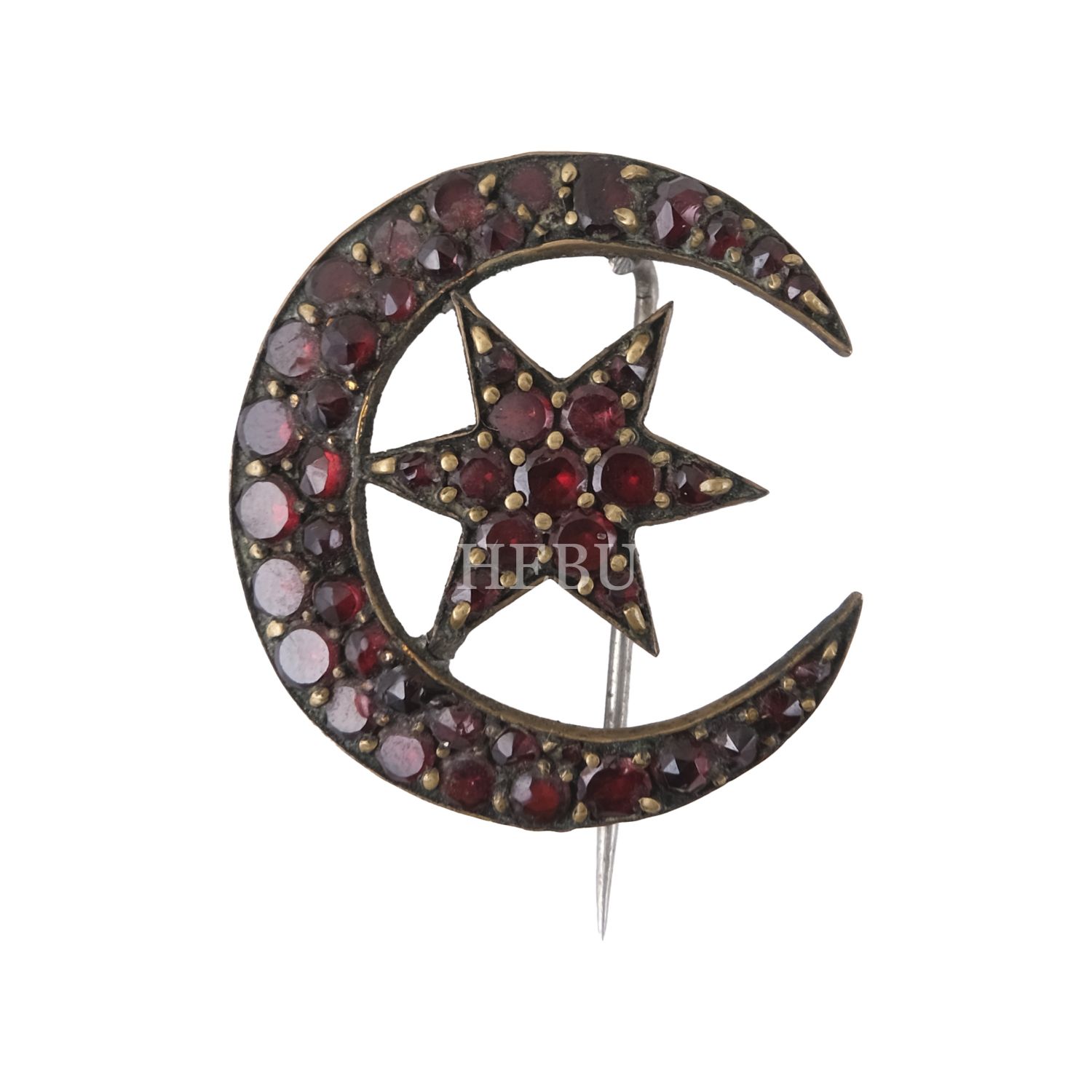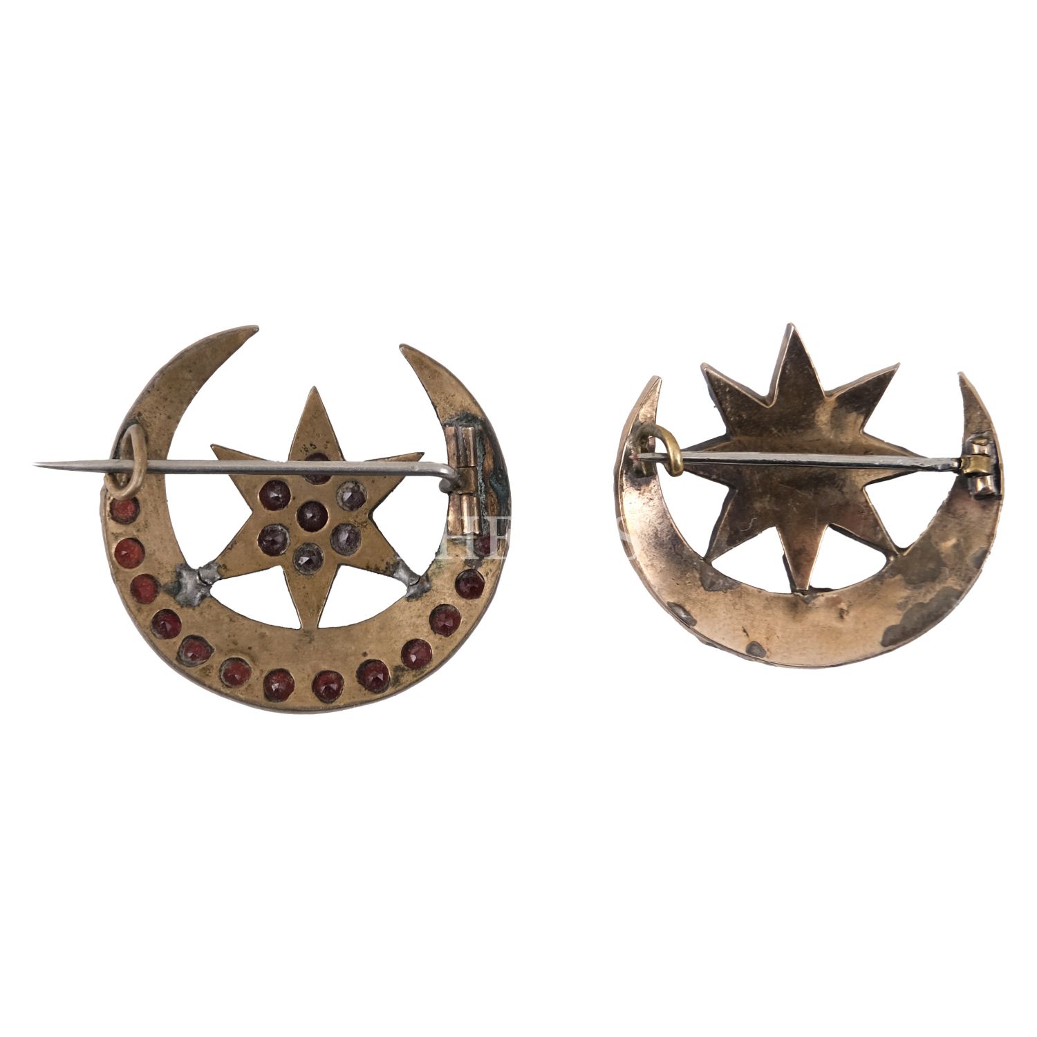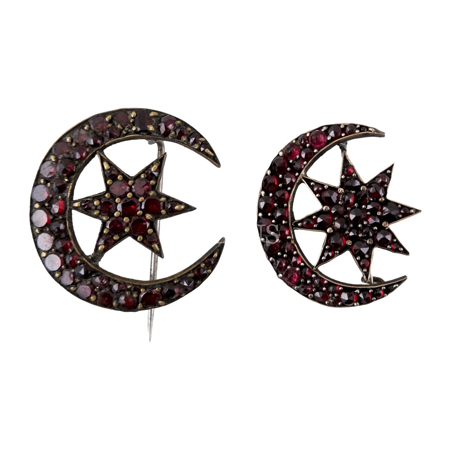 Ay-yıldız formunda, yarı değerli taşlarla bezeli bir çift broş, 2,5x3 cm...