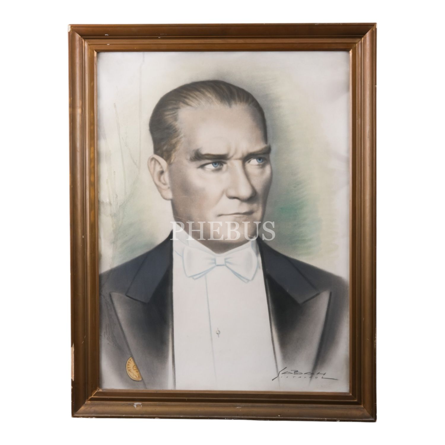 1930´lu yılların ikinci yarısından, elle renklendirilmiş, Gazi Mustafa Kemal Atatürk portresi, "Foto Sabah - İstanbul" ıslak imzalı, 97x67 cm..