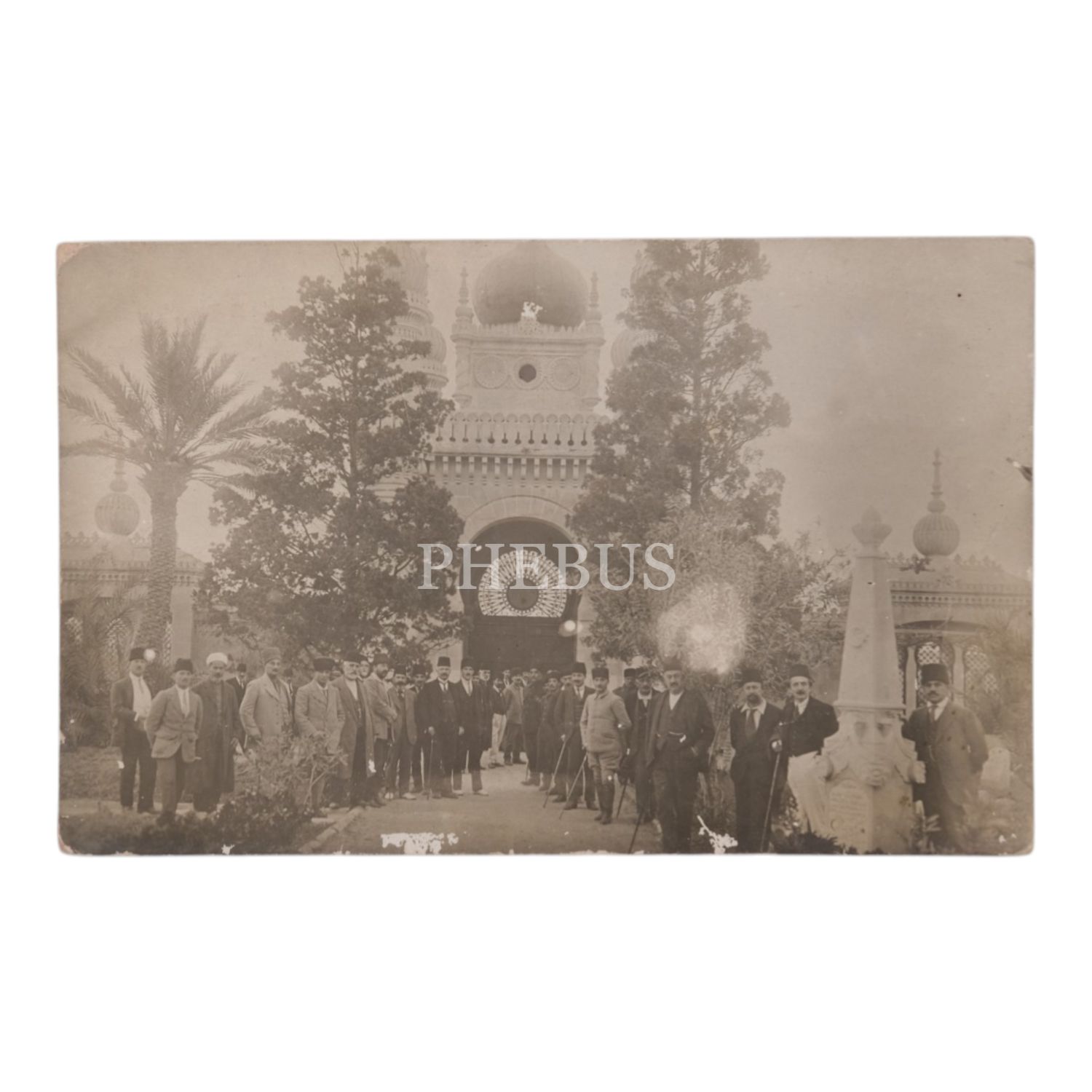 Ali İhsan Sabiş Paşa´nın da aralarında bulunduğu bir grup Osmanlı subayı ve ahalinin hatıra fotoğrafı, 14x9 cm...
