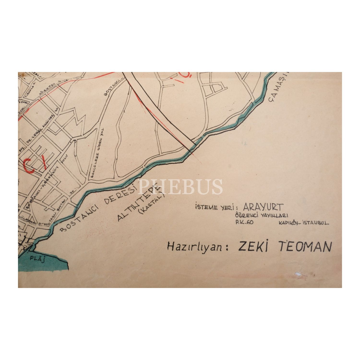 Kadıköy İlçesi Plânı (Ölçek: 1/10000), hazırlayan: Zeki Teoman, isteme yeri: Arayurt Öğrenci Yayınları, 99x68 cm...