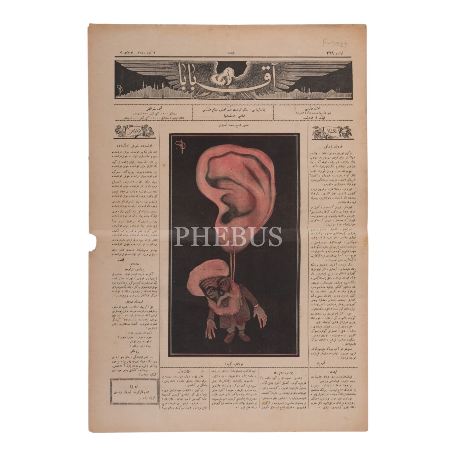 Bir kulağa küpe olarak asılmış bir şekilde Şeyh Sait´in resmedildiği, "Asi Şeyh Sait Asıldı" başlığıyla yayımlanan 2 Temmuz 1341 tarihli AKBABA dergisi, 34x50 cm...