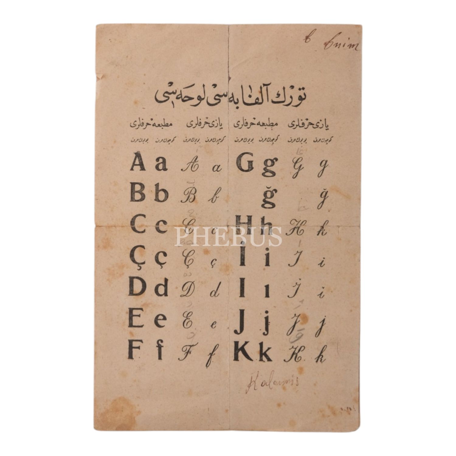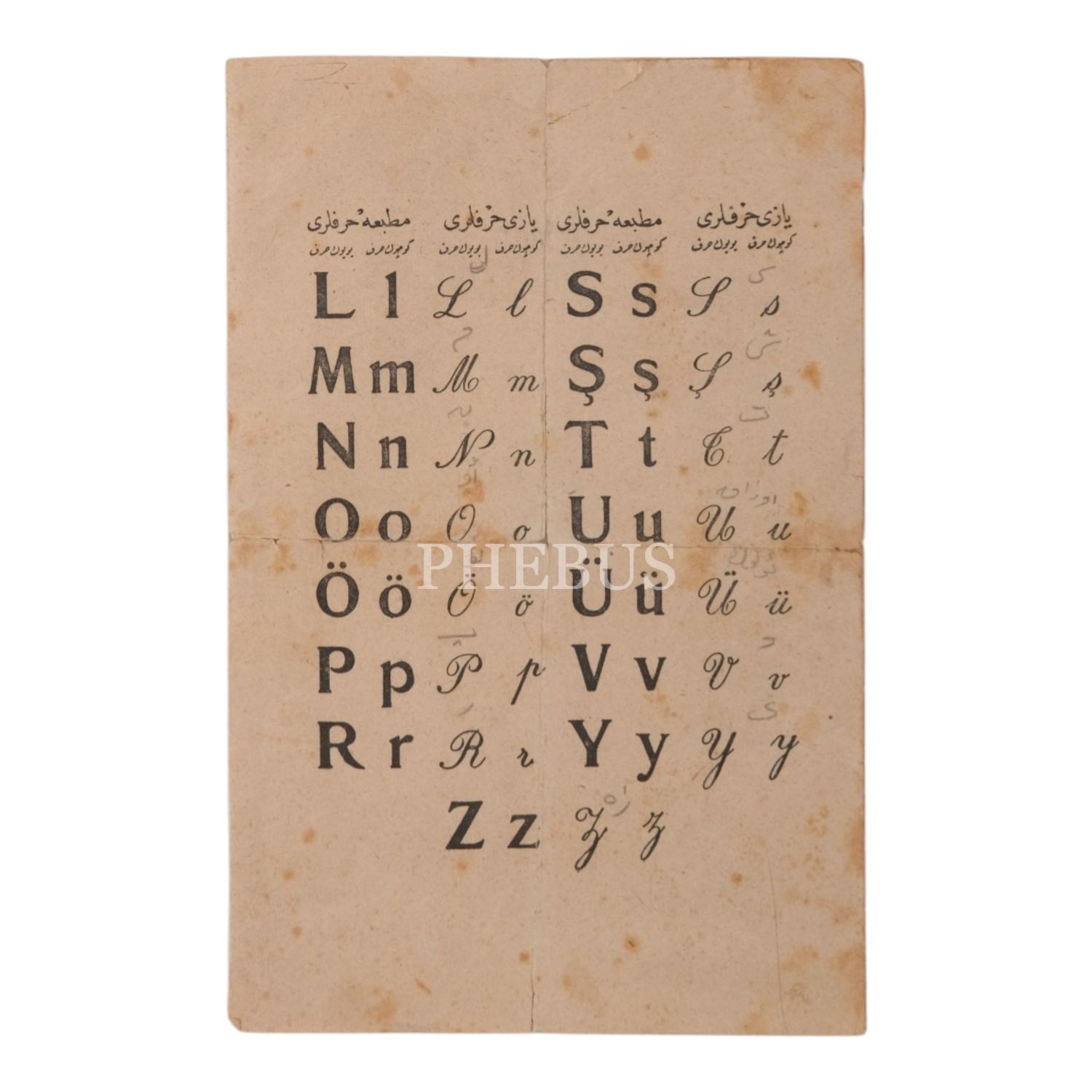 "Türk Alfabesi Levhası" başlığıyla, Yeni Harfler Kanunu´yla kabul edilen harfleri halka tanıtmak için hazırlanmış broşür, 30x23 cm...