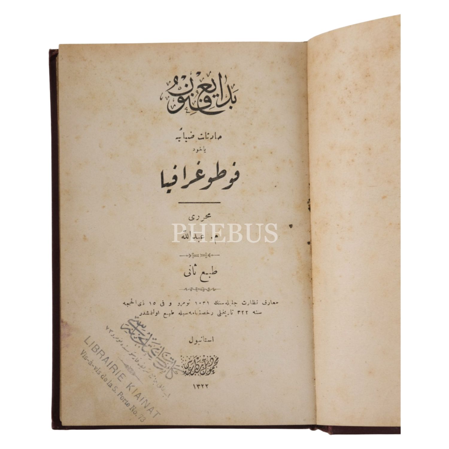 FOTOĞRAFYA, M. Abdullah, 1322, Mahmut Bey Matbaası, 116 sayfa, 12x17 cm...