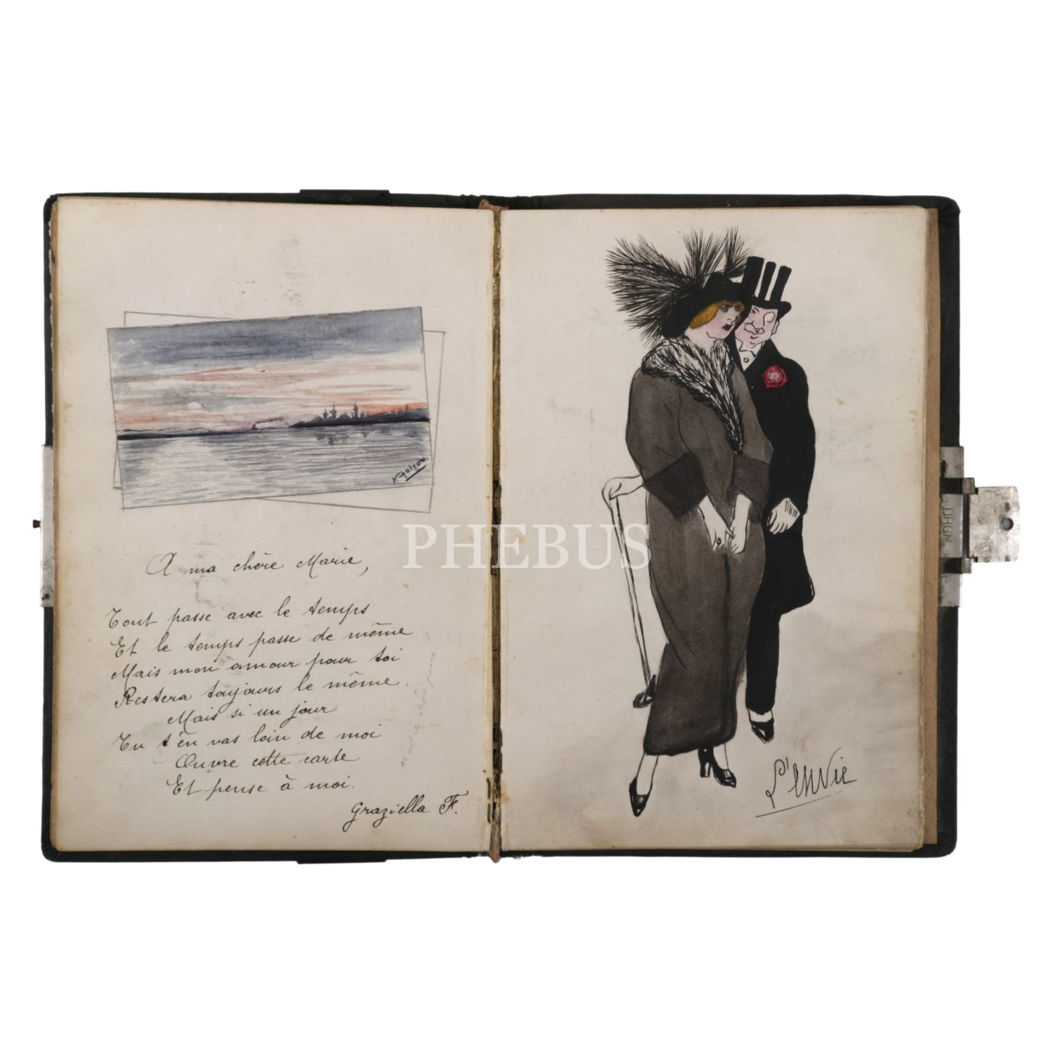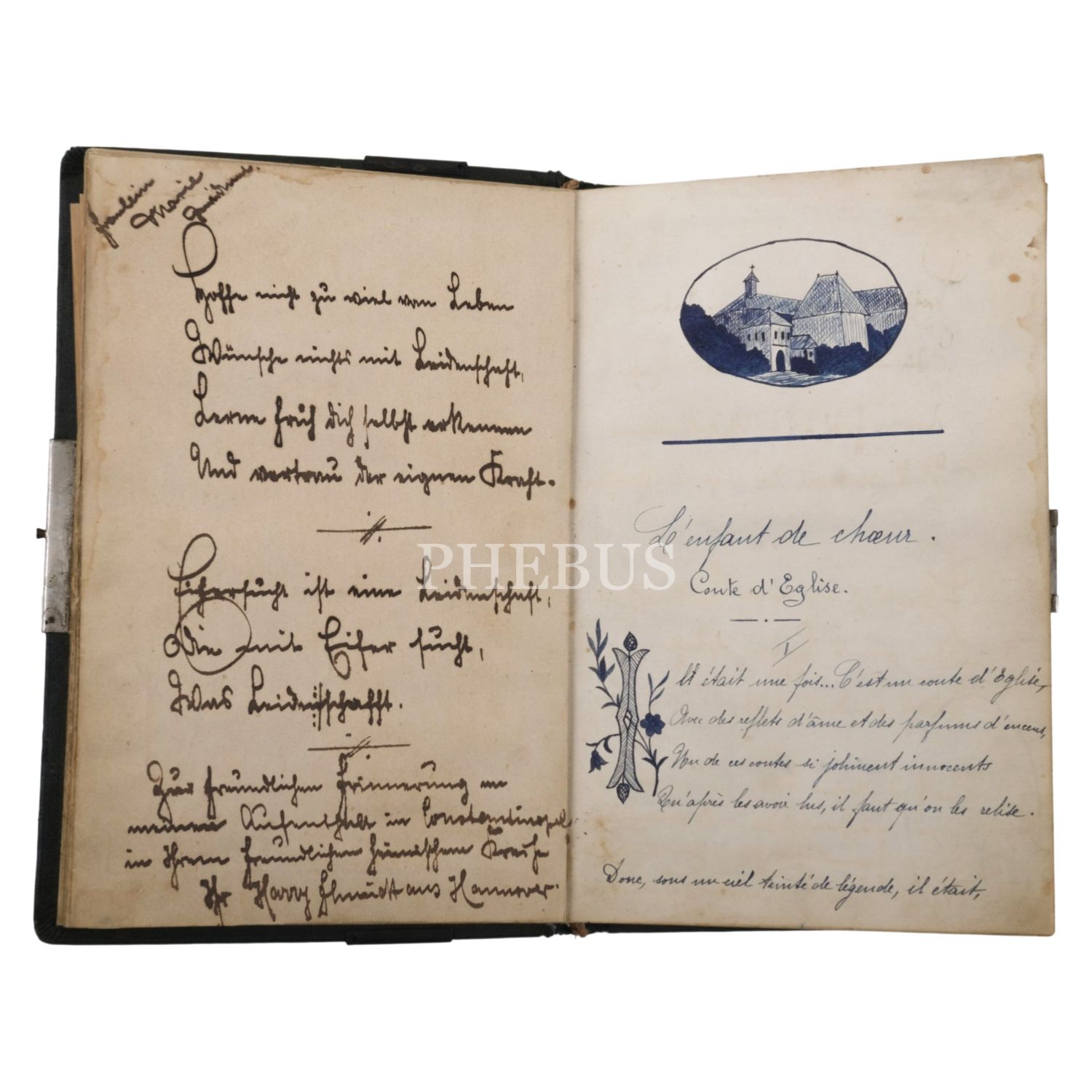 İstanbul´da yaşayan İtalyan asıllı bir Levantene ait, 1913 başlanarak 1915´e değin tutulmuş; özellikle "Reymonte" imzası ile farklı isimler tarafından yazılıp imzalanmış şiirler, alıntılar ve resimlerle doldurulmuş defter, kilit mekanizmalı, deri cildinde, sayfa kenarları altın yaldızlıdır, 13x19 cm...