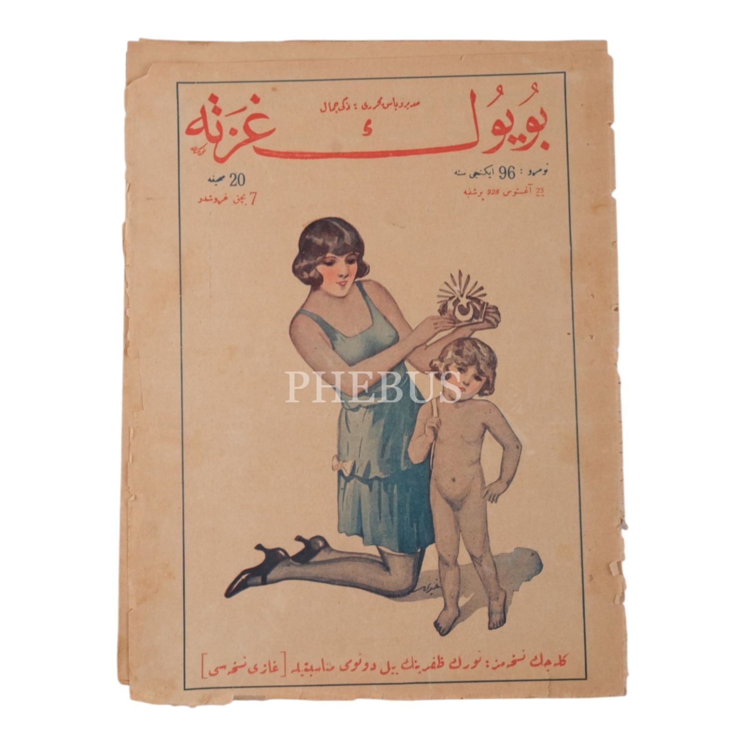 Ay yıldızlı bir taç giydirilen küçük bir kız çocuğunun resmedildiği kapağıyla BÜYÜK GAZETE´nin 23 Ağustos 1928 tarihli nüshası, 24x33 cm...