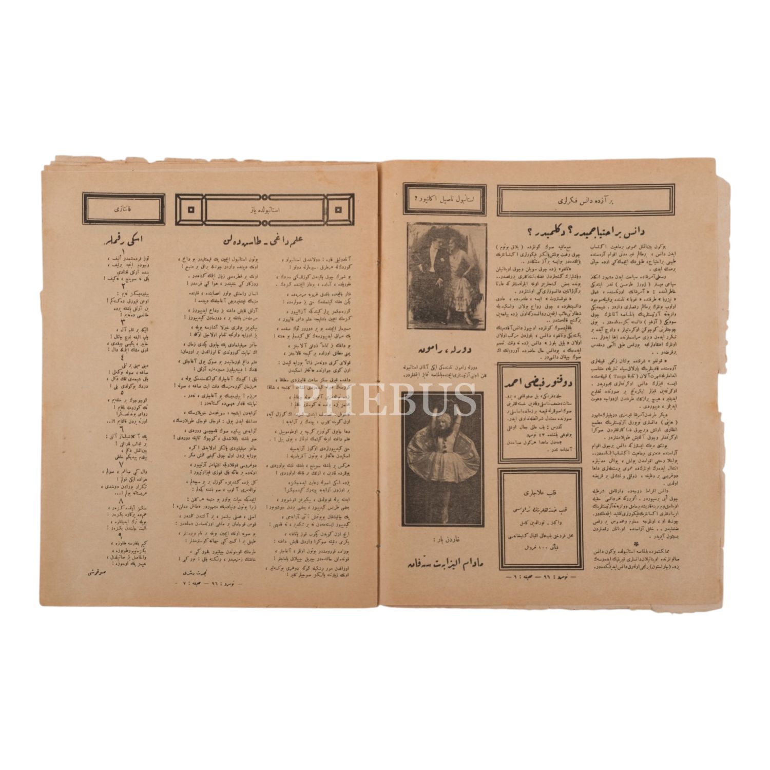 Dergi içinde, "Harb-i Umumi´de İngiltere´de casusluk yapan bir Türk gencinin hatıratı", "Dans bir ihtiyaç mıdır değil midr?", "Fotoğrafla devr-i alem" başlıklı yazılar yer almaktadır.